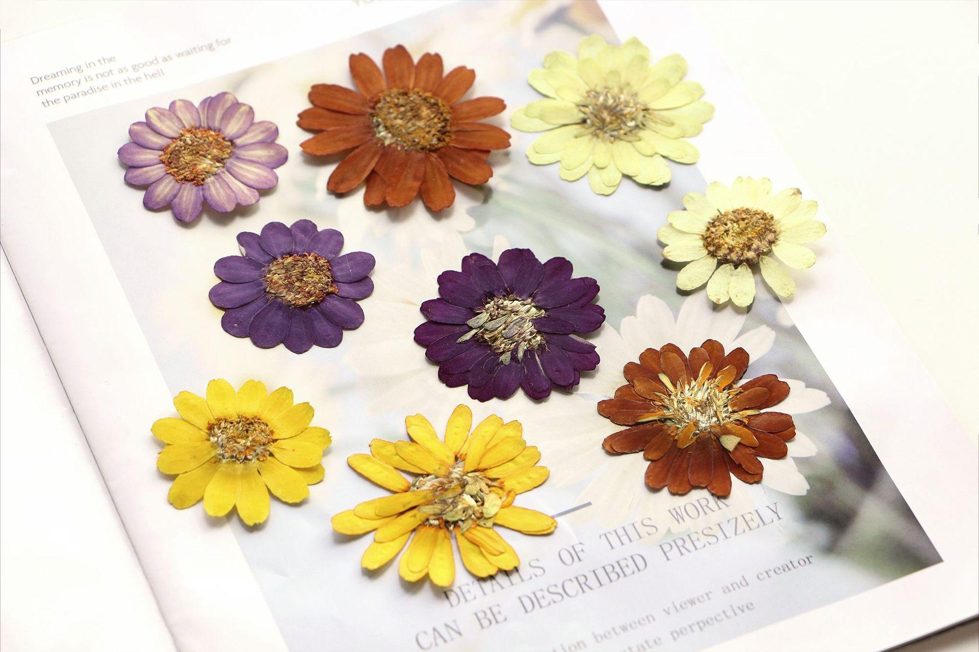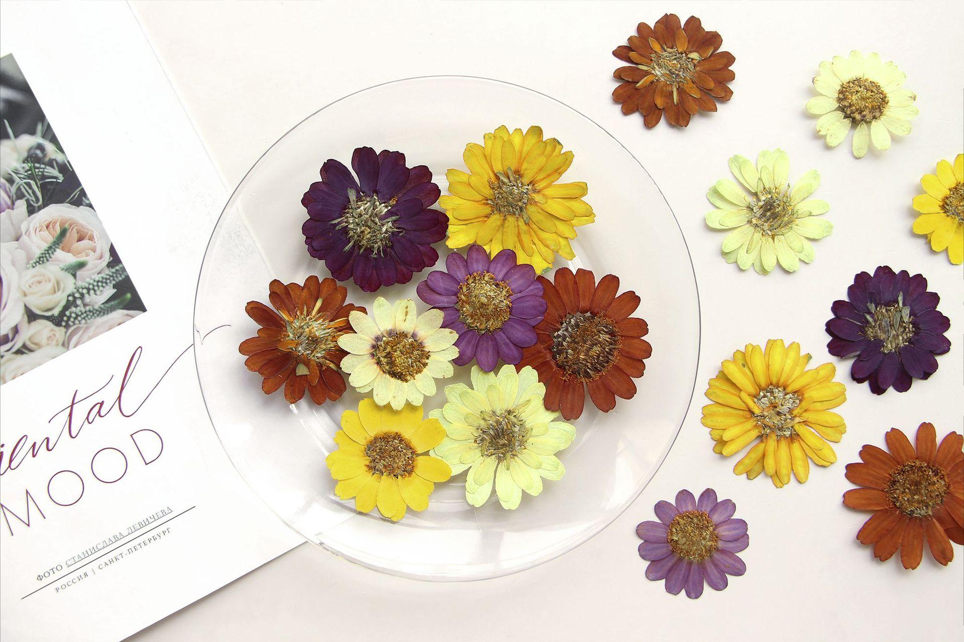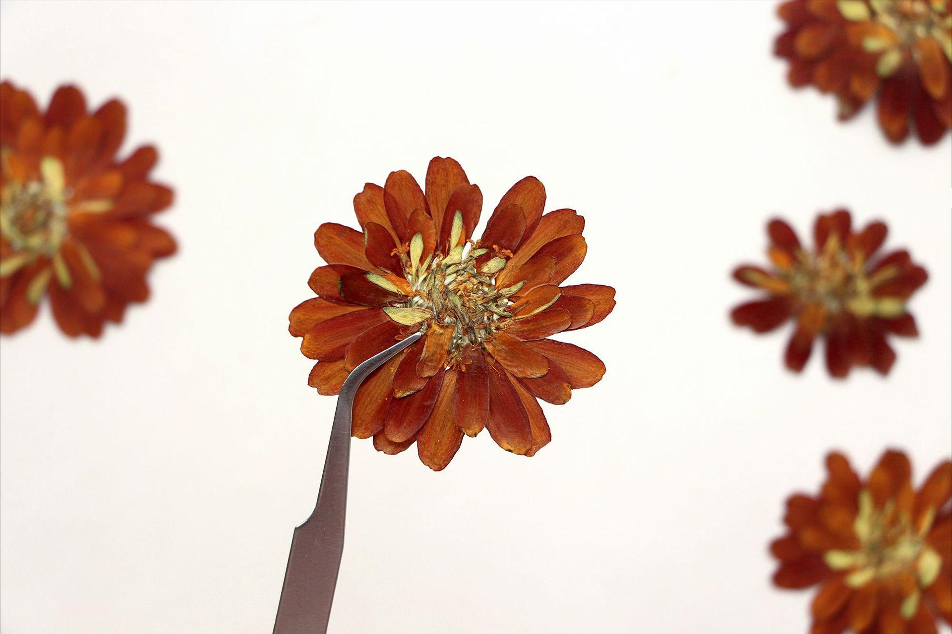 Información del producto: Flor de zinnia pétalo doble/pétalo simple flor seca flor prensada