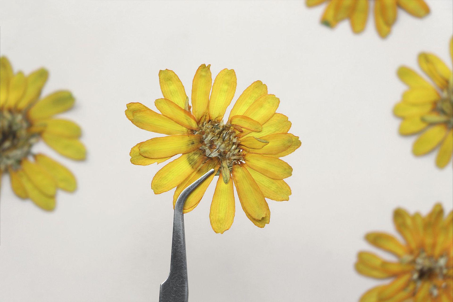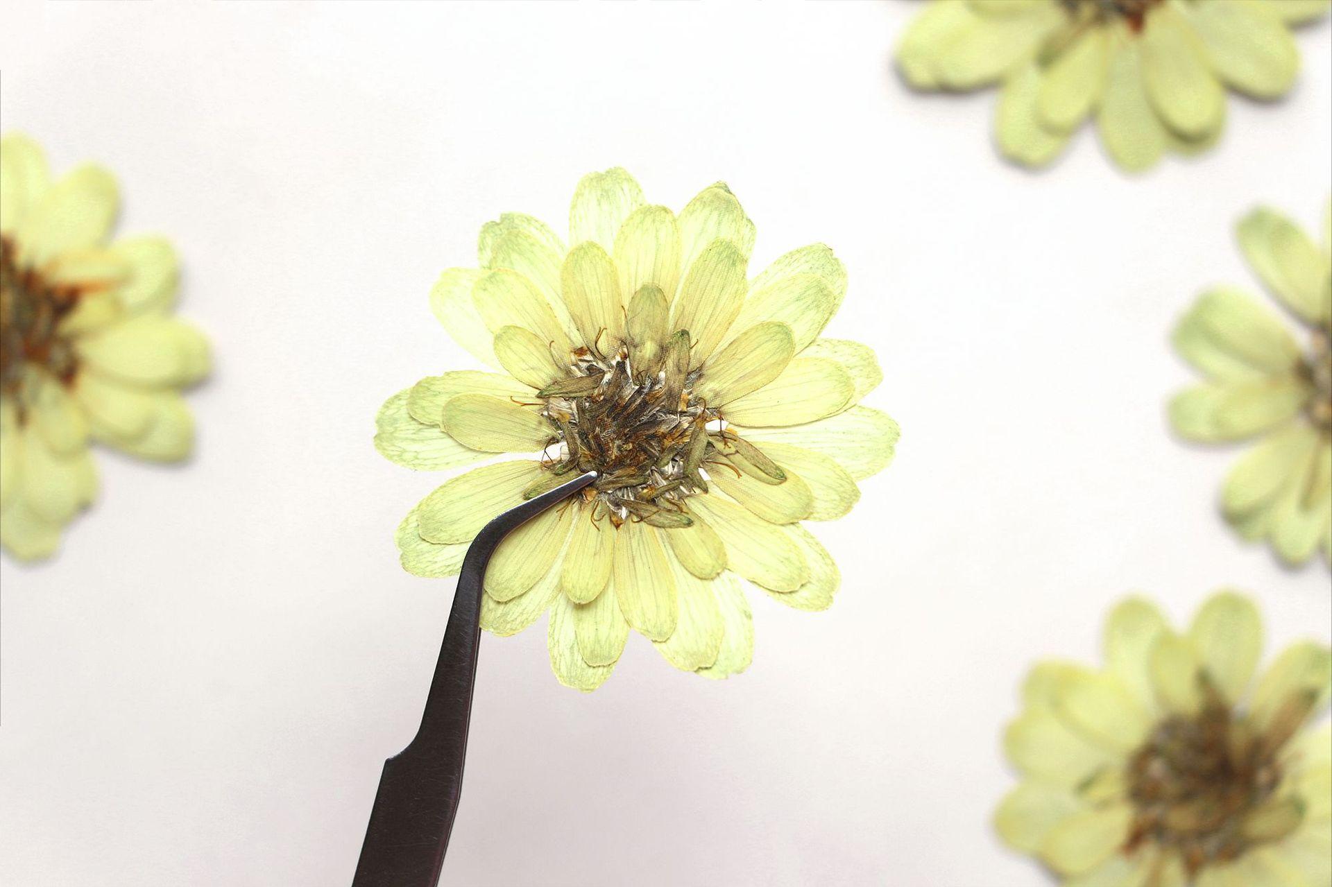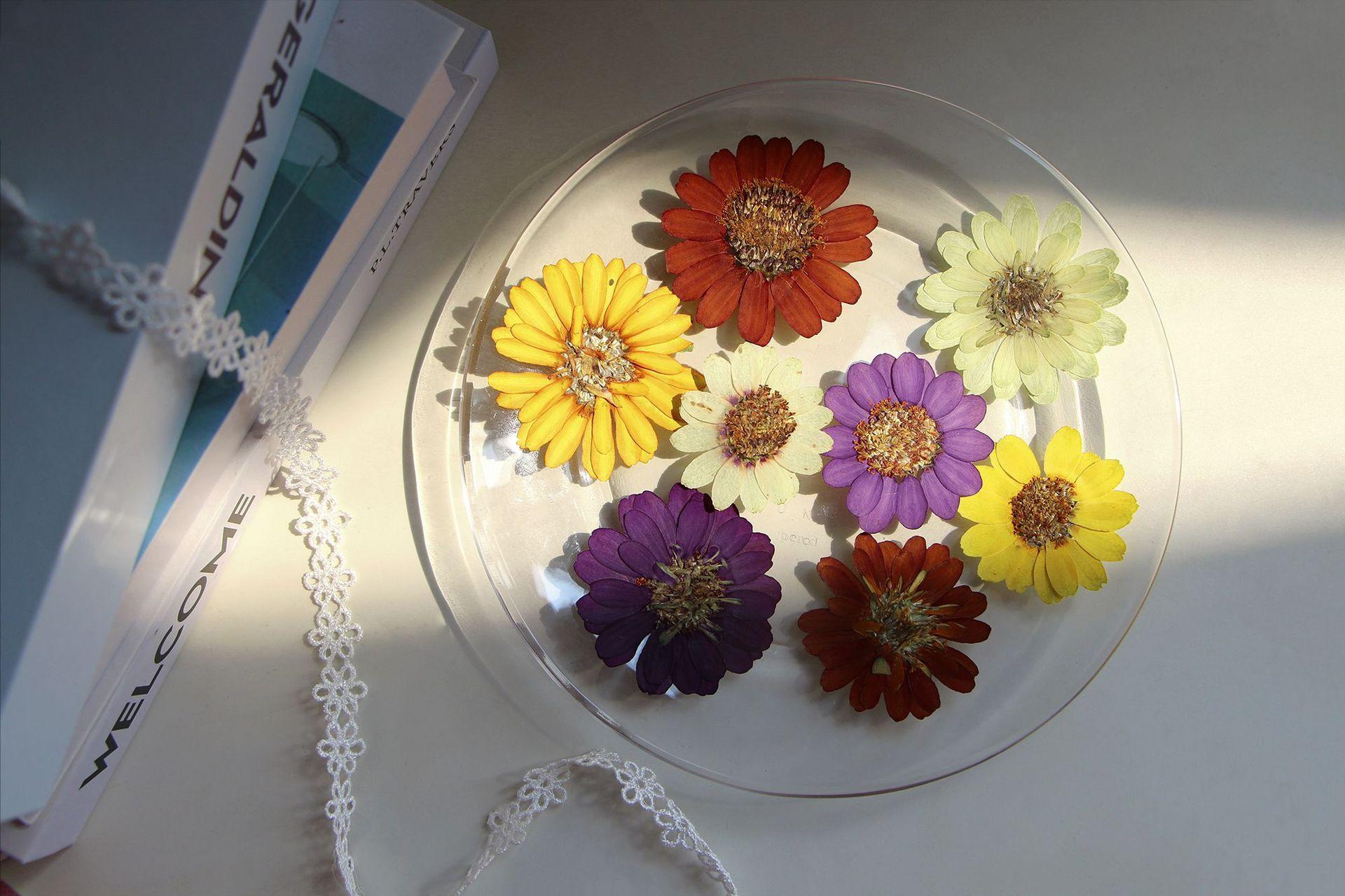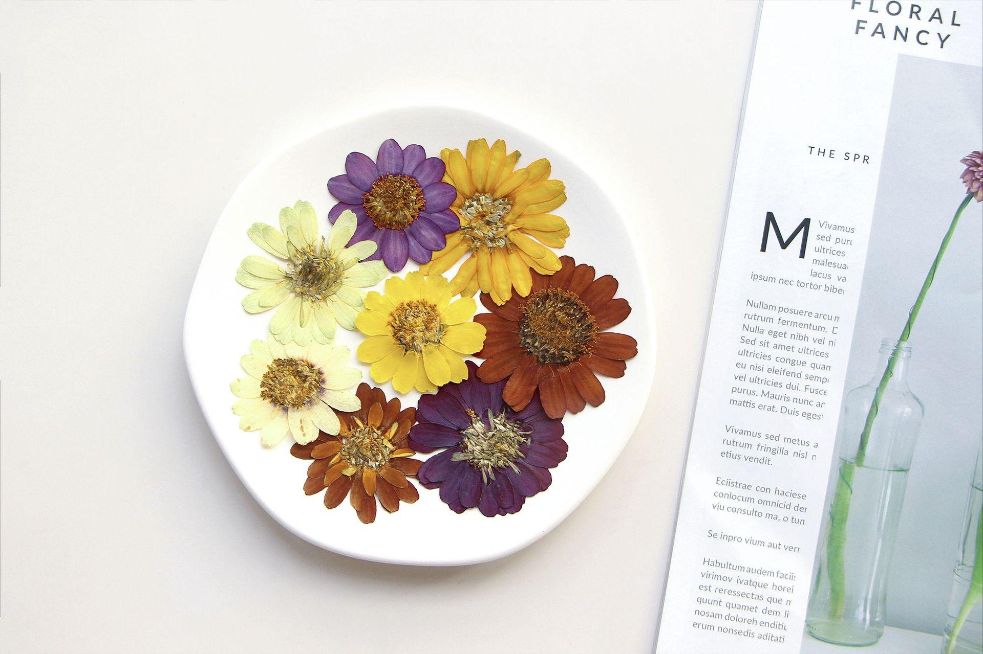 Información del producto: Flor de zinnia pétalo doble/pétalo simple flor seca flor prensada