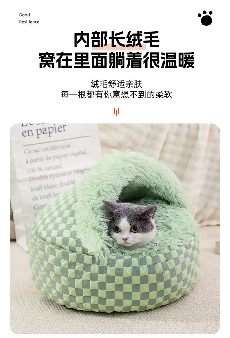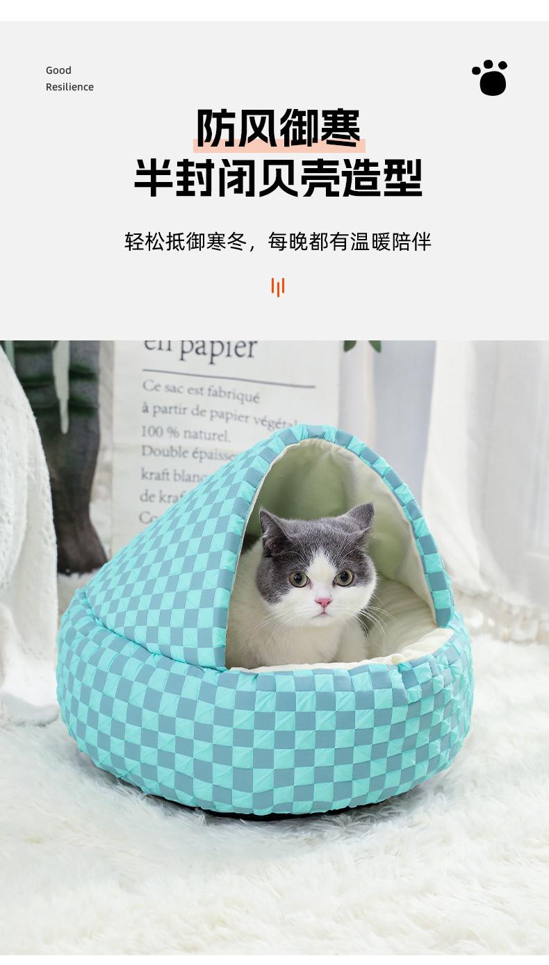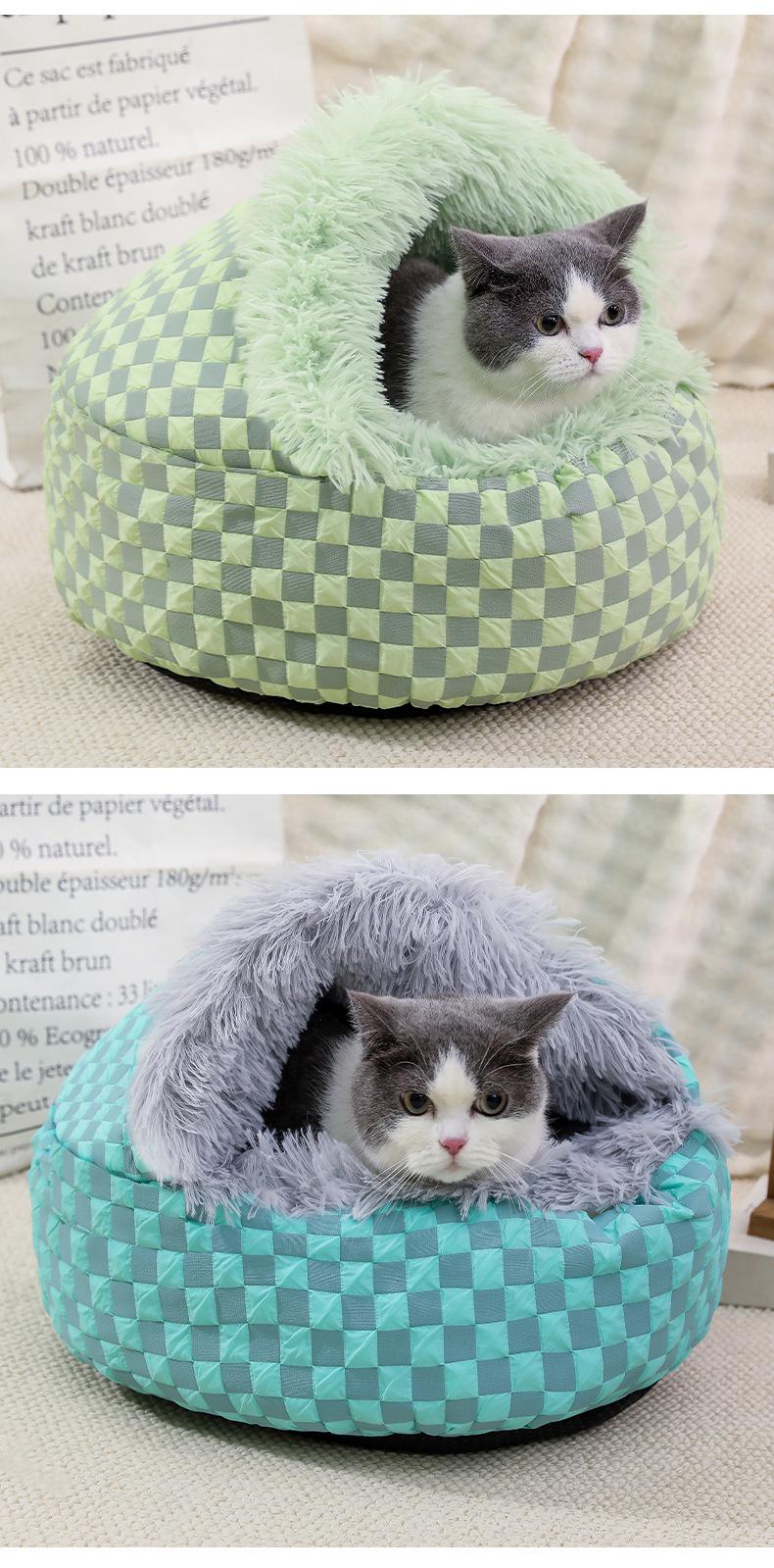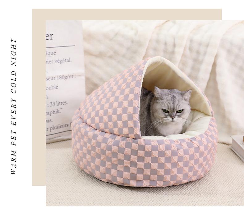 Nido de invierno cálido para mascotas, nido semicerrado para gatos, nido de felpa de algodón, nido para perros semicerrado y grueso, cama para perros