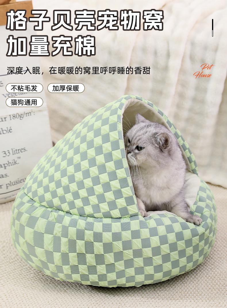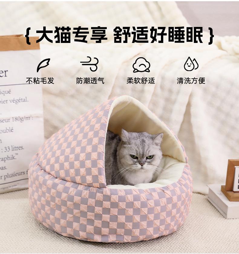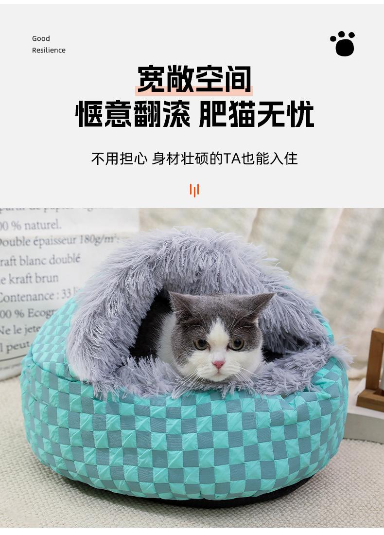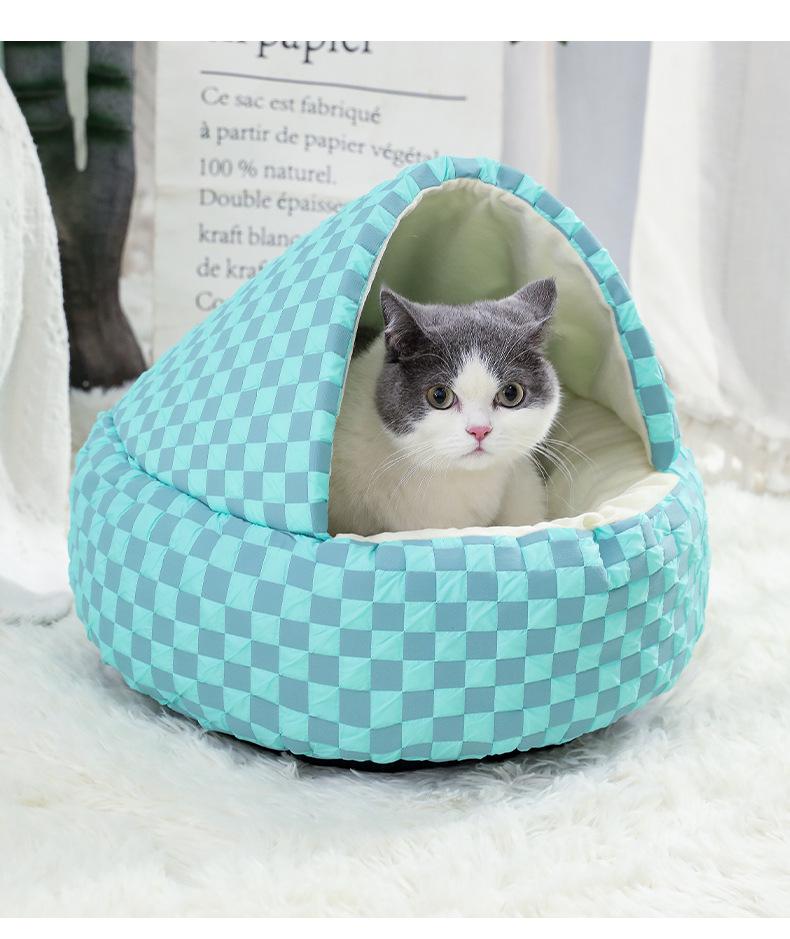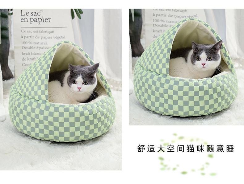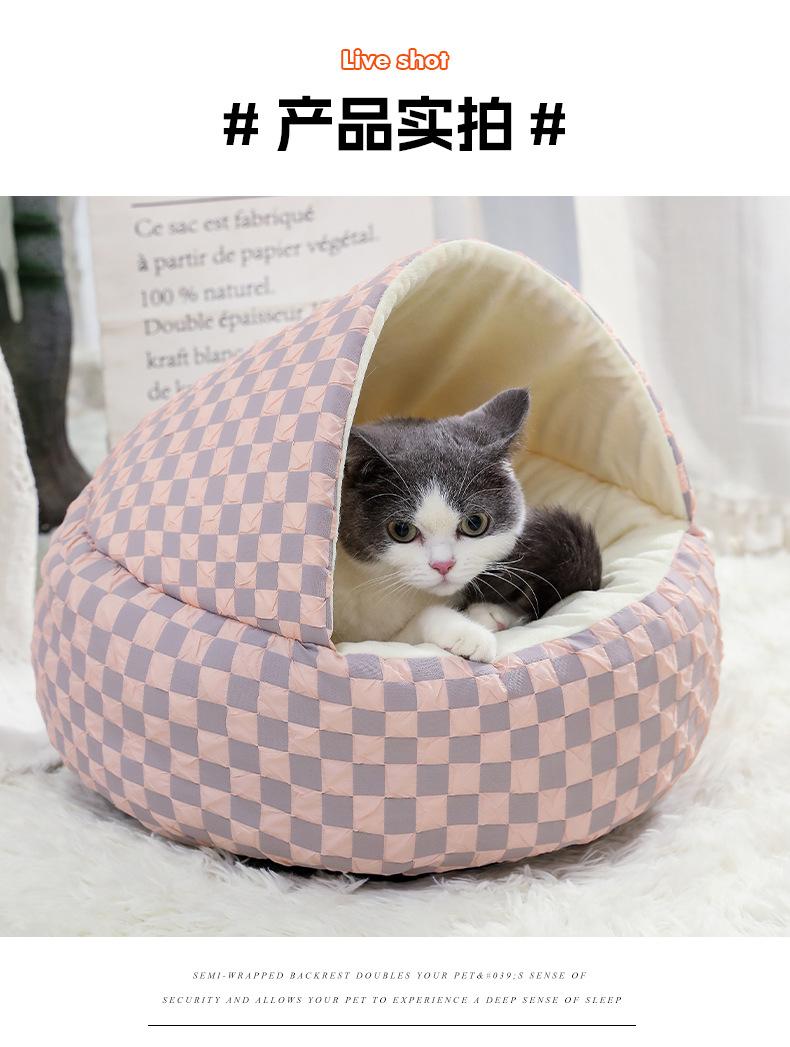 Nido de invierno cálido para mascotas, nido semicerrado para gatos, nido de felpa de algodón, nido para perros semicerrado y grueso, cama para perros