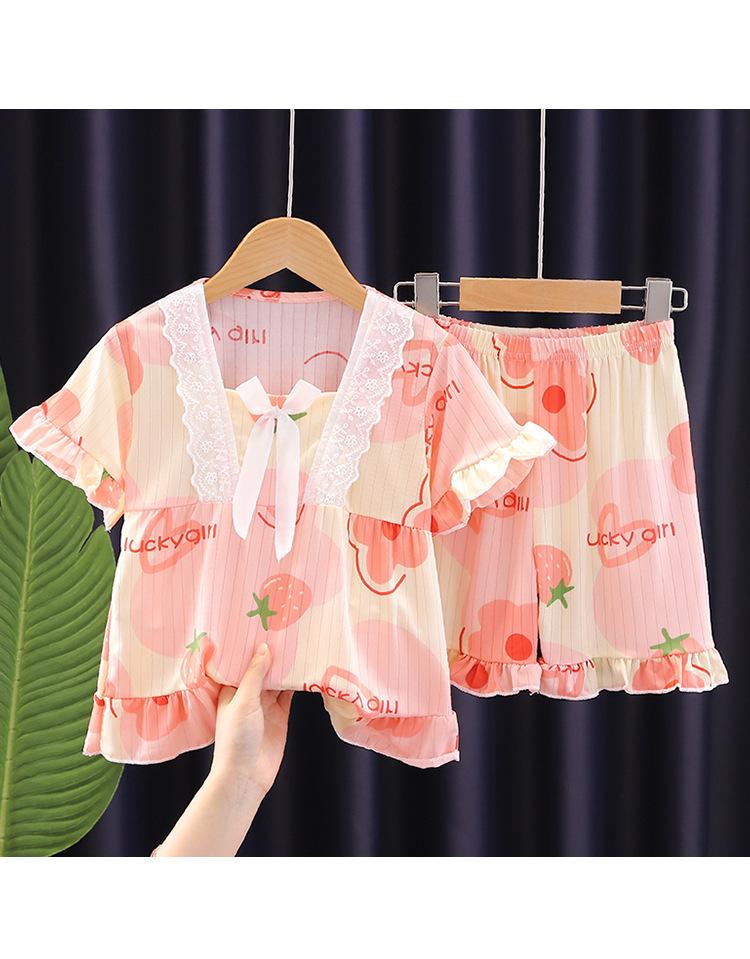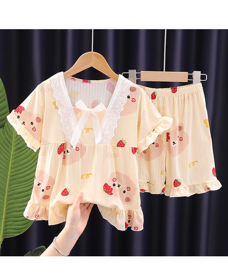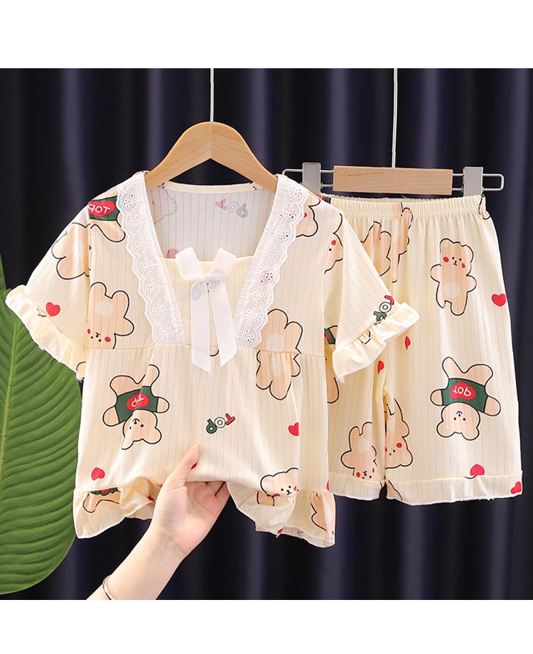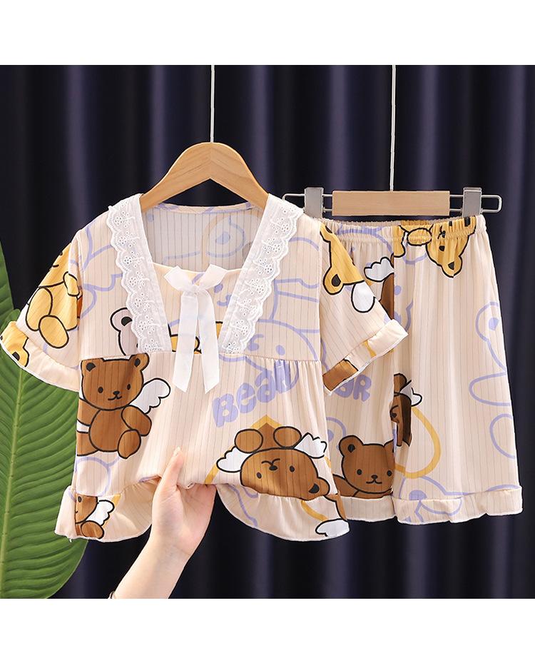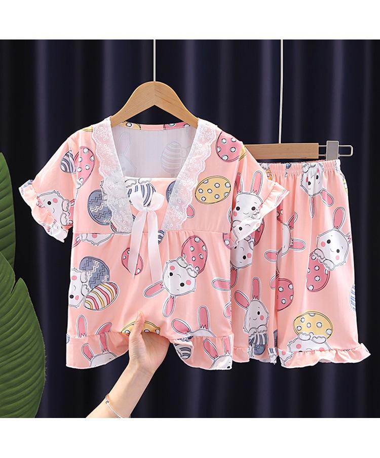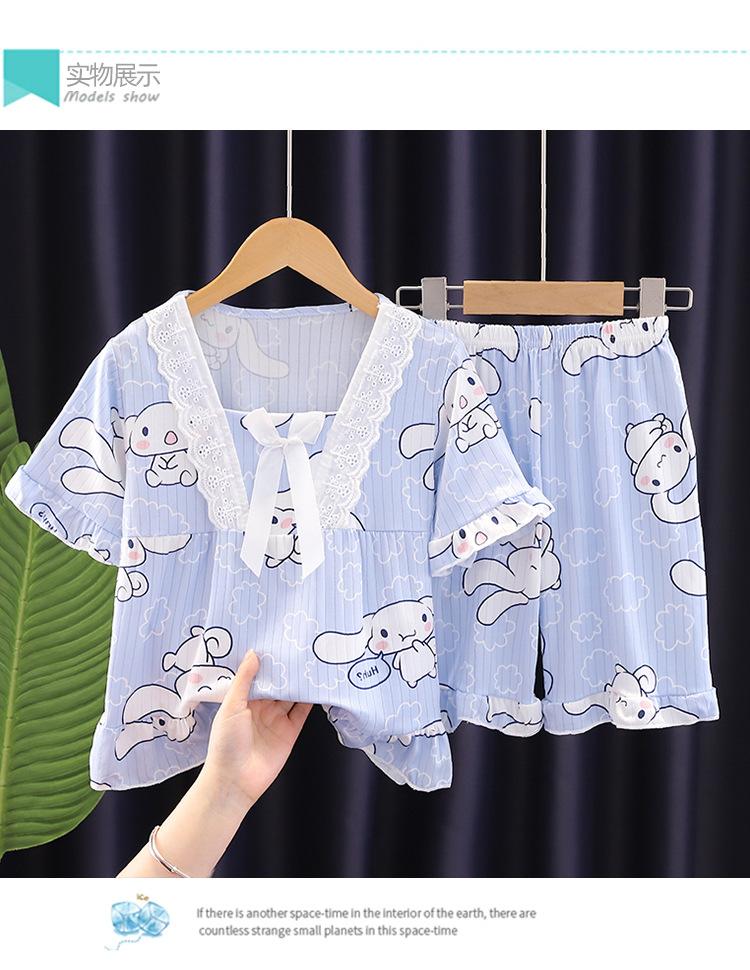 Pijamas para niños, estilo princesa de verano, dibujos animados, manga corta, finos, para niñas pequeñas, bebés, medianos y grandes, para niños, aire acondicionado, ropa de casa, traje