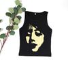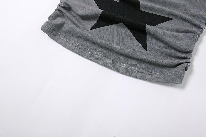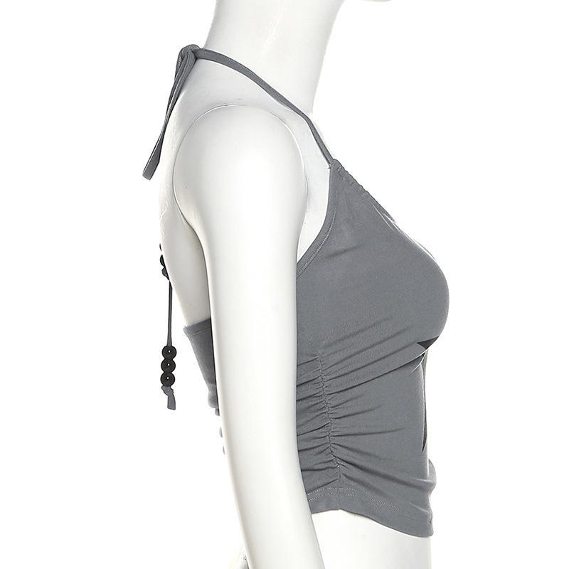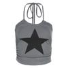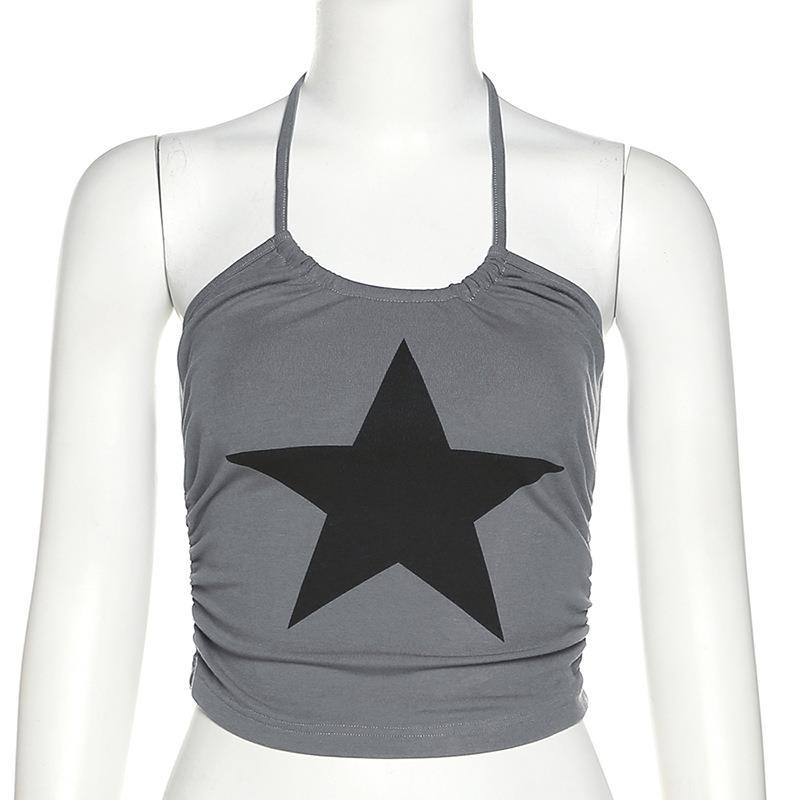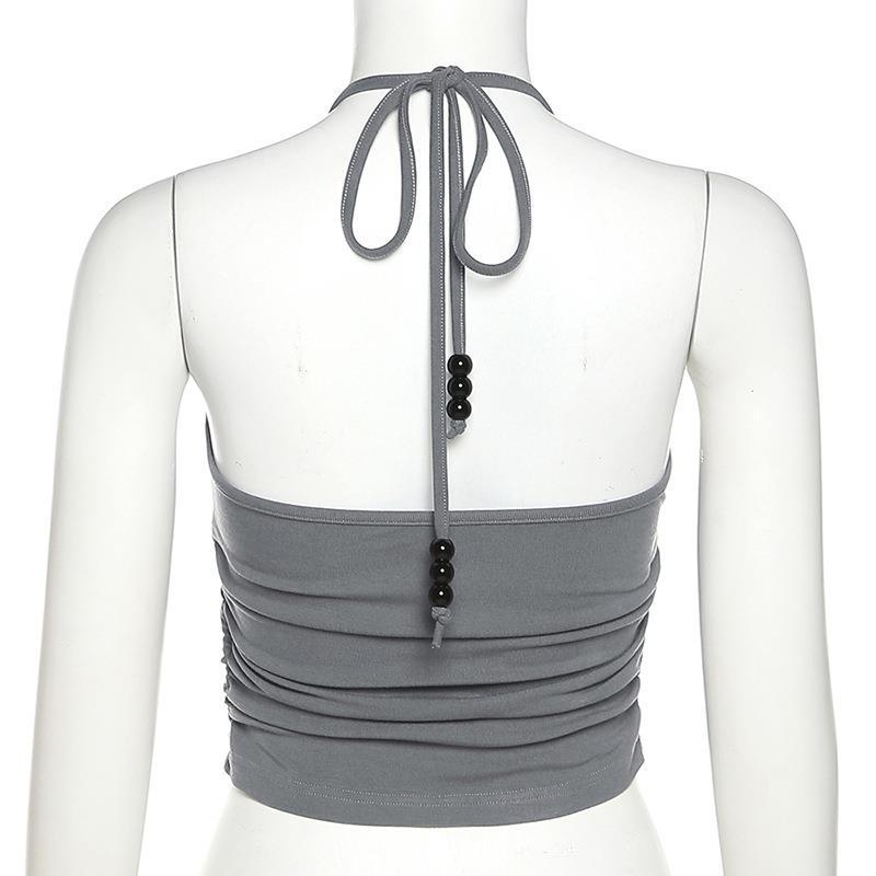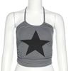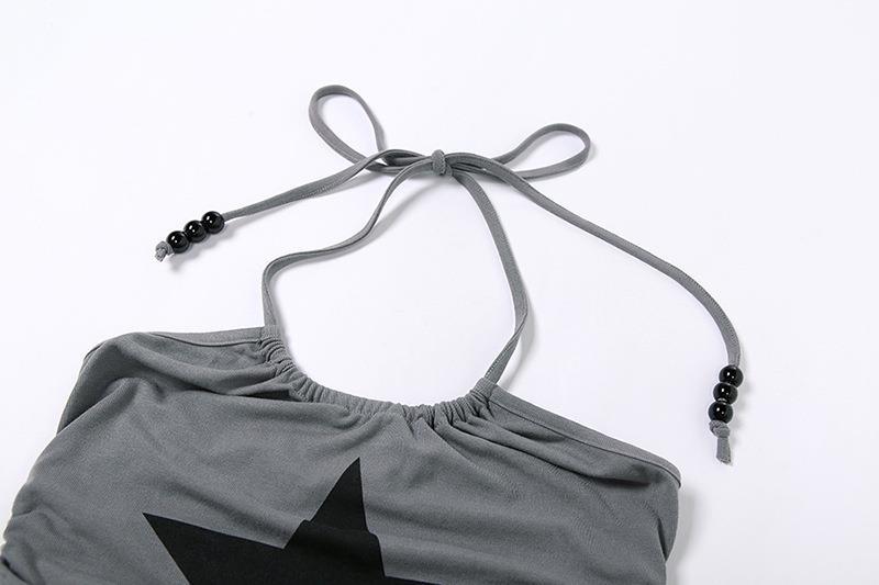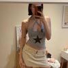 Chaleco pequeño de verano 2024 para mujer, estilo europeo y americano, con cuello colgante, sin espalda, ajustado, estampado y combinable.