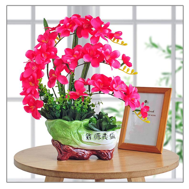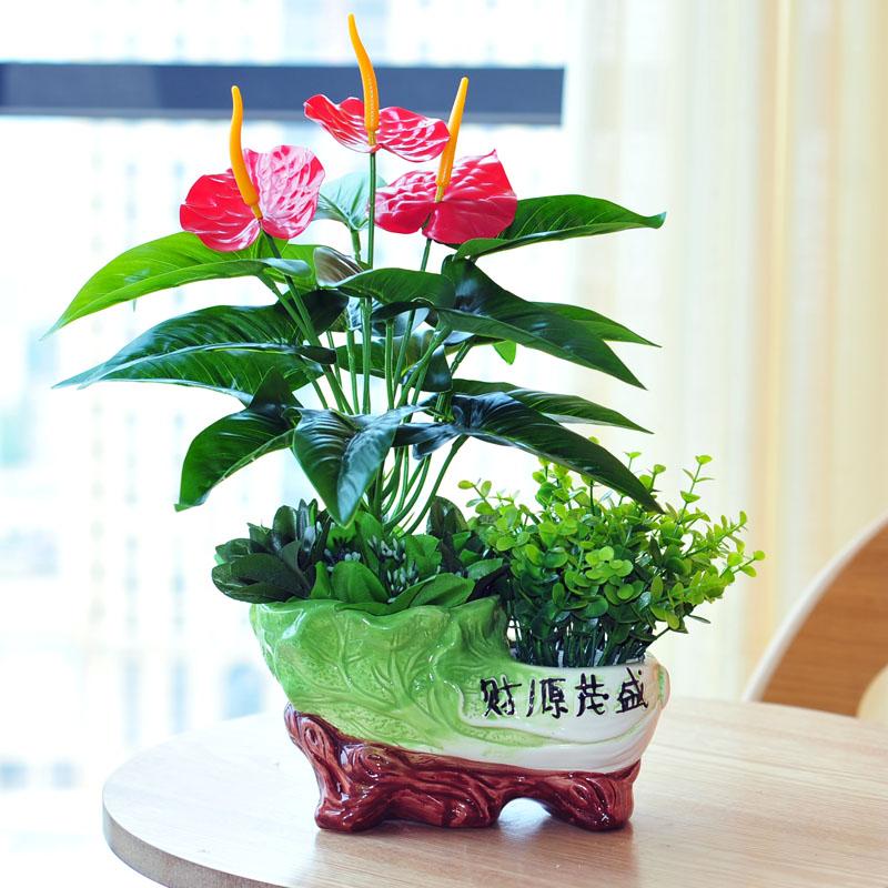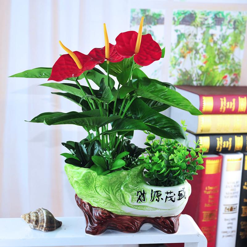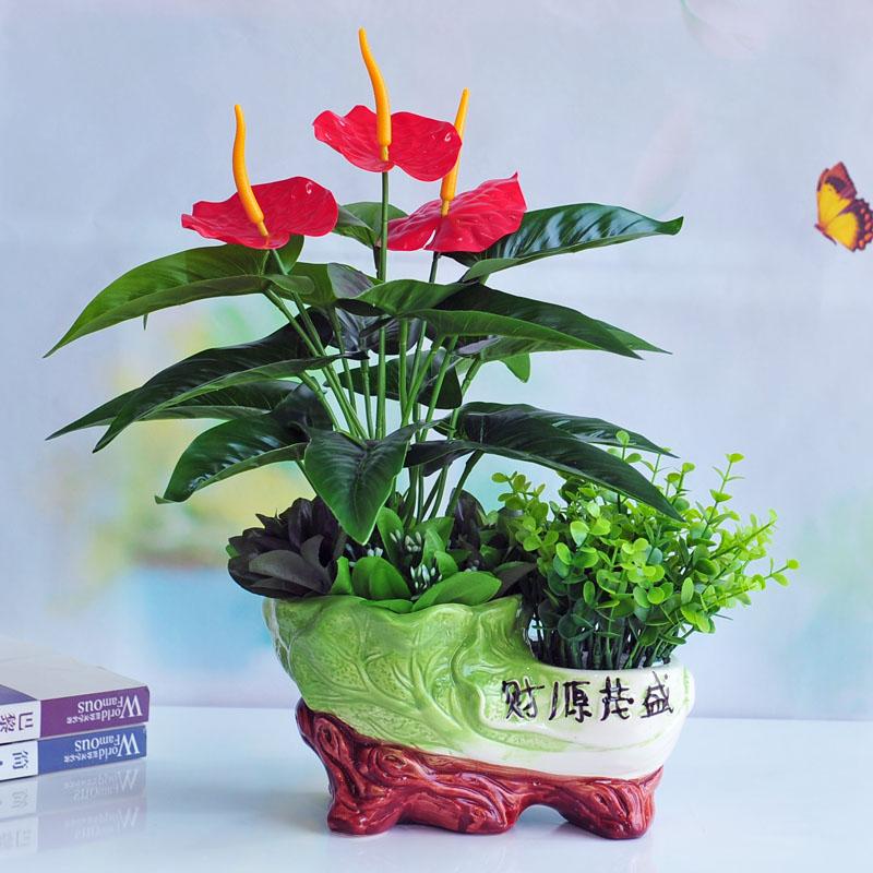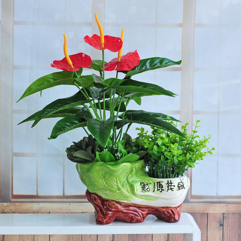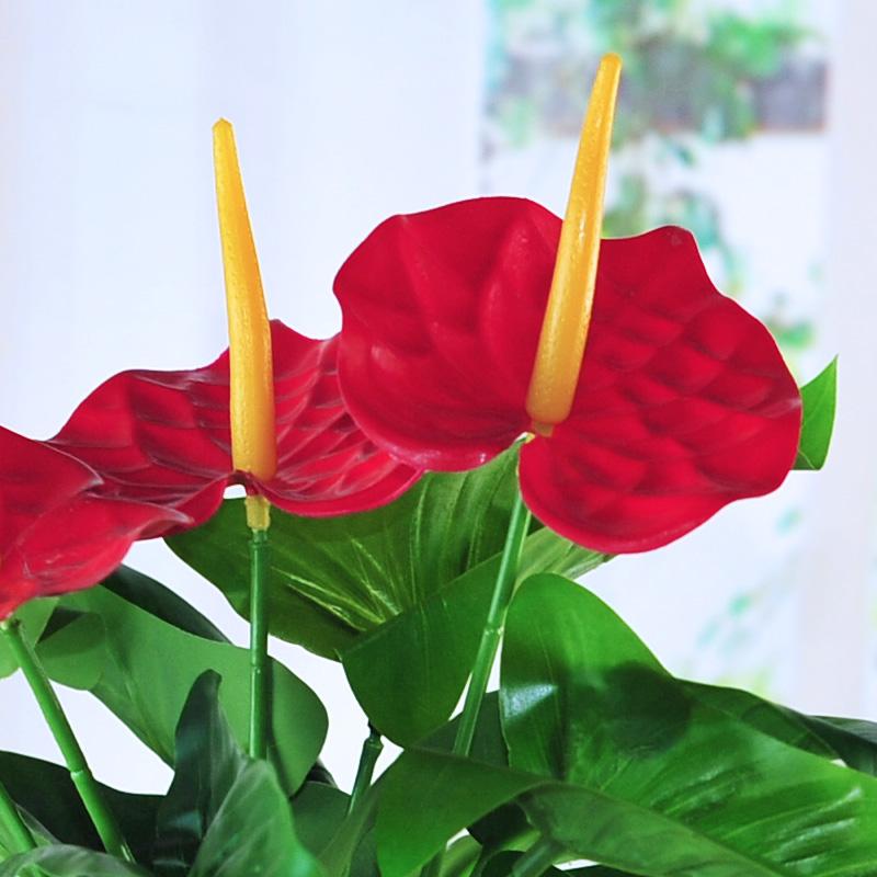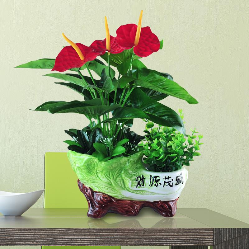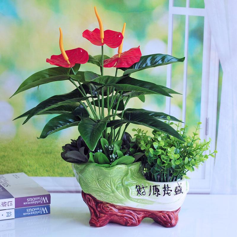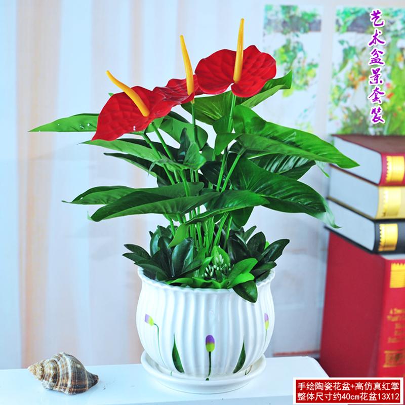 Planta de palma roja, flor artificial, planta verde, flor, decoración del hogar, flor de plástico, decoración de sala de estar, maceta falsa