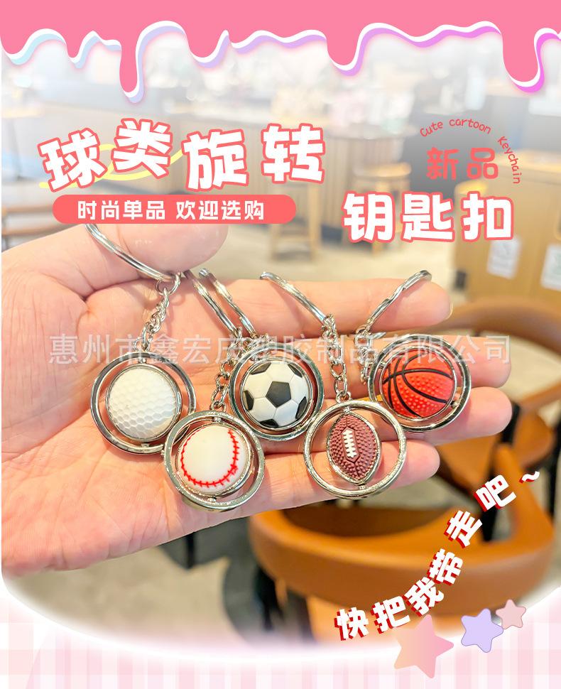 Chaveiro de carro de futebol de basquete giratório de metal, lindo presente esportivo de rúgbi, mochila masculina e feminina, pingente