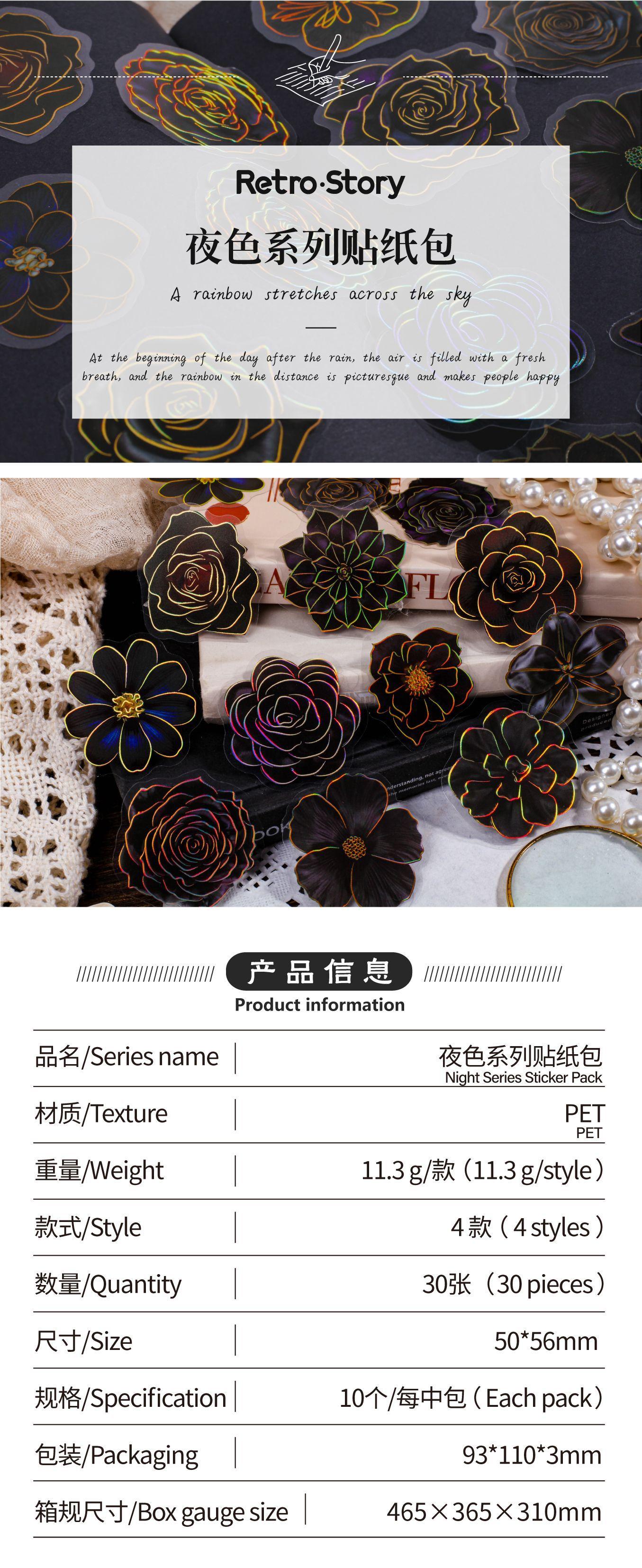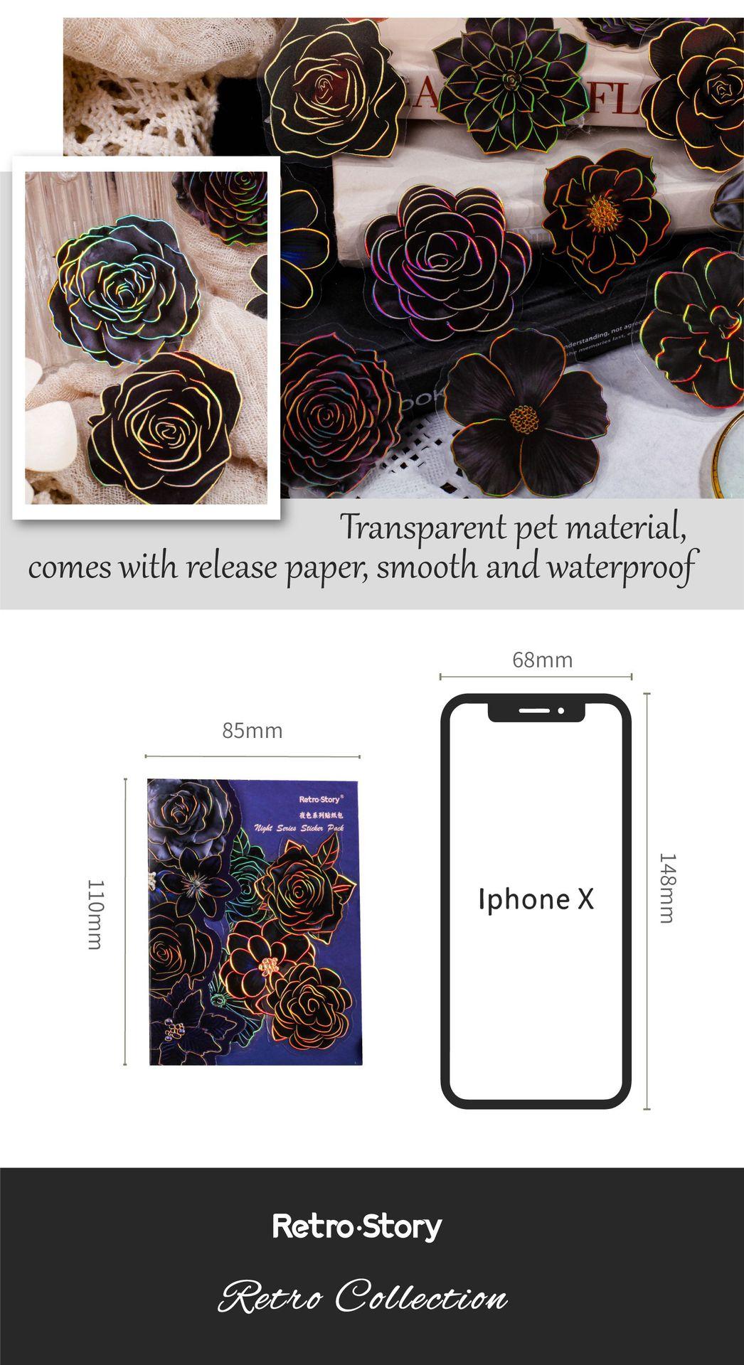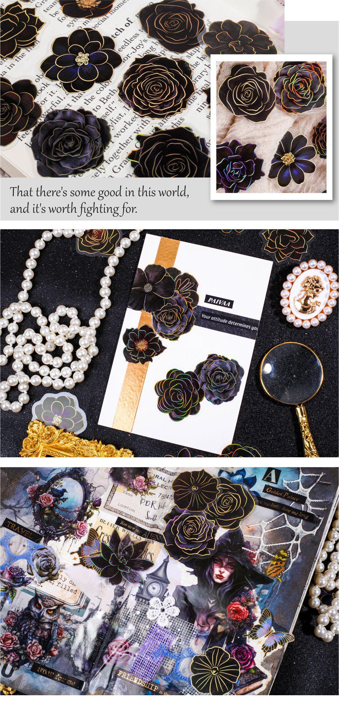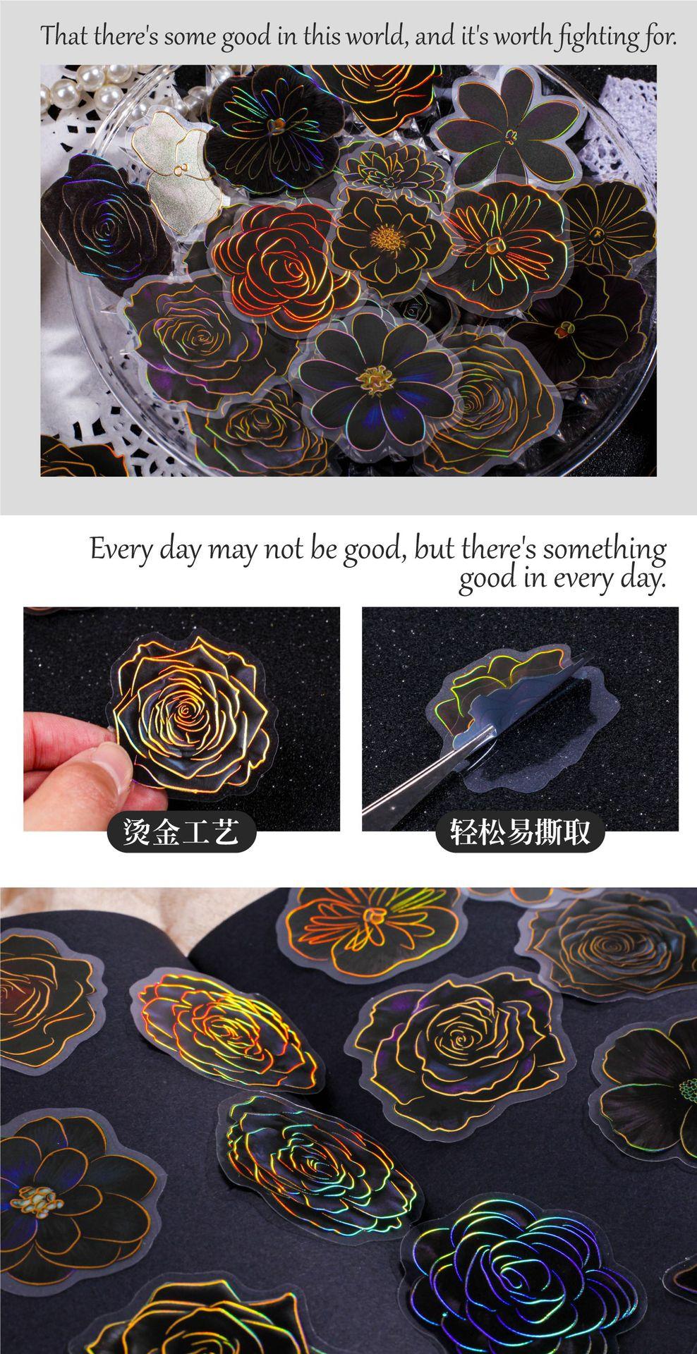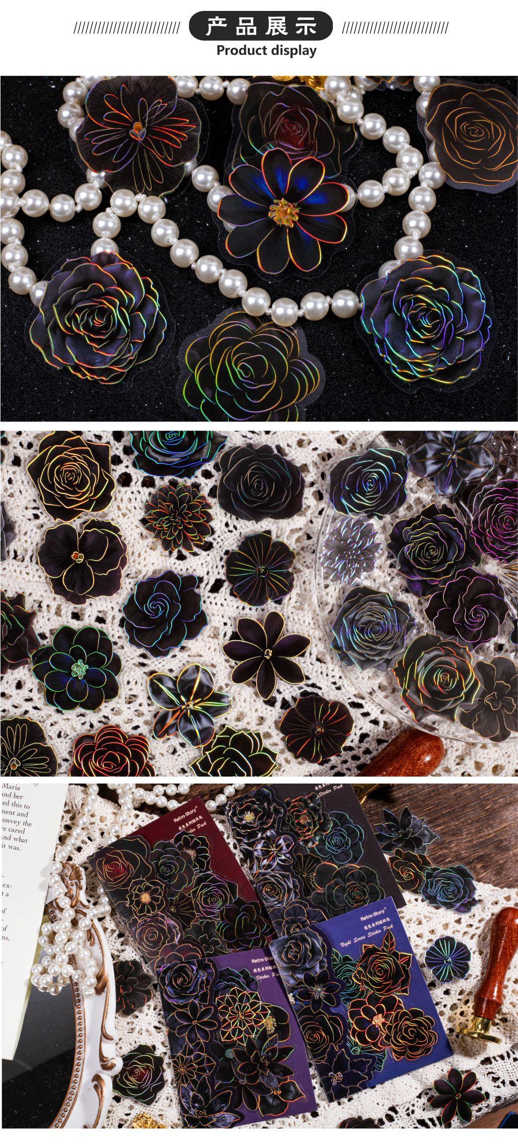 Paquete de Stickers Nocturnos Transfronterizos, Paquete de Material de Estampado en Caliente Tridimensional de Flor de Rosa Retro, Paquete de Material para Dolor, Papel Adhesivo para Cuaderno