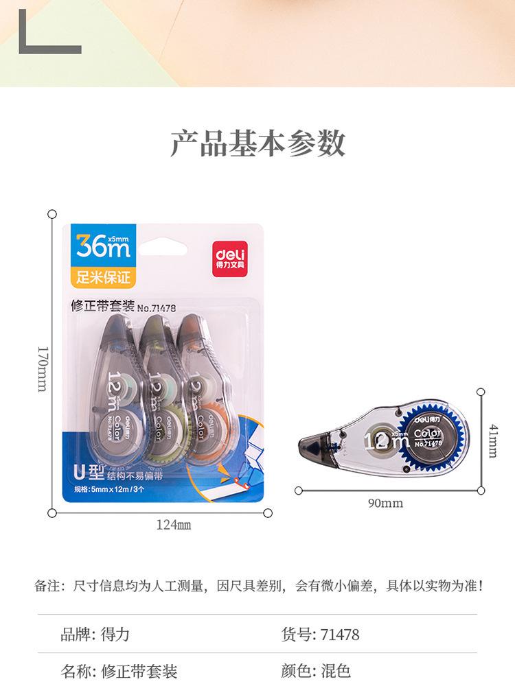 Deli 71478 cinta correctora 36m cinta correctora continua suave cinta correctora de gran capacidad papelería para aprendizaje y oficina