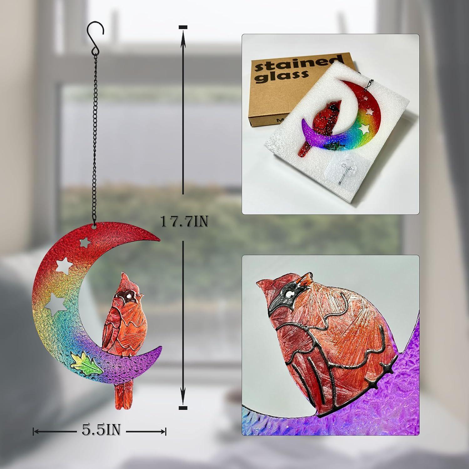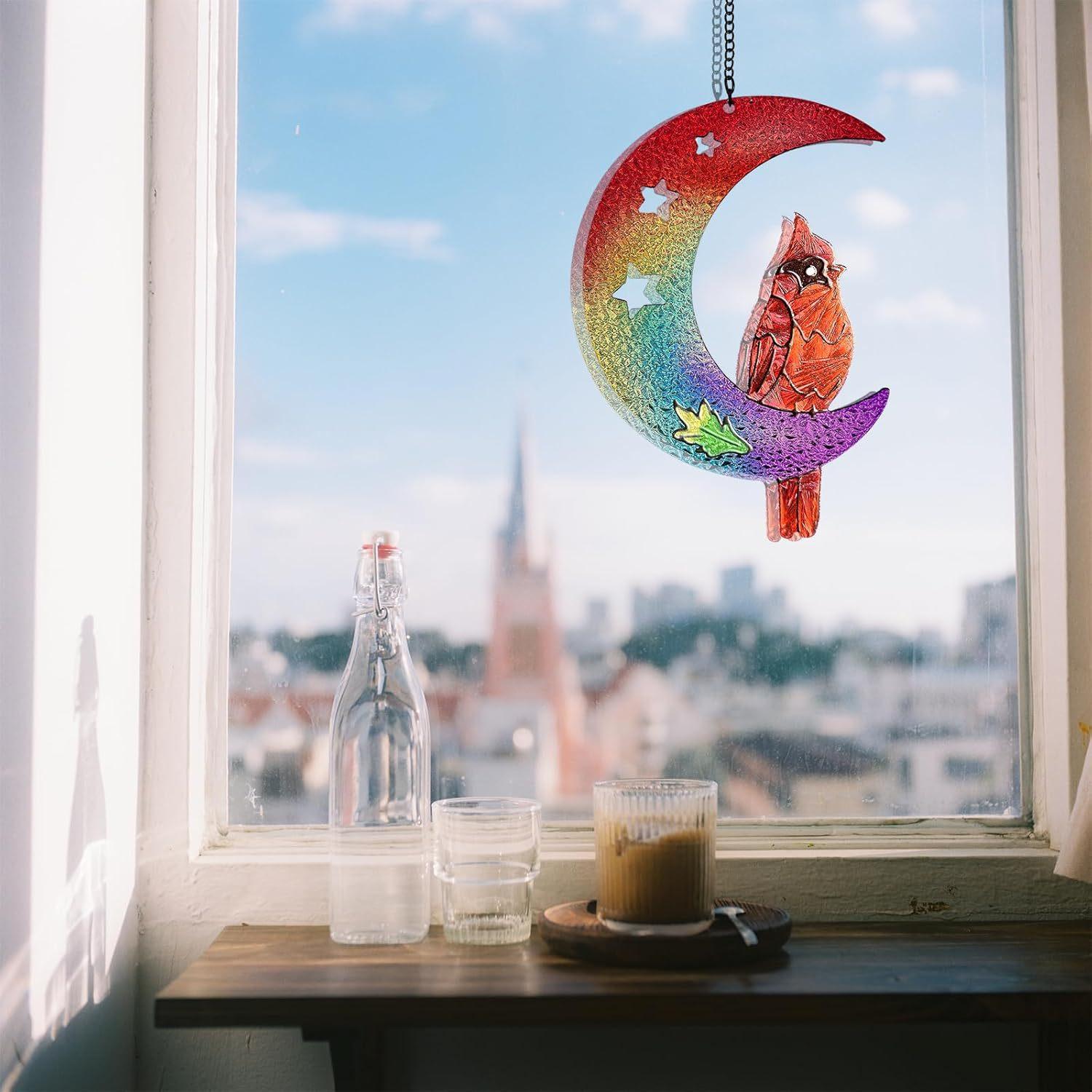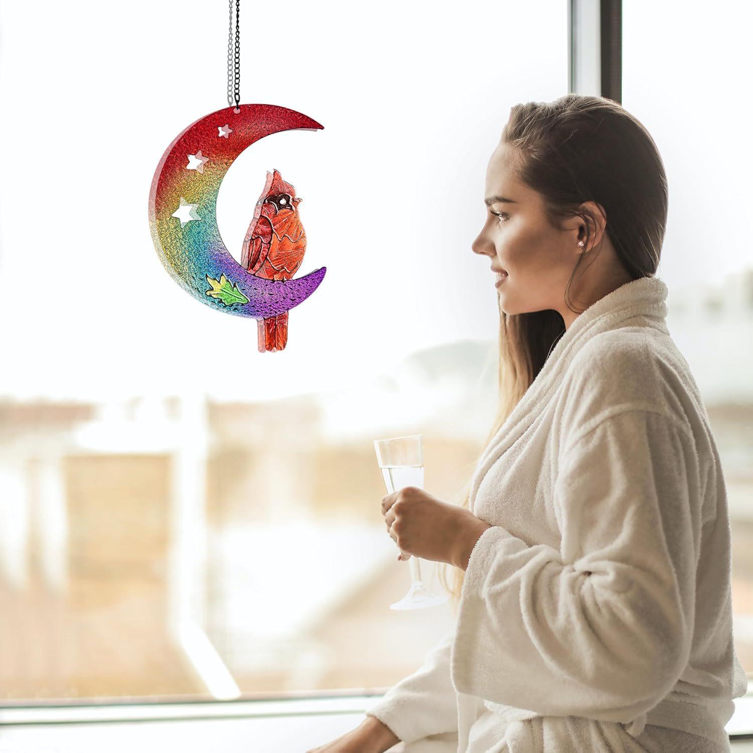 Colgante de ventana con explosiones transfronterizas, luna, pájaro rojo, artesanía de vidrio, adornos atrapasoles para exteriores, accesorios para el hogar