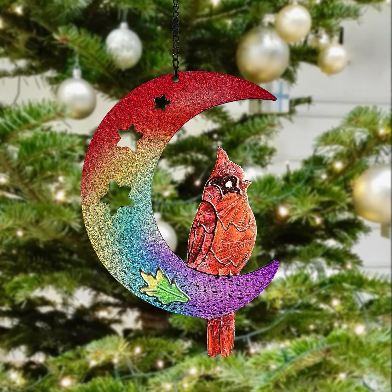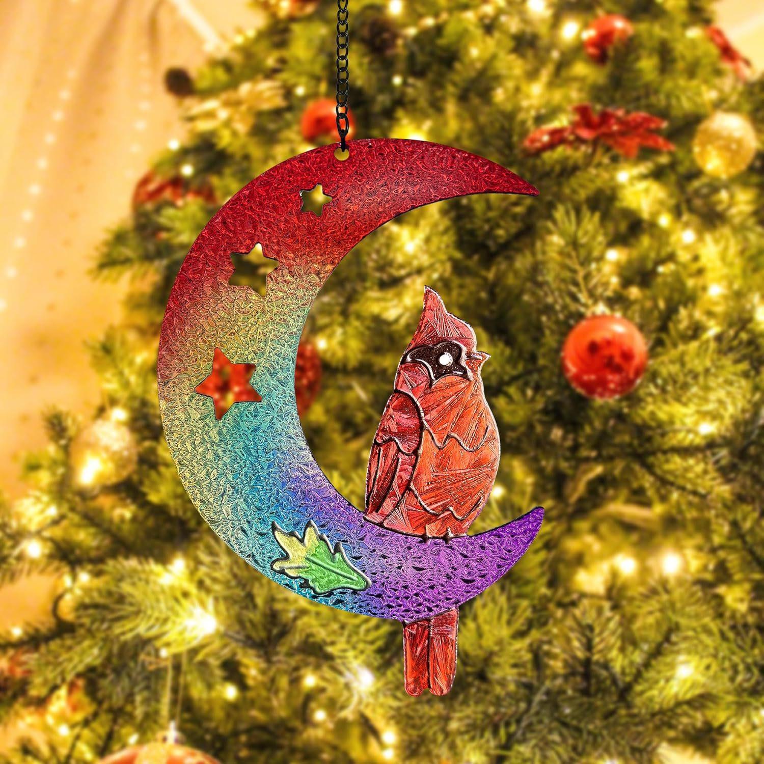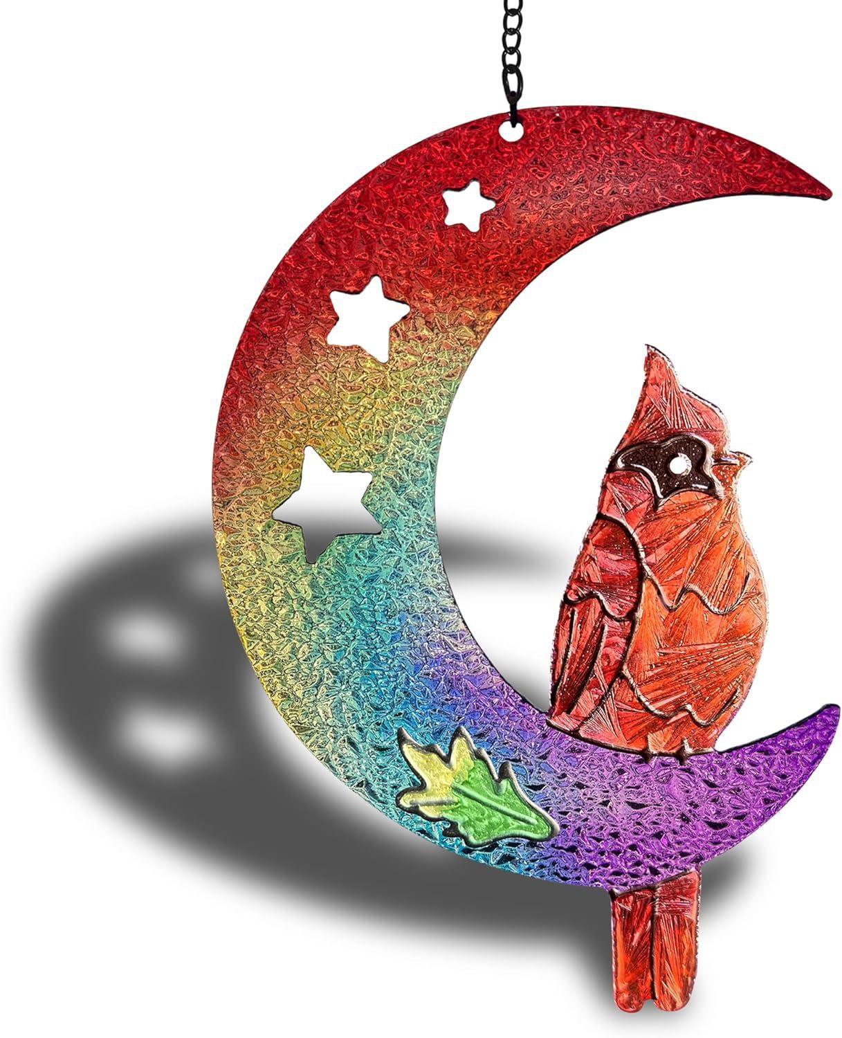 Colgante de ventana con explosiones transfronterizas, luna, pájaro rojo, artesanía de vidrio, adornos atrapasoles para exteriores, accesorios para el hogar