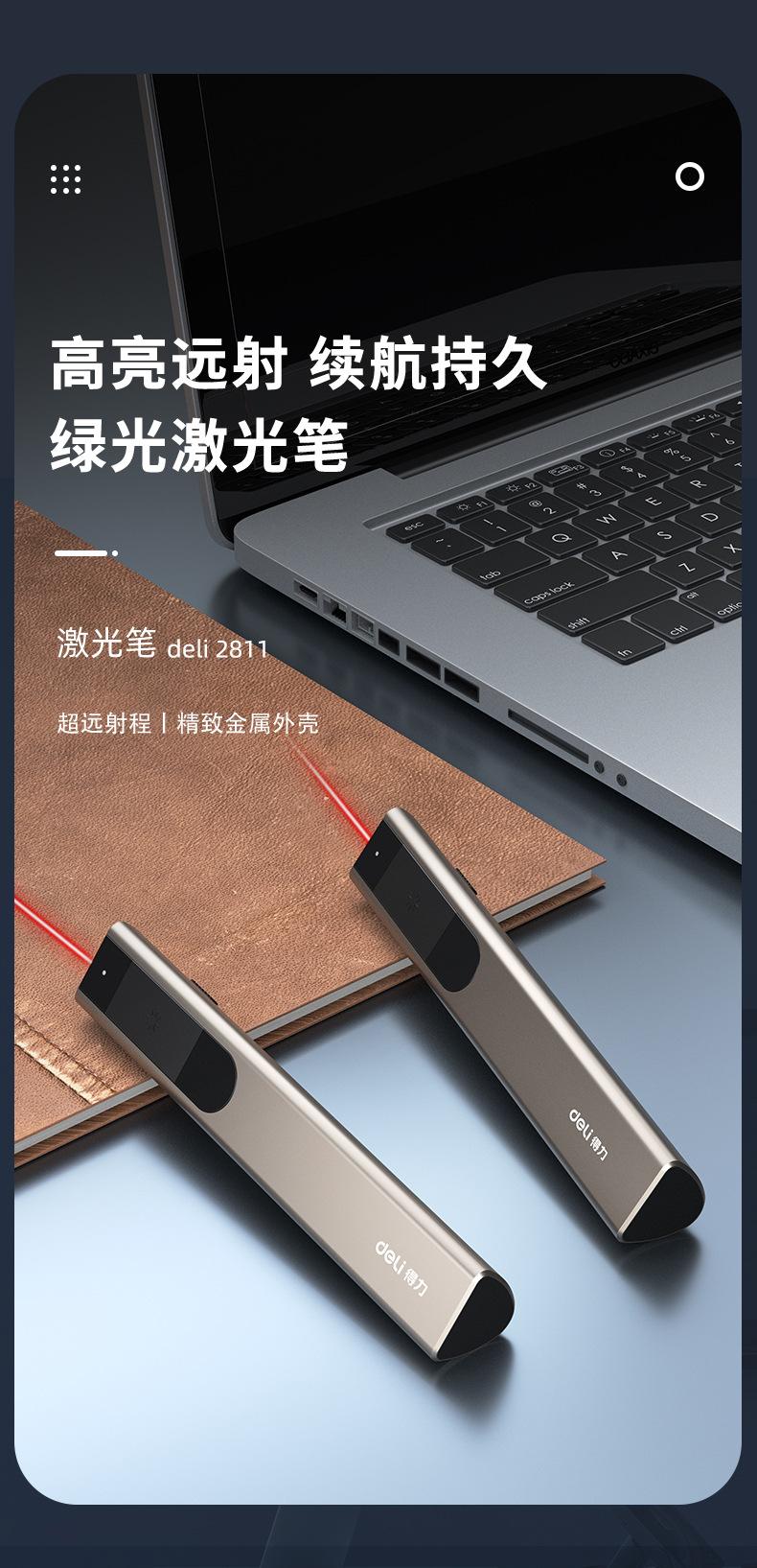 Deli 2811 Puntero Láser Pasapáginas Uso para Profesor Puntero Multifuncional PPT Control Remoto para Material Didáctico Pluma Puntero de Luz Roja USB