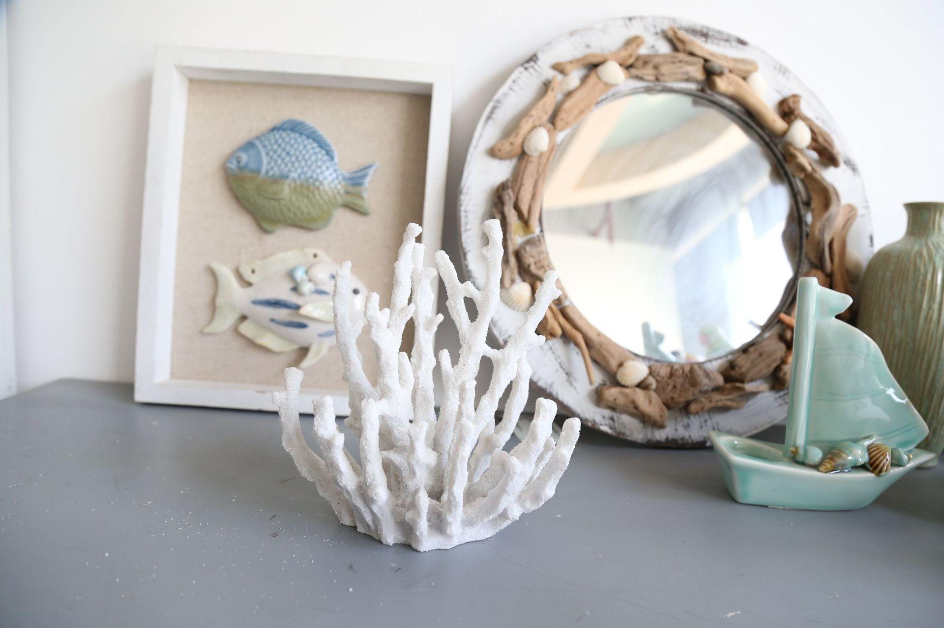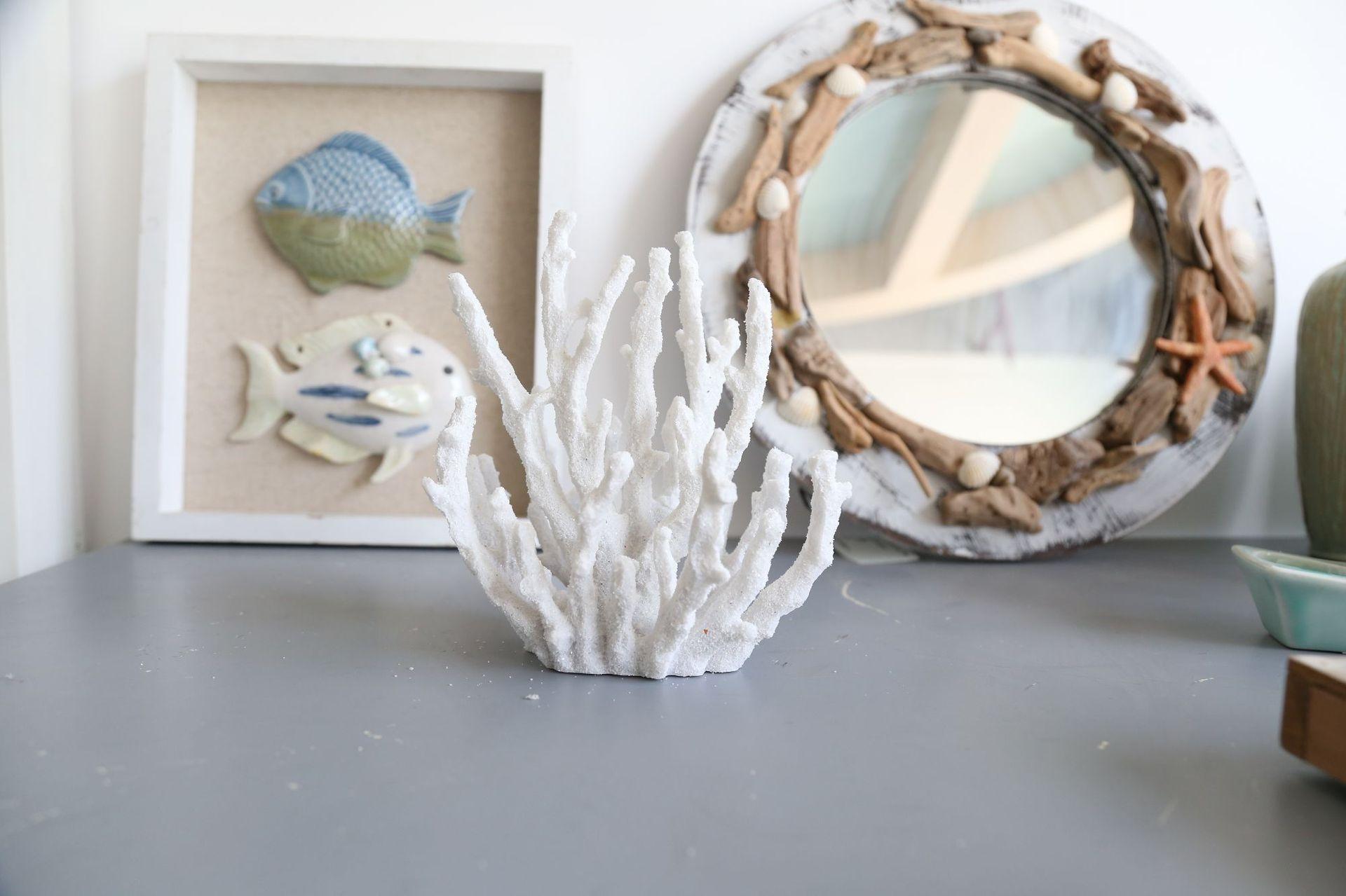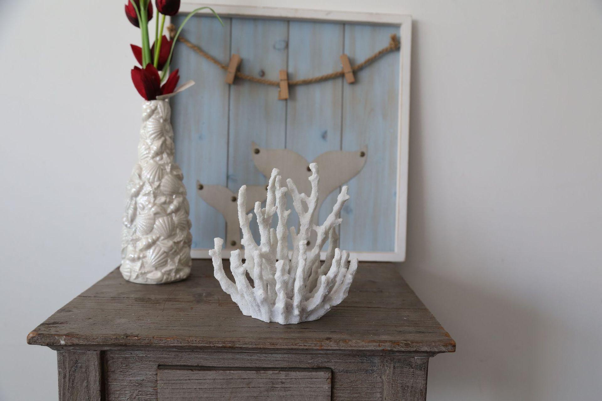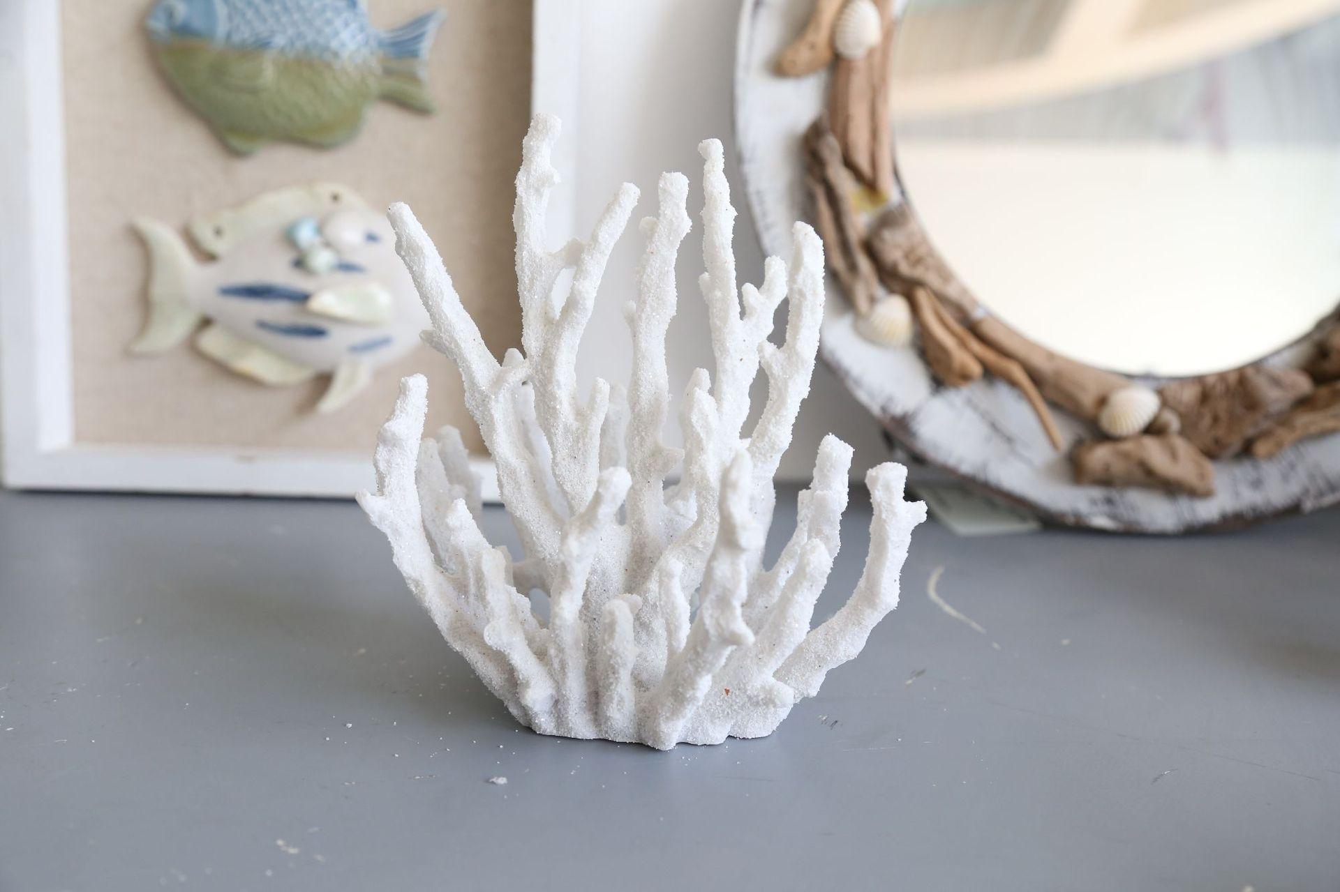 Adornos de escritorio con simulación creativa de estilo europeo de Amazon, con efecto de arena y piedra, color coral blanco.