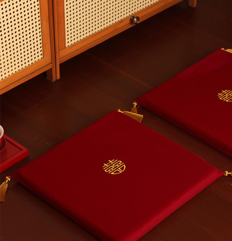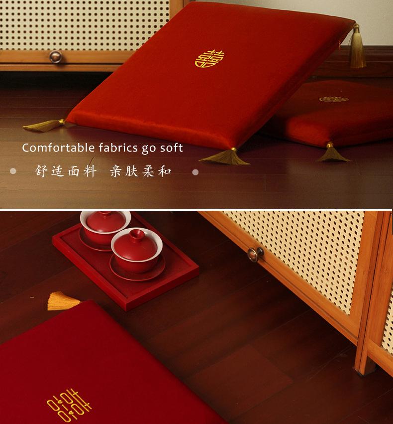 Festiva Alfombra para Arrodillarse de Boda Estilo Chino Rojo Té con Palabras Felices Suministros de Boda Salón de la Novia Alfombra Cojín para Matrimonio