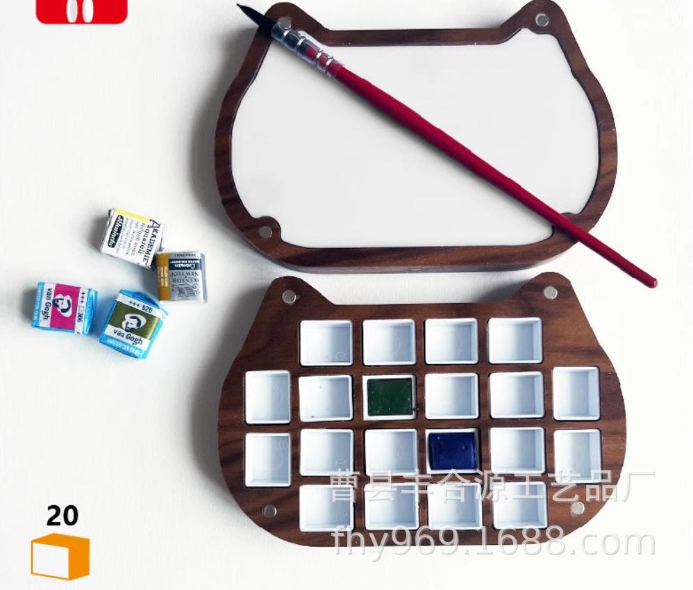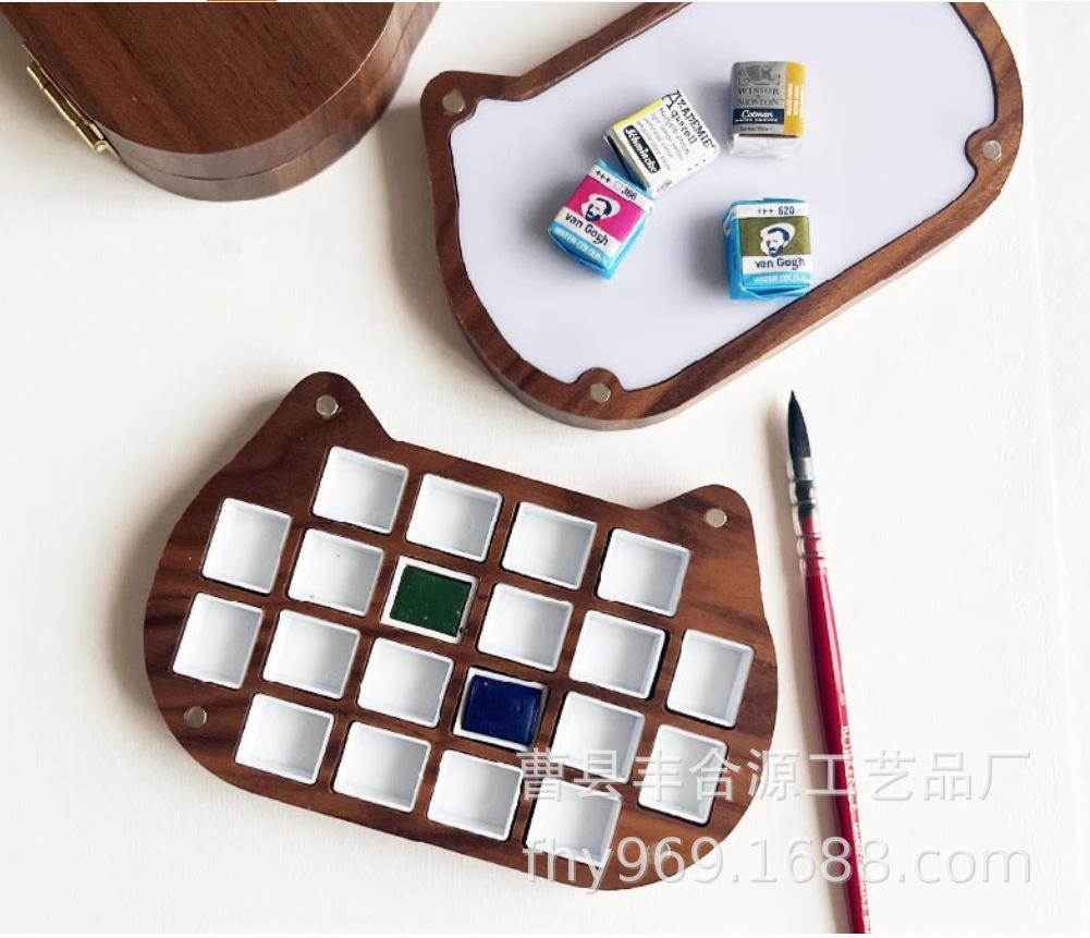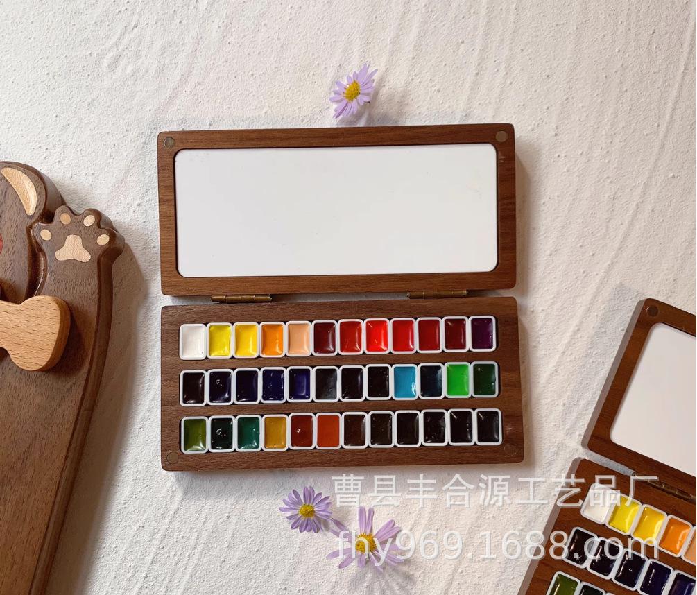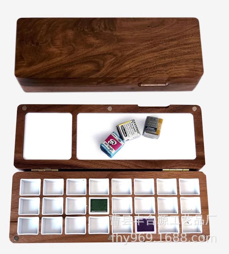 Caja de pintura de acuarela de nogal americano, pintura para niños al aire libre, caja de acuarela portátil, caja de tinte magnética multigrid