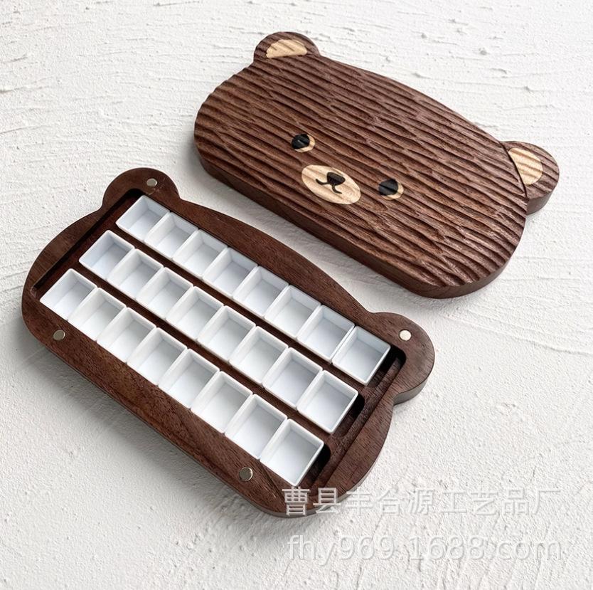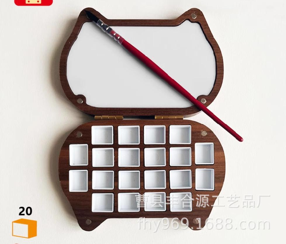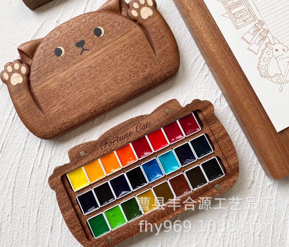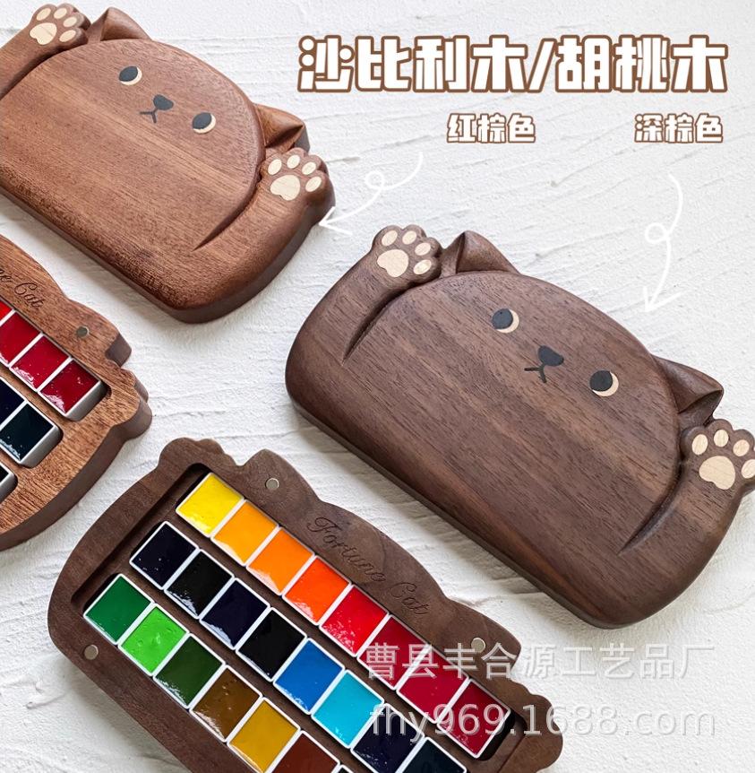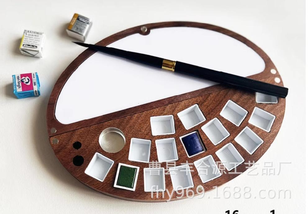 Caja de pintura de acuarela de nogal americano, pintura para niños al aire libre, caja de acuarela portátil, caja de tinte magnética multigrid
