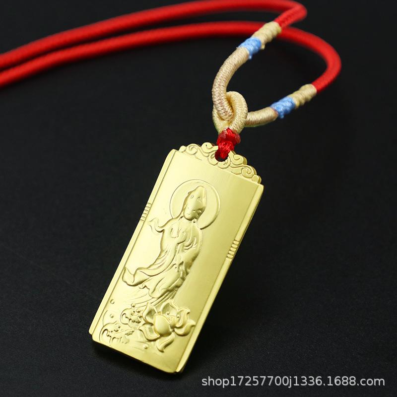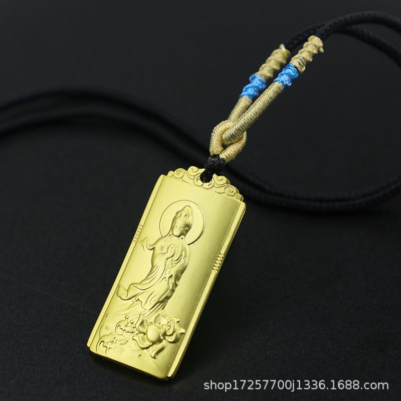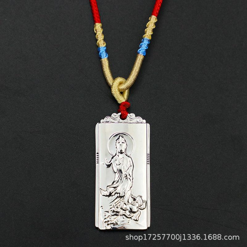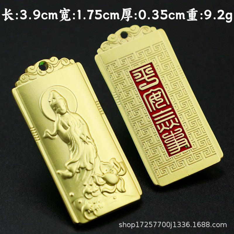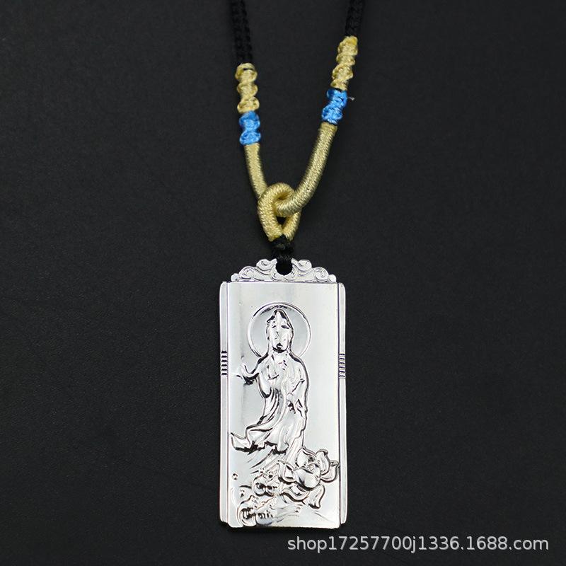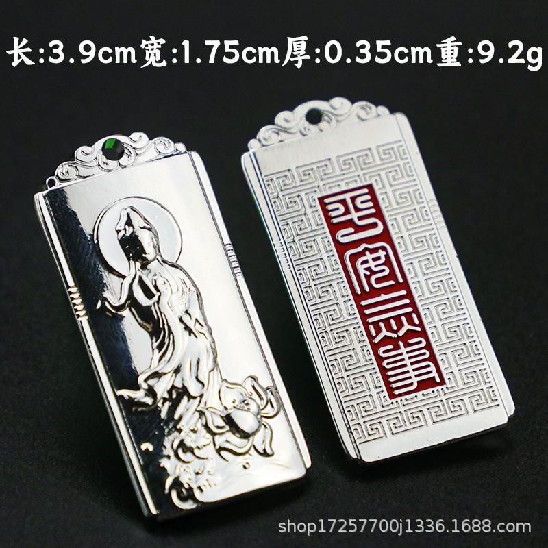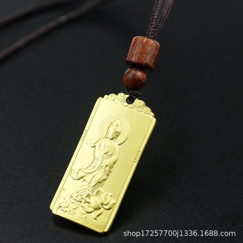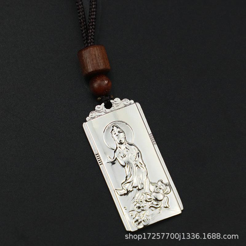 Colgante cuadrado retro tridimensional de bodhisattva Guanyin, tarjeta de nada de Guanyin, colgante de metal sólido, bodhisattva, pequeños accesorios chinos
