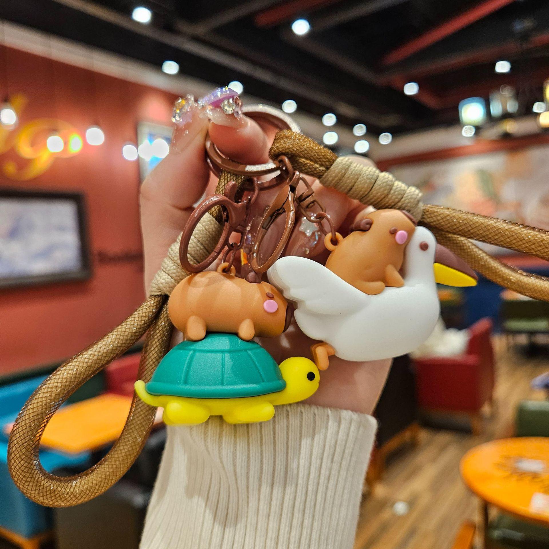 Adorable llavero de muñeca Capibala, caja de terciopelo, llavero de juguete, colgante de mochila para pareja, llavero de coche