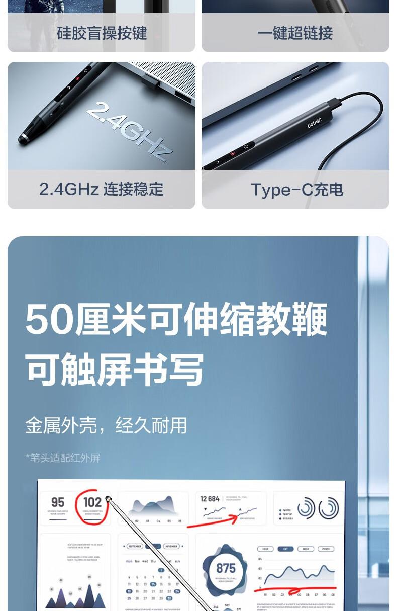 Compra Bolígrafo láser multifunción Deli con tapa para enseñanza, para reuniones de profesores, con pantalla táctil, retráctil y con control remoto. al por mayor en Joom.pro