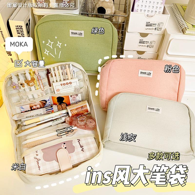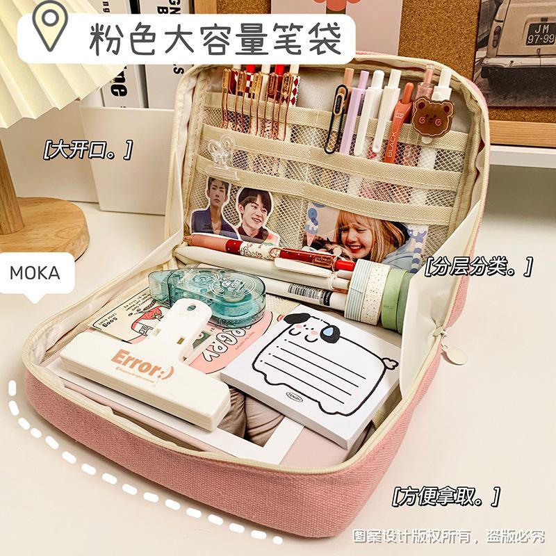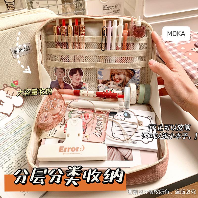 Compra Estuche de lápices sencillo de gran capacidad, bolsa de papelería de gran apertura, estuche de lápices de almacenamiento multicapa multifuncional para estudiantes, caja de papelería de alto valor al por mayor en Joom.pro
