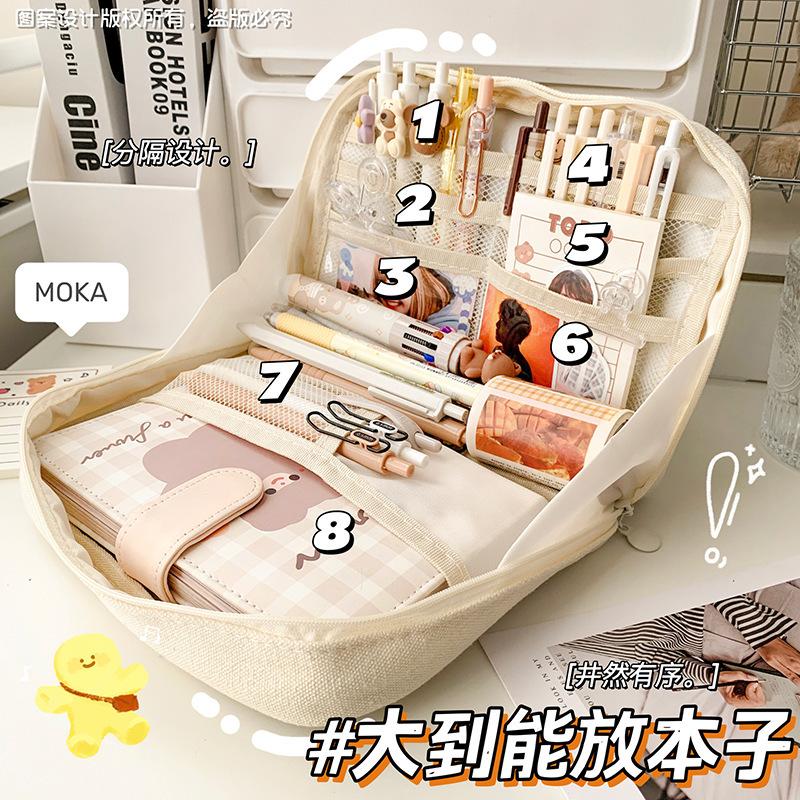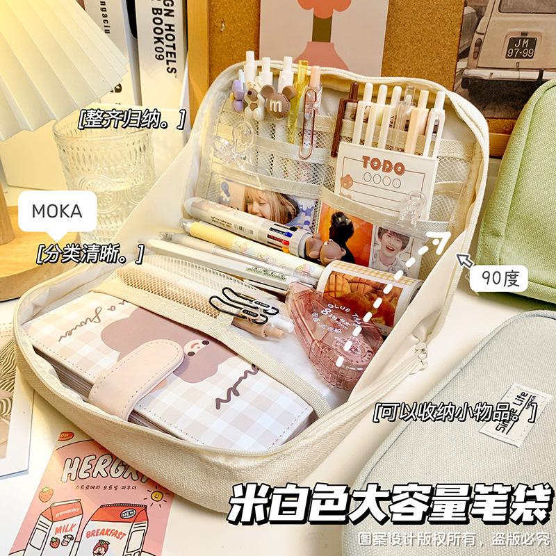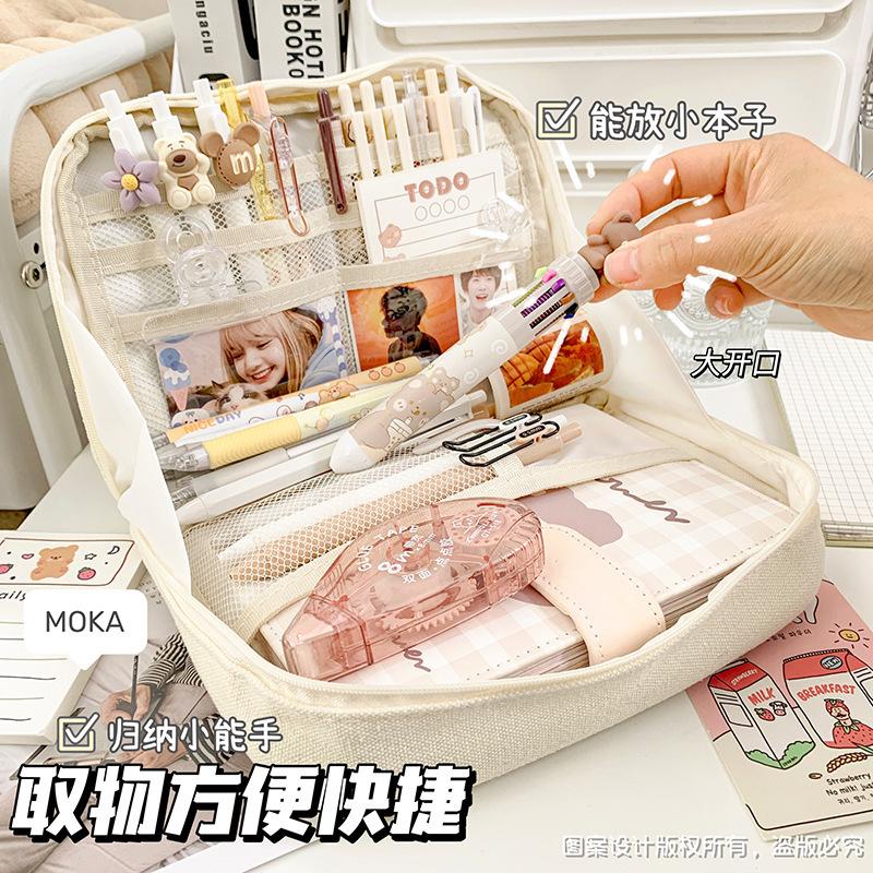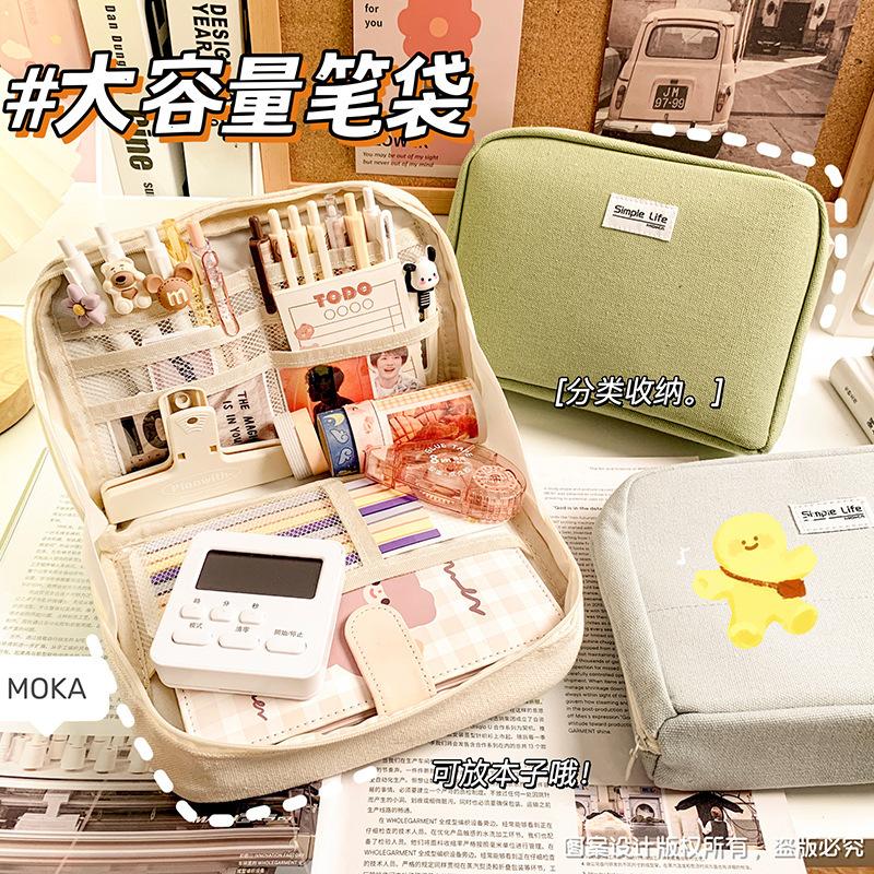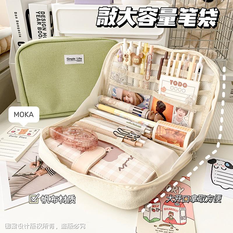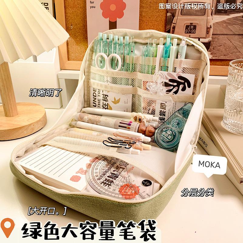 Estuche de lápices sencillo de gran capacidad, bolsa de papelería de gran apertura, estuche de lápices de almacenamiento multicapa multifuncional para estudiantes, caja de papelería de alto valor