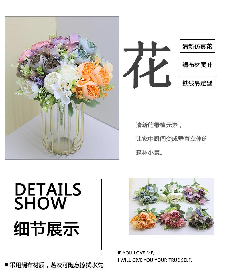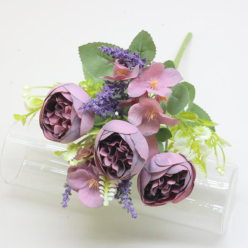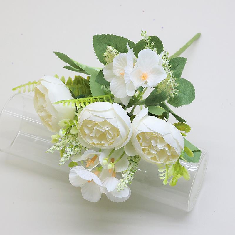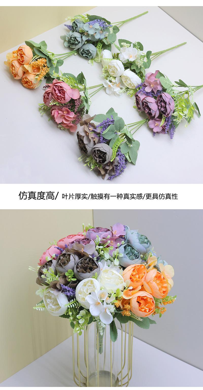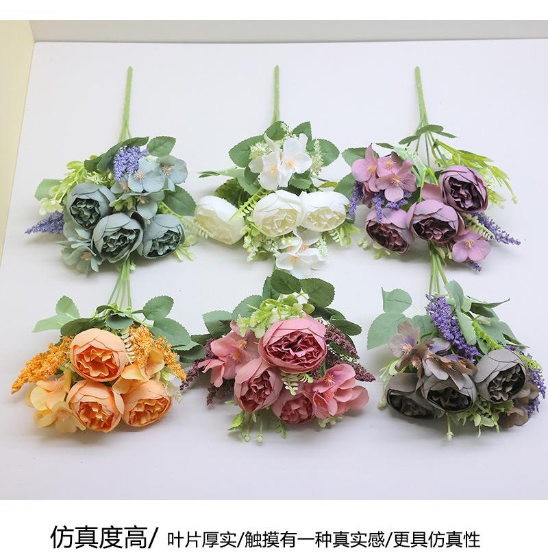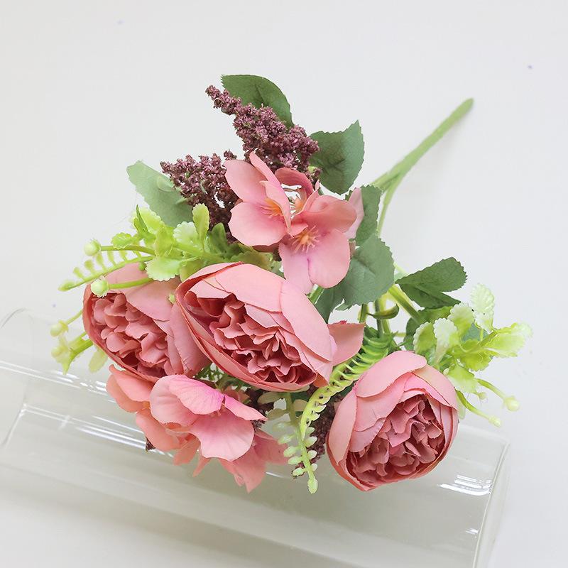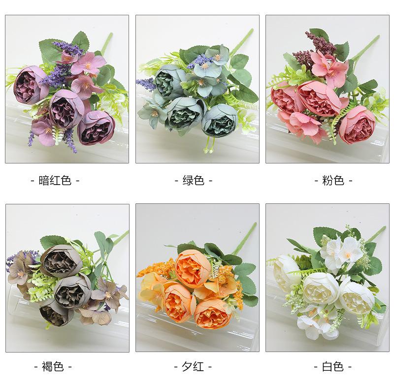 Ramo de Flores de Boda de Rosa de Simulación Nórdica Decoración de Boda para el Hogar Ramo de Flores de Simulación 5 Peonías