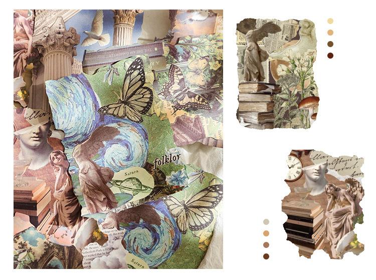 Papel con cuenta de mano de tinte Mu, conjetura de Qimeng, papel de respaldo de literatura y arte retro, pegatina de decoración de libros, bolsa de material de papel de ácido sulfúrico