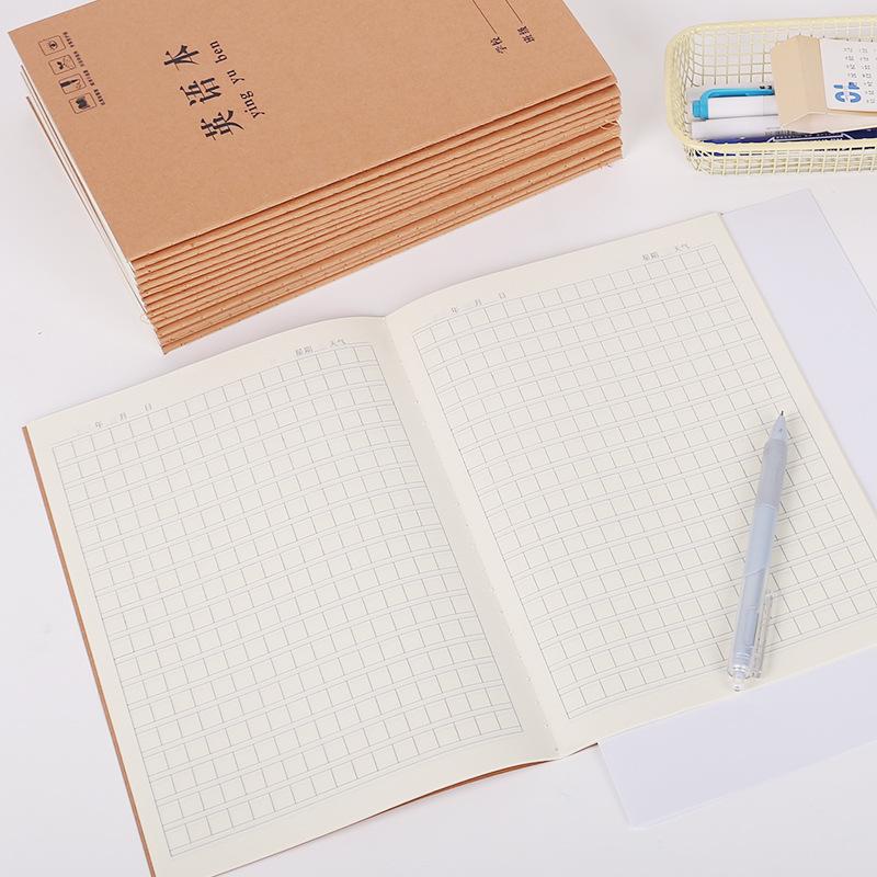 Cuaderno de ejercicios de sutura de piel de vaca de 16 quilates, cuaderno unificado de matemáticas chinas e inglés, bloc de notas grueso B5 para estudiantes, venta al por mayor