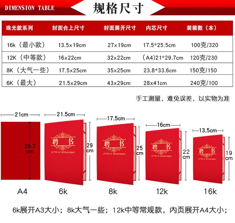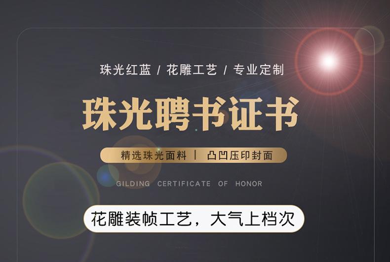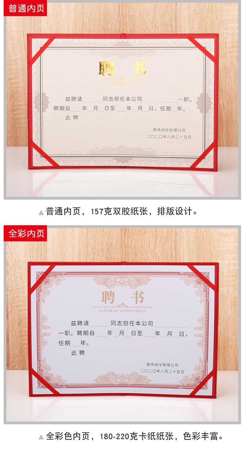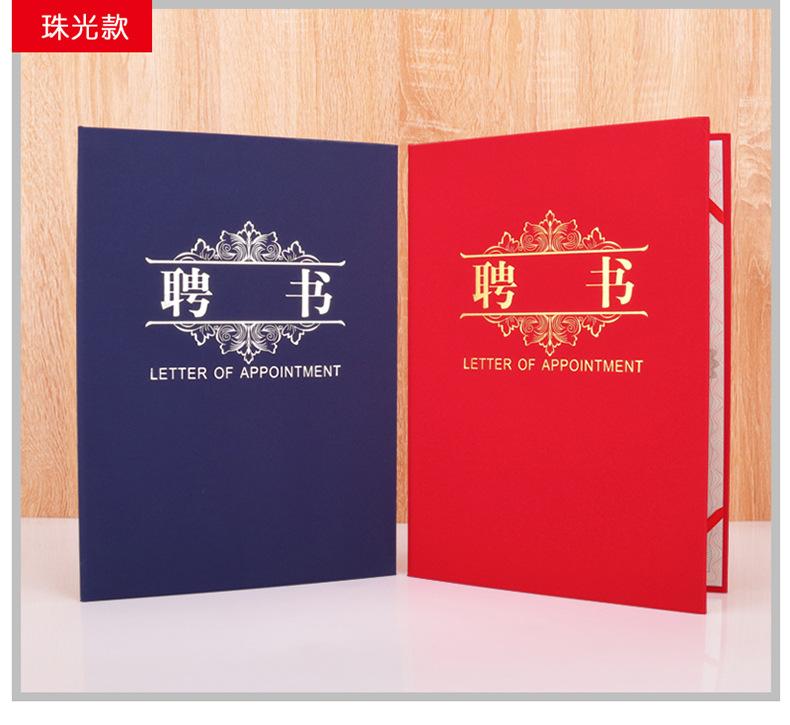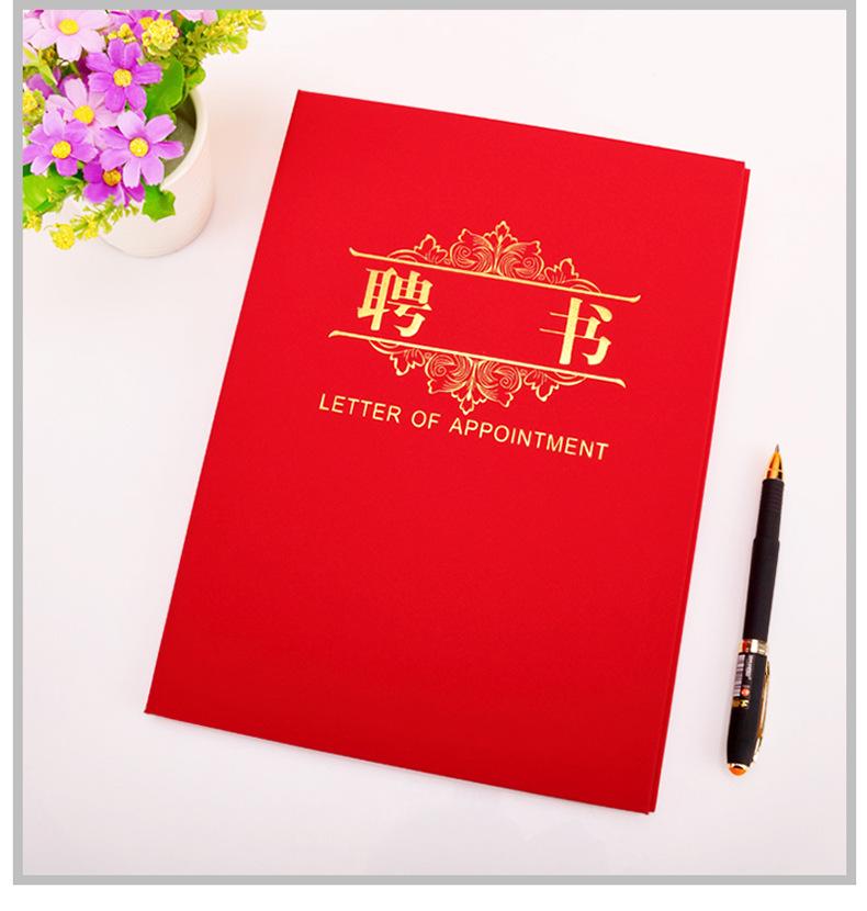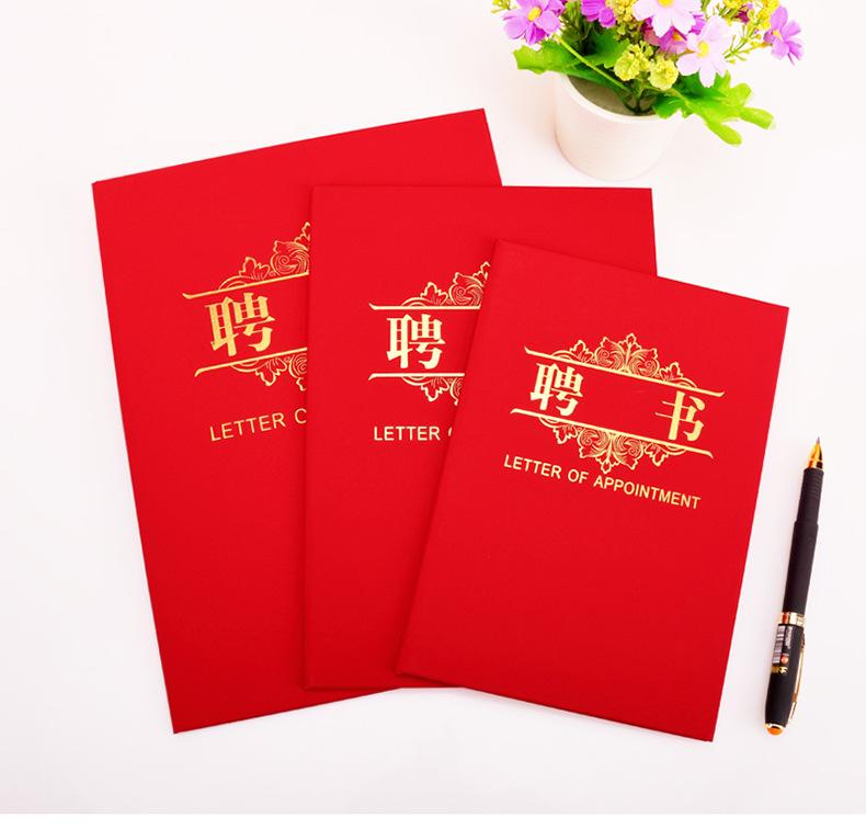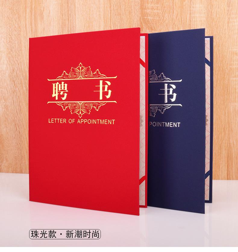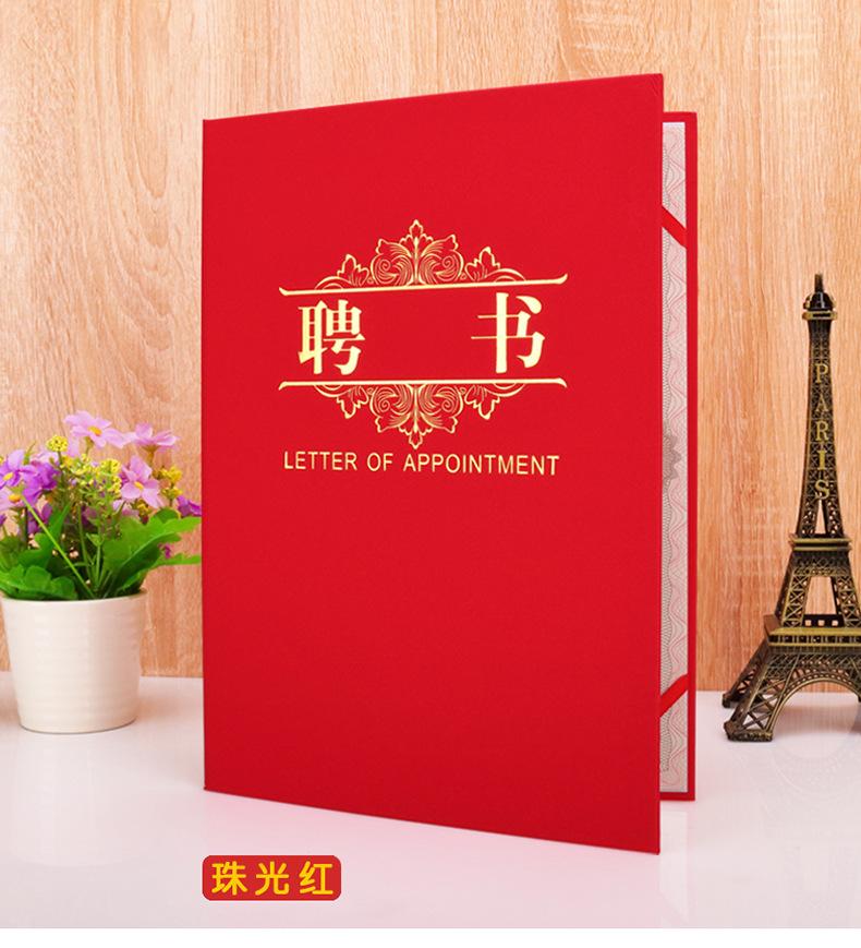 Carta de nombramiento certificado rojo nacarado rojo gamuza azul carta de nombramiento personalizado producción de bronceado personalizado a4 empleo