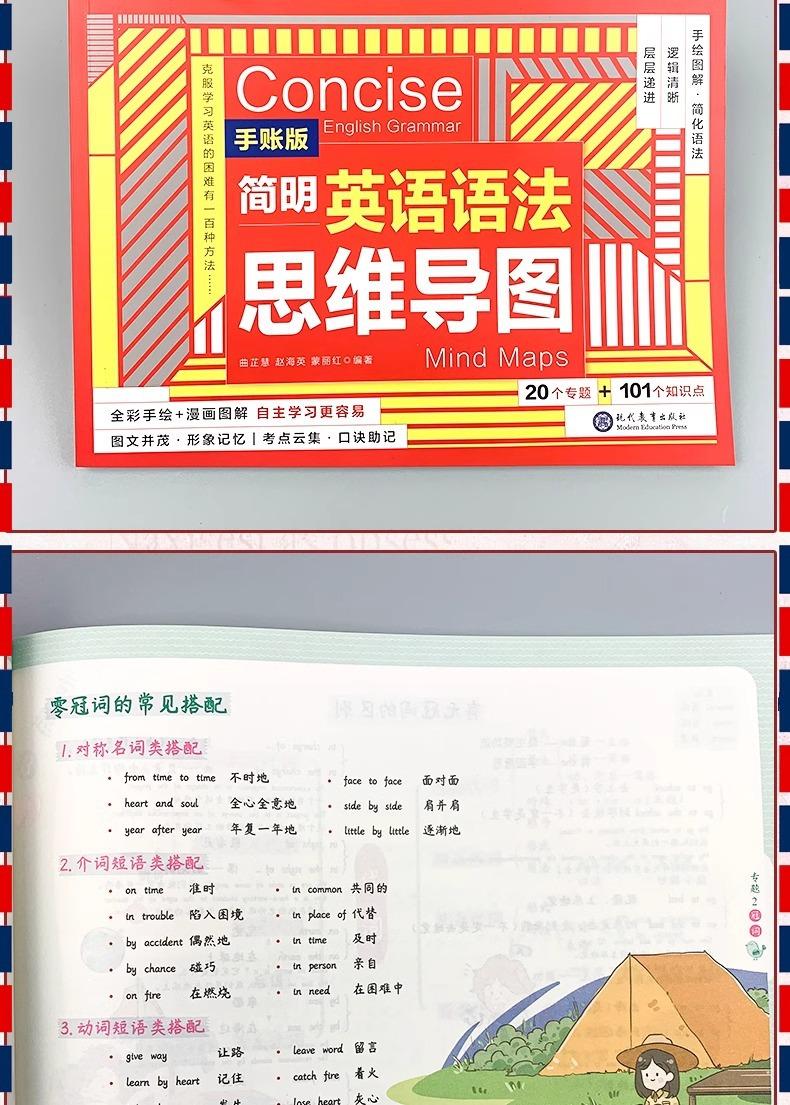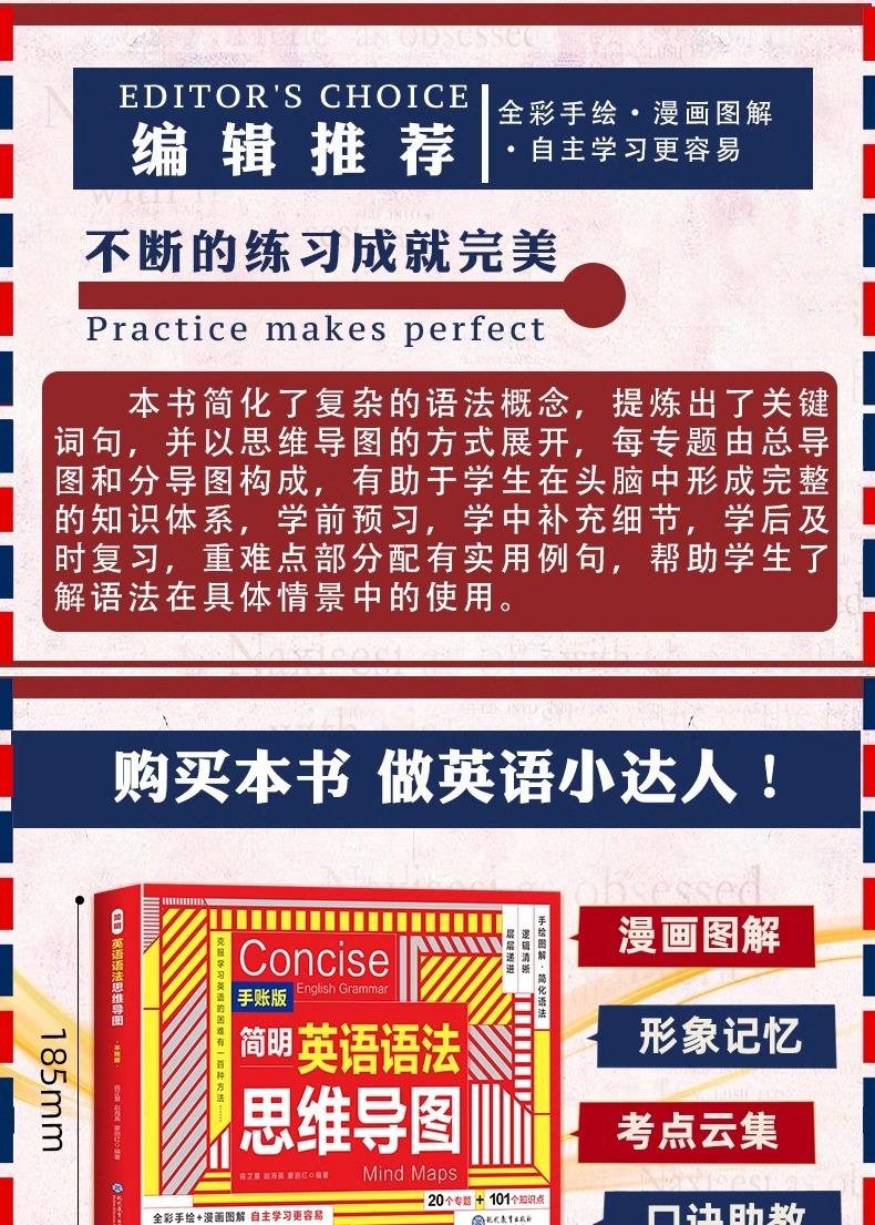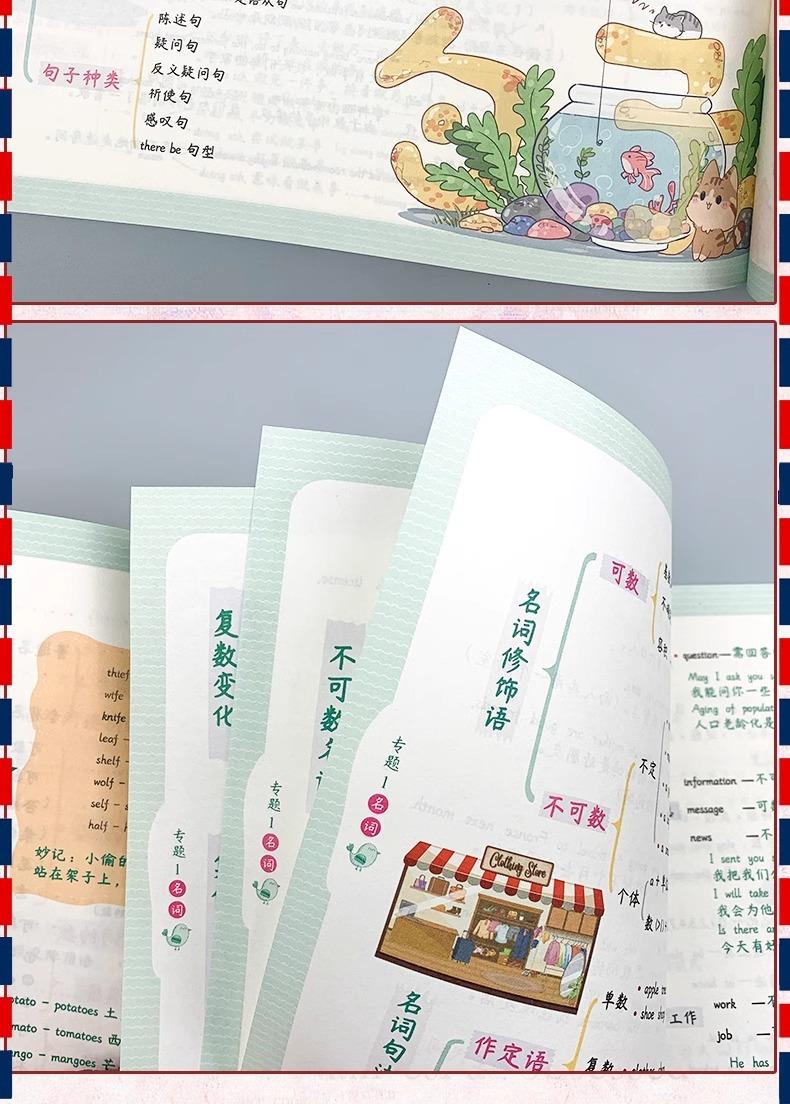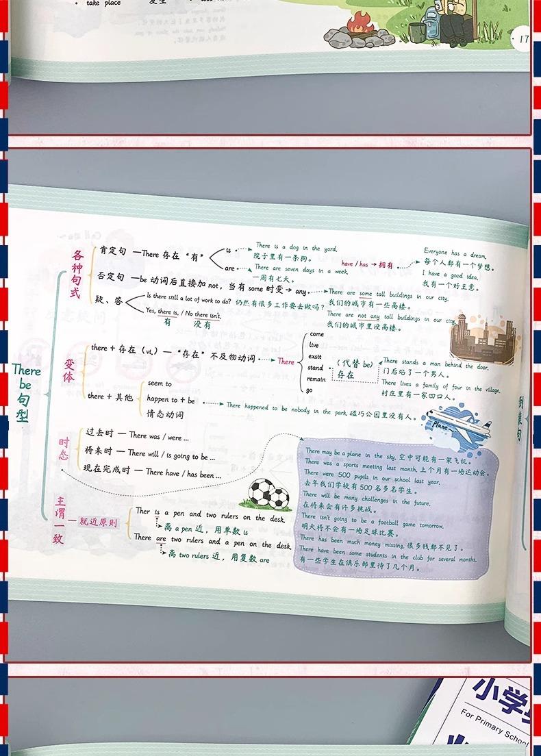 Mapa mental refinado de gramática inglesa de escuela primaria, edición concisa, resumen de gramática inglesa de grado 3, 4, 5 y 6
