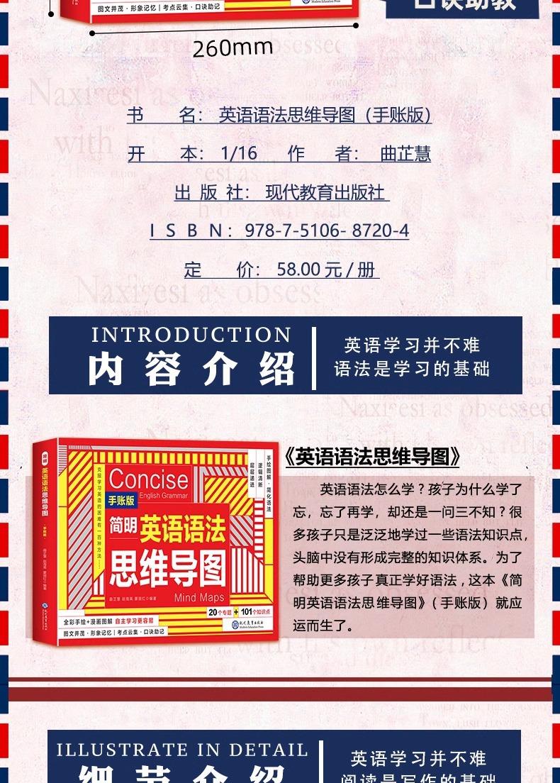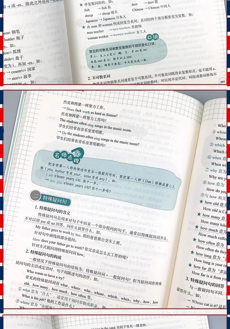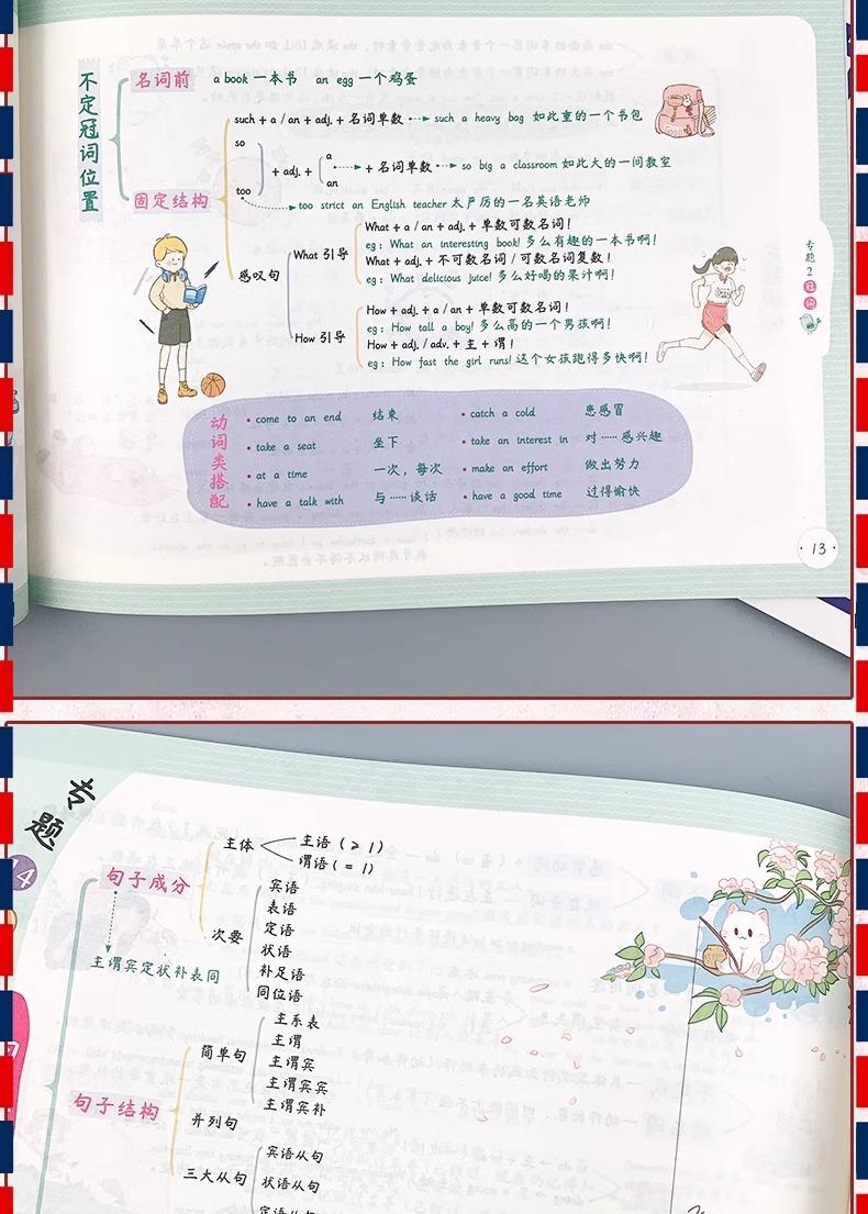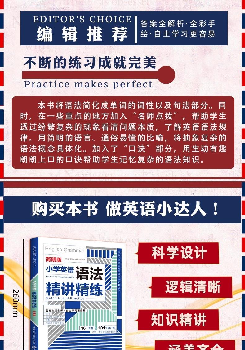 Mapa mental refinado de gramática inglesa de escuela primaria, edición concisa, resumen de gramática inglesa de grado 3, 4, 5 y 6