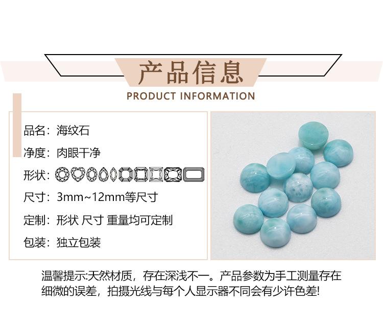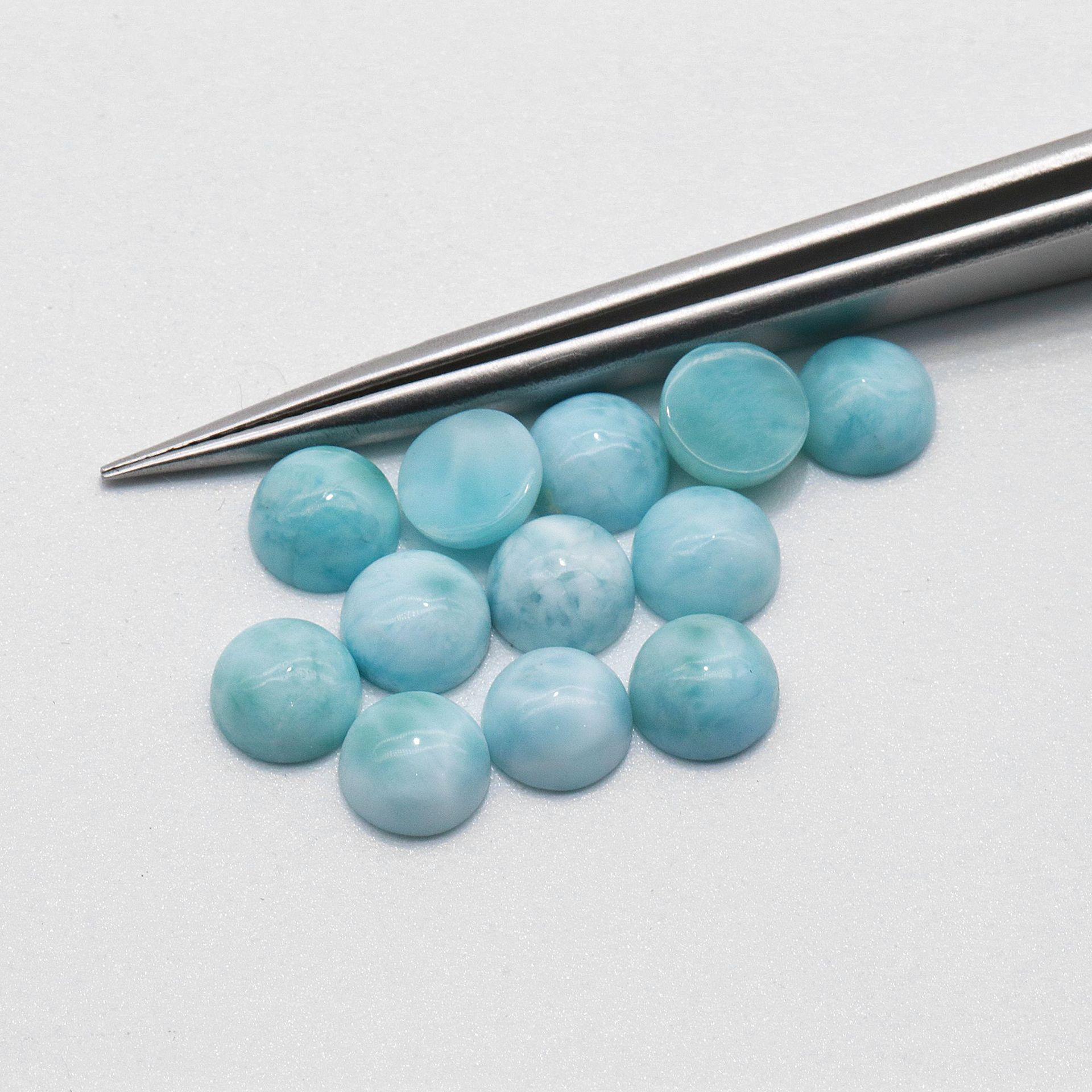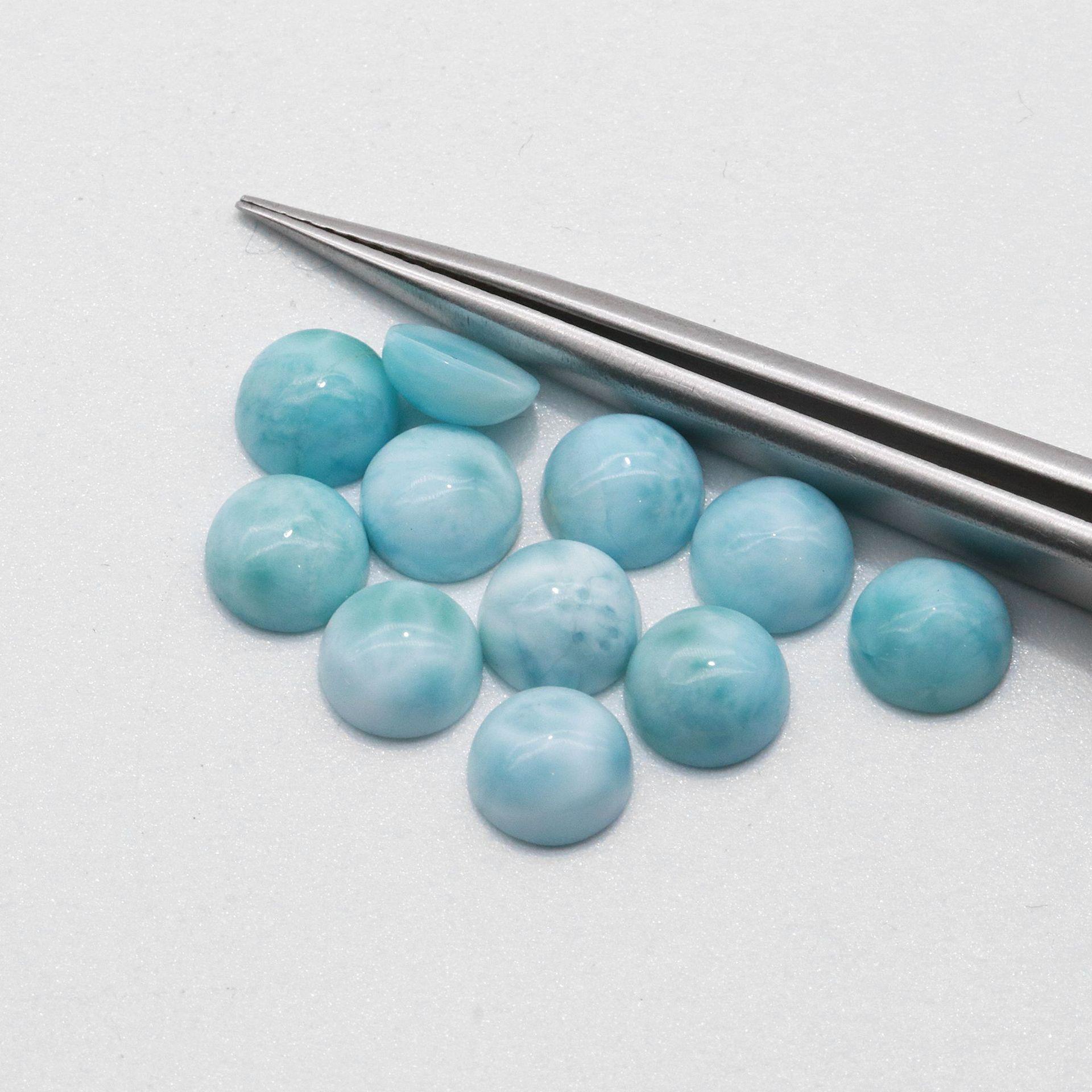 Piedra de grano marino dominicano natural/lalima redonda lisa y desnuda, joyería con incrustaciones de oro K, venta directa al por mayor de fábrica