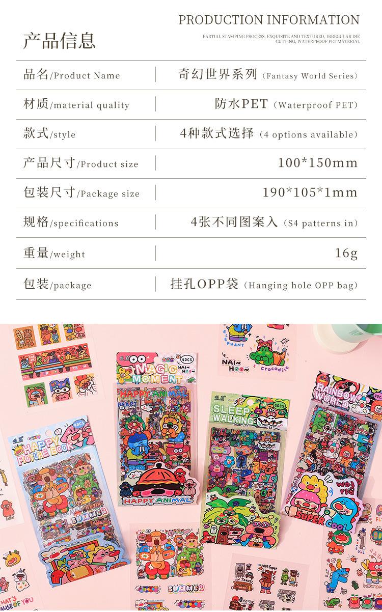 Pegatina de dibujos animados de mundo de fantasía, pegatina de cuenta de mano, película de corte transfronterizo, pegatina para niños, pegatina de cuenta de mano, pegatina