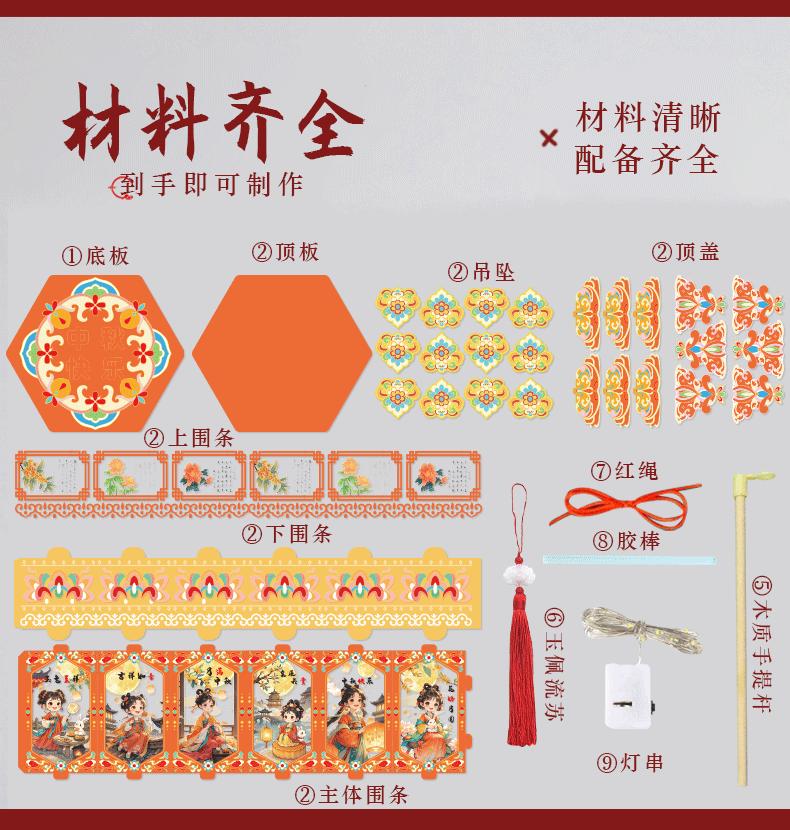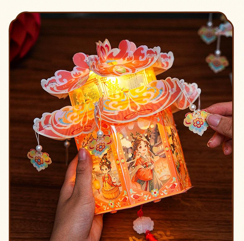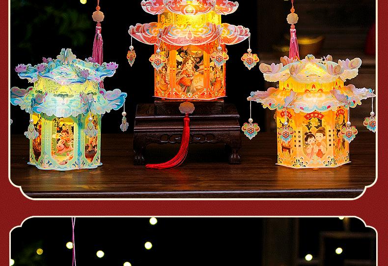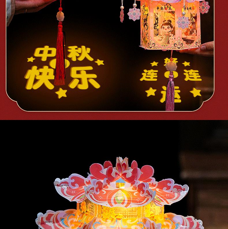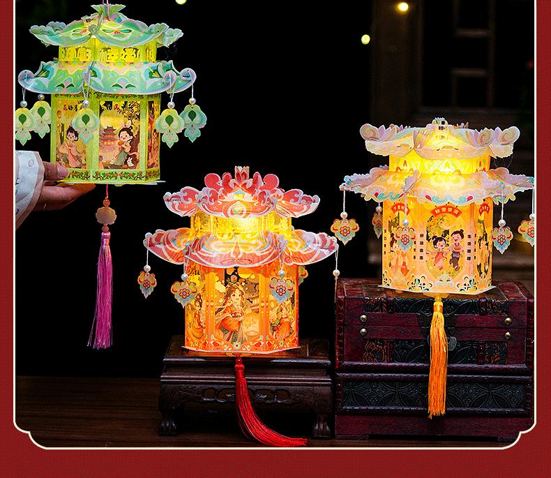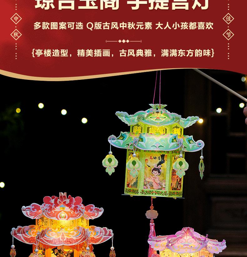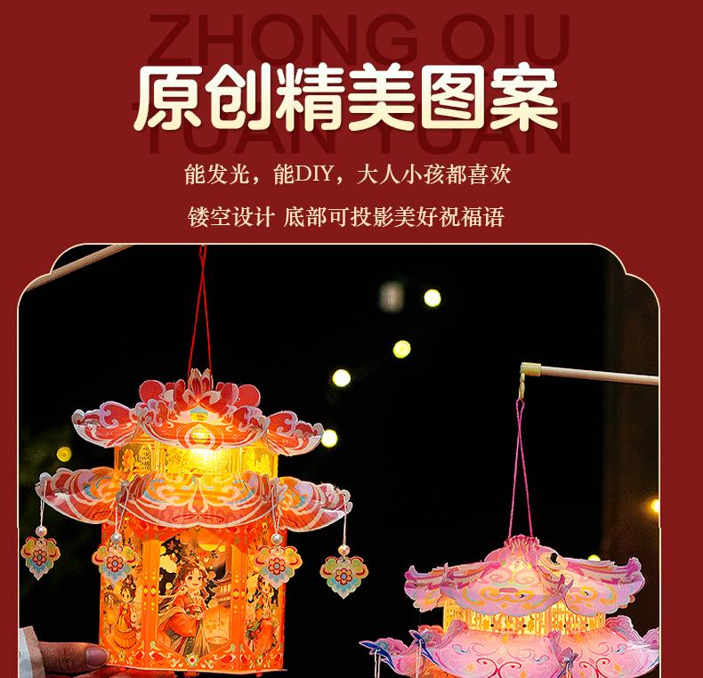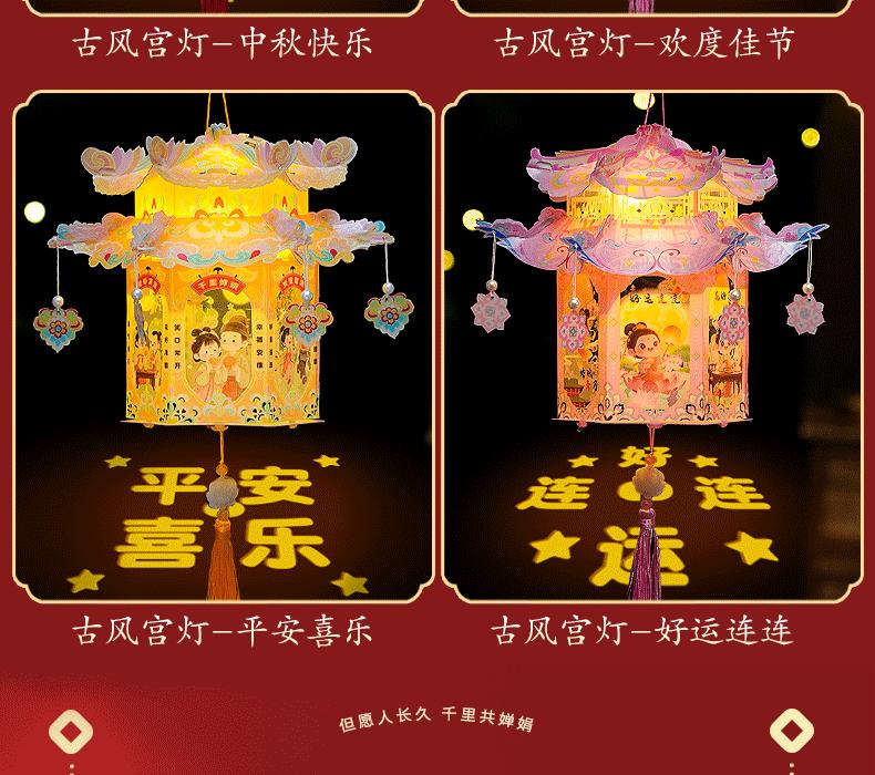 Faroles del Festival del Medio Otoño Faroles de Proyección Brillantes Estilo Antiguo Faroles de Palacio Materiales DIY Hechos a Mano para Niños Faroles de Conejo Faroles