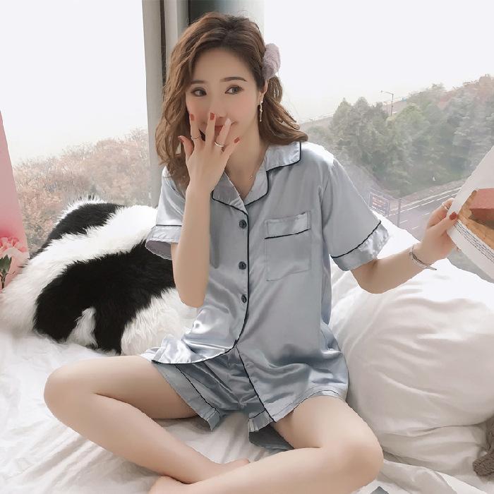 Pijamas de seda de hielo para mujer, novedad de verano de 2024, de manga corta, estilo seda, para el hogar.