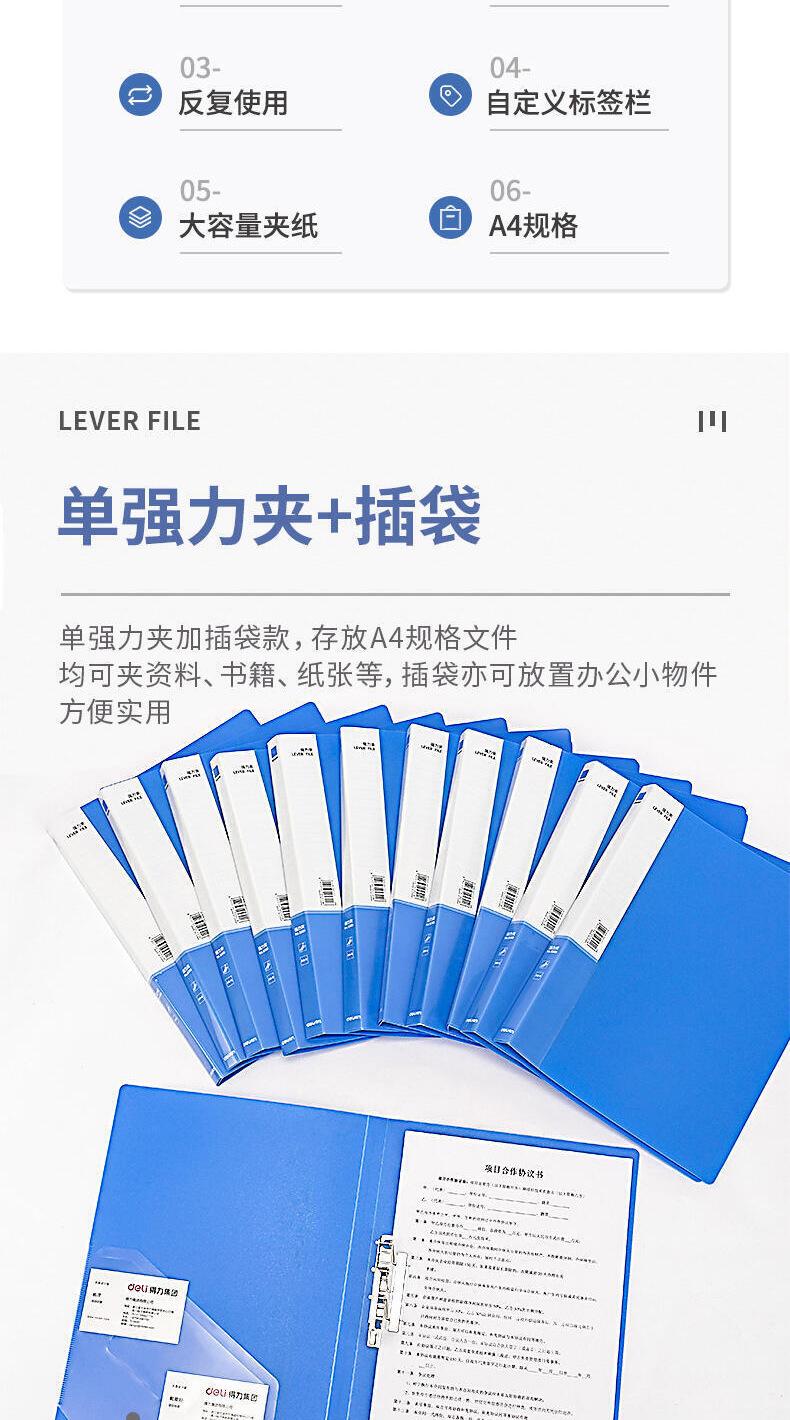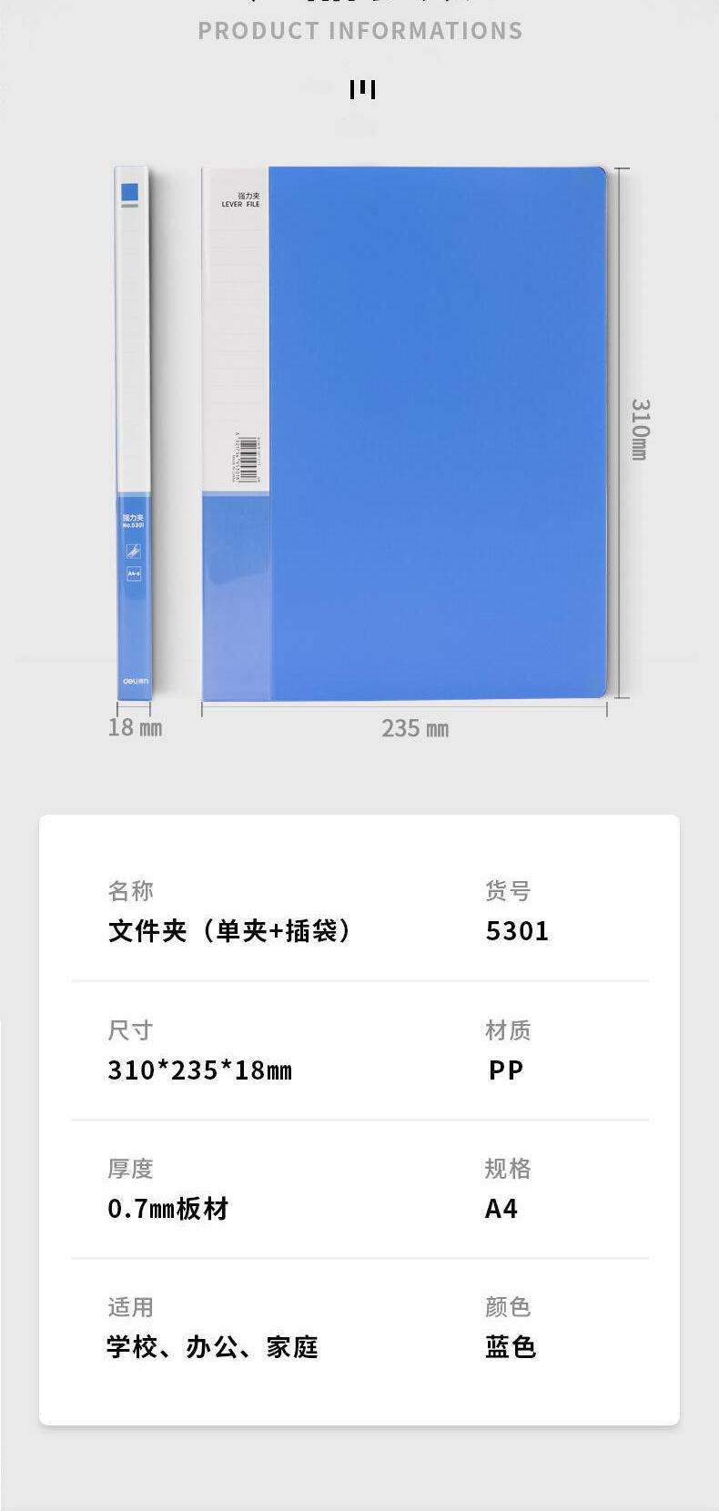 Compra Carpeta Deli 5301 A4 de plástico con clip simple y doble, para almacenamiento de archivos, suministros de oficina, carpeta de archivos engrosada 5302 al por mayor en Joom.pro
