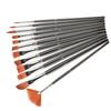 12 Pincel de Madera Negro con Pelo de Nailon para Acuarela, Gouache, Acrílico, Óleo, Pincel Práctico para Pintar, Juego de Pinceles, Espejo Cruzado