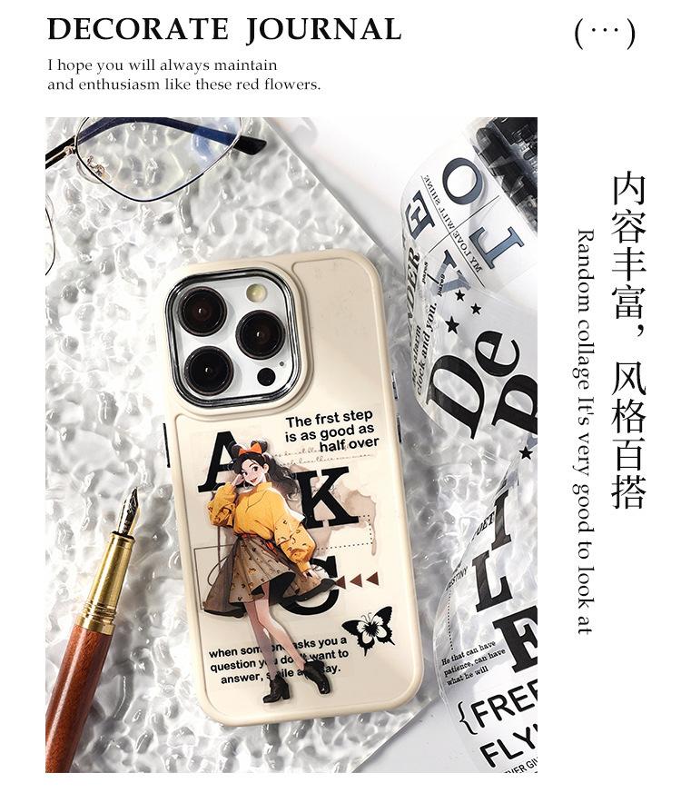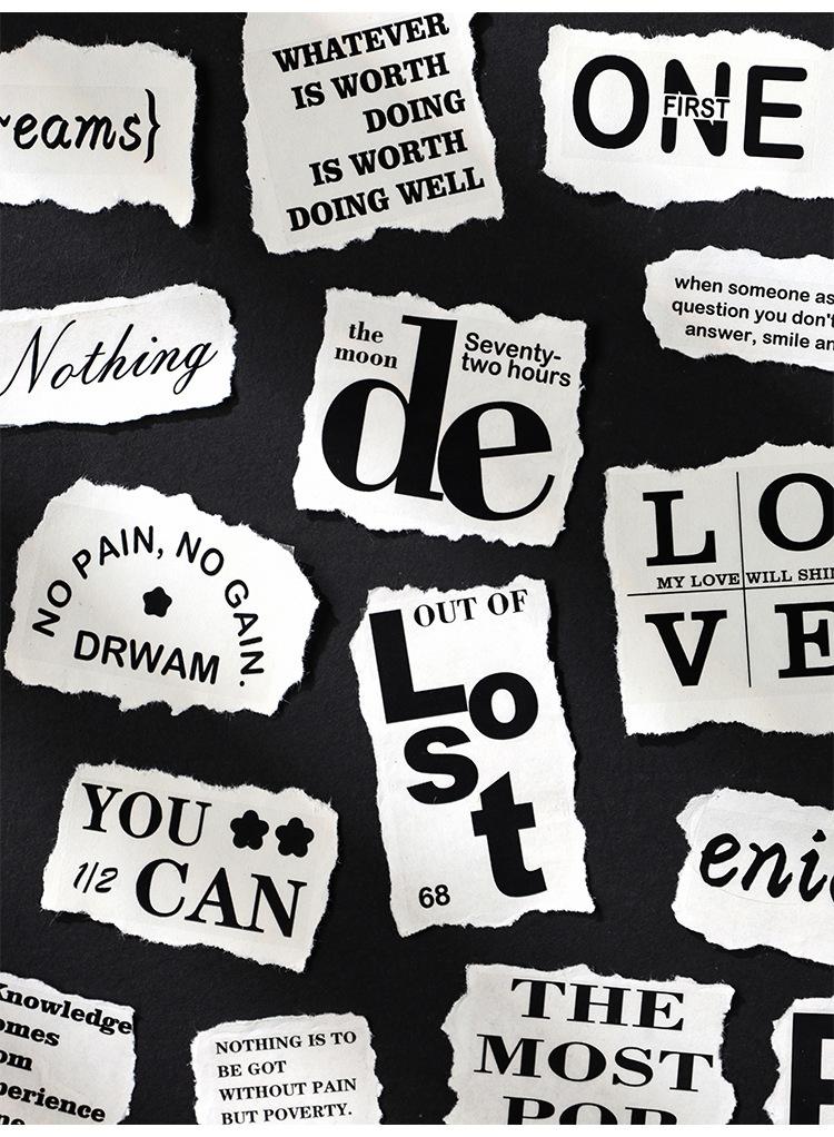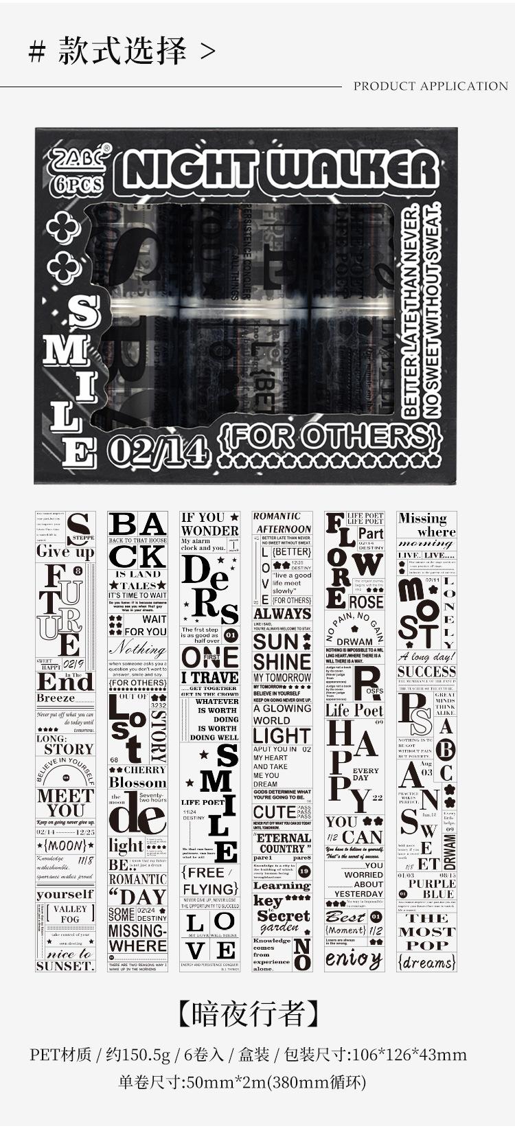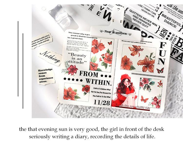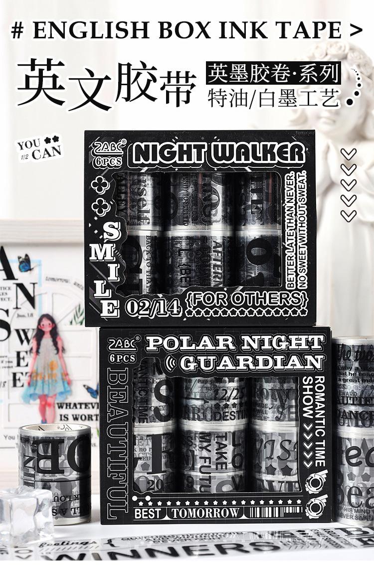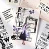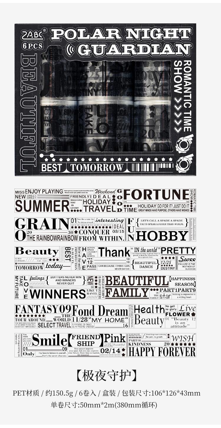 Juego de cinta adhesiva PET transparente impermeable con película de tinta inglesa, caja para manualidades, diario, pegatinas estilo retro, pegatinas especiales de aceite en inglés