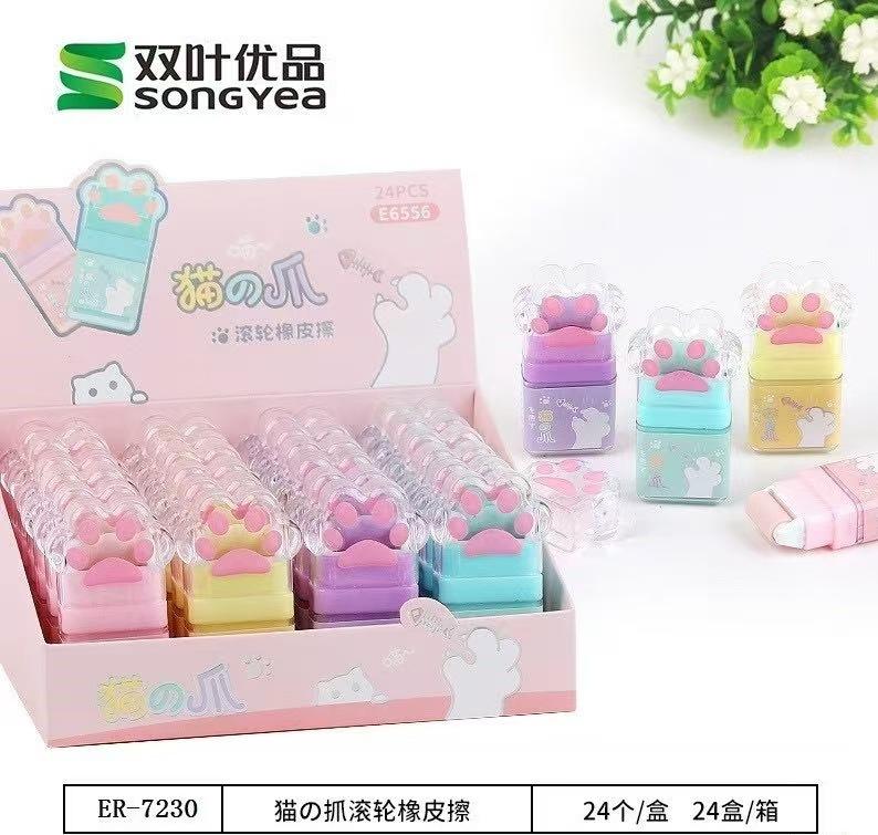 Borrador de rodillo con forma de garra de gato transfronterizo, creativo y lindo, papelería para estudiantes, premios al por mayor, recompensas de regalo