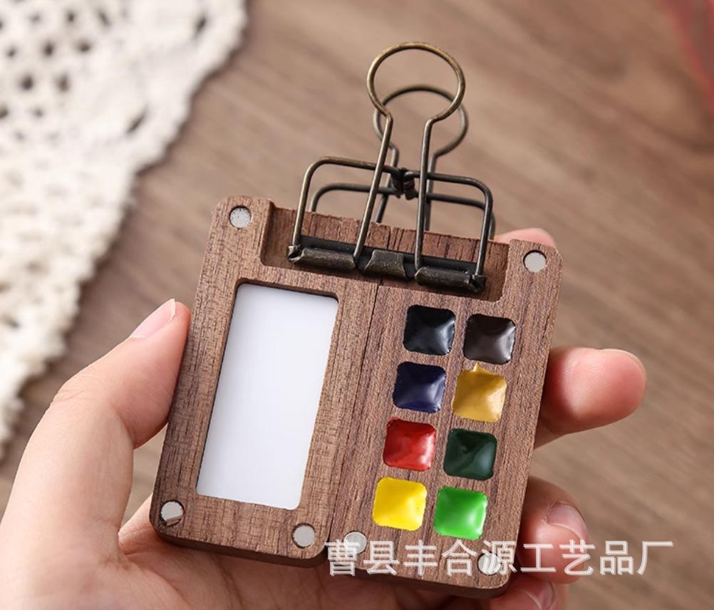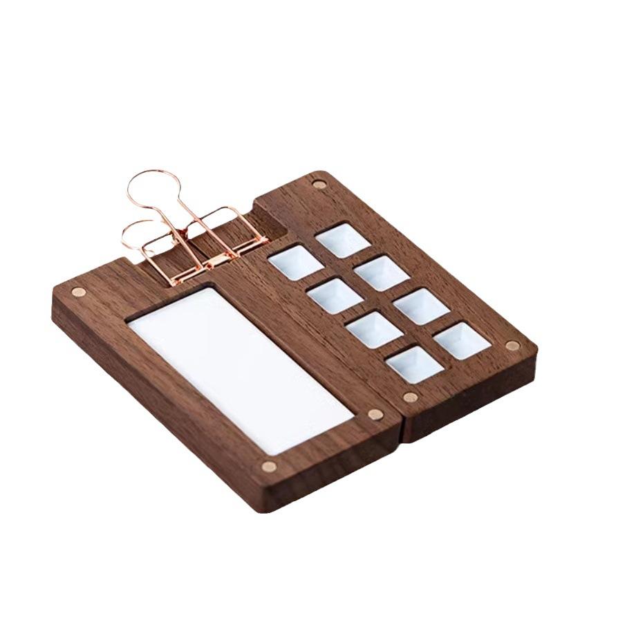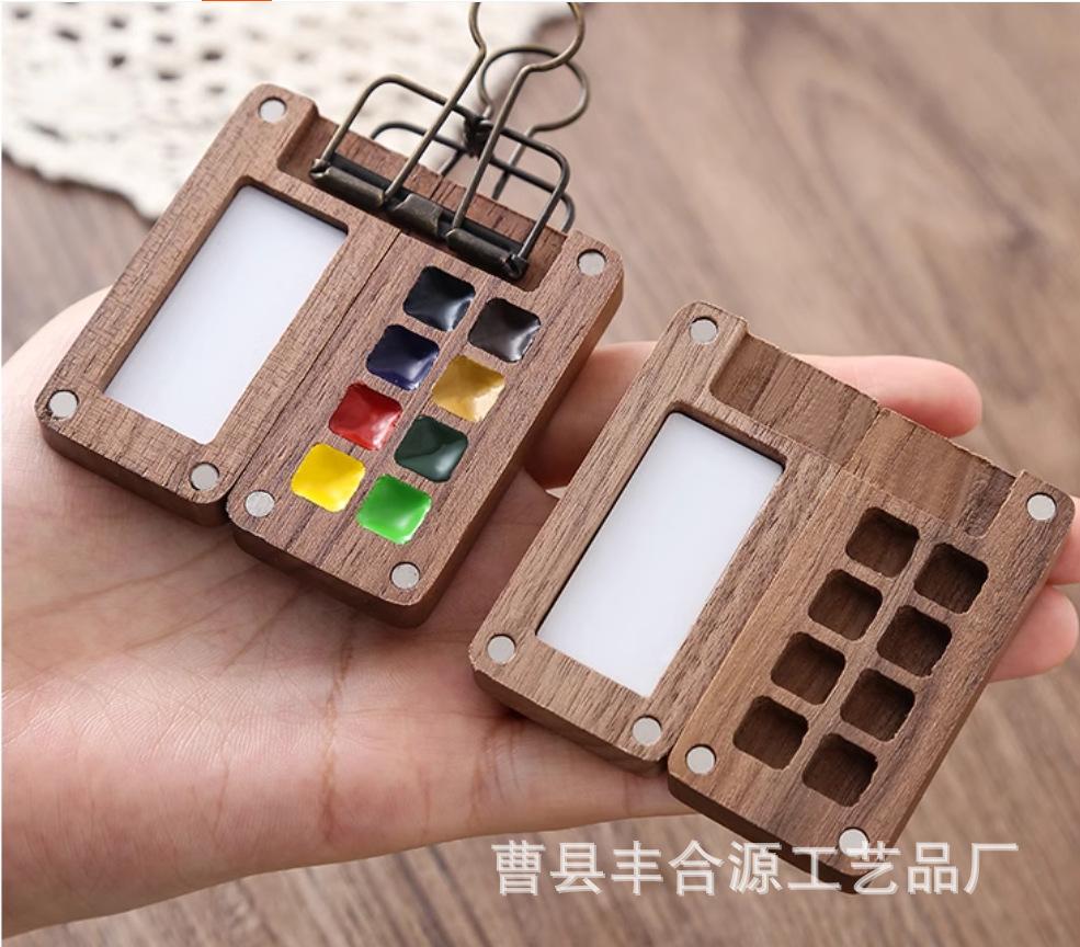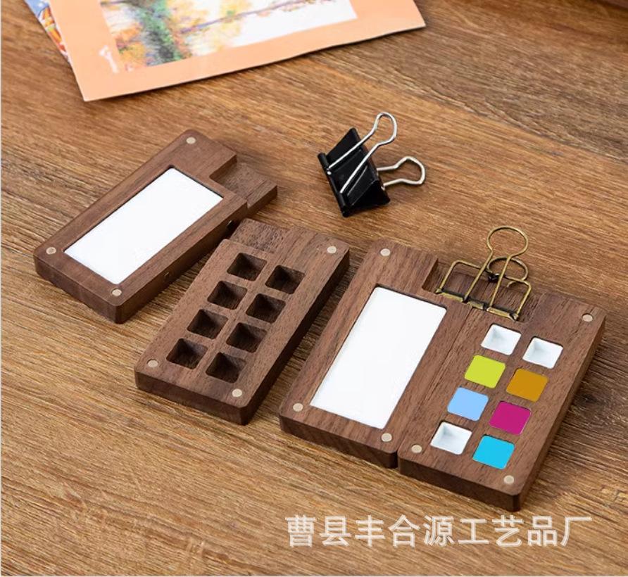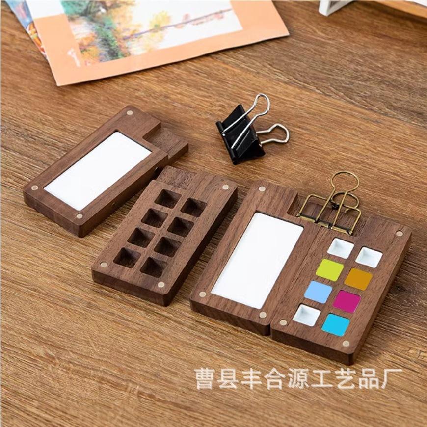 Nogal Negro Caja de Madera de 15 Compartimentos para Pigmentos de Acuarela Caja de Pintura Portátil Mini Pigmento de Acuarela Portátil Conveniente Color de Imagen