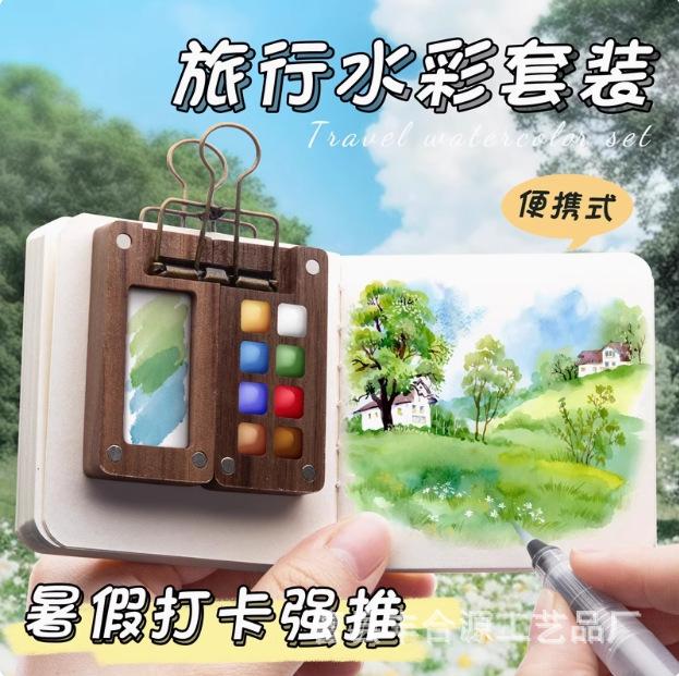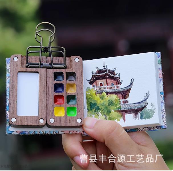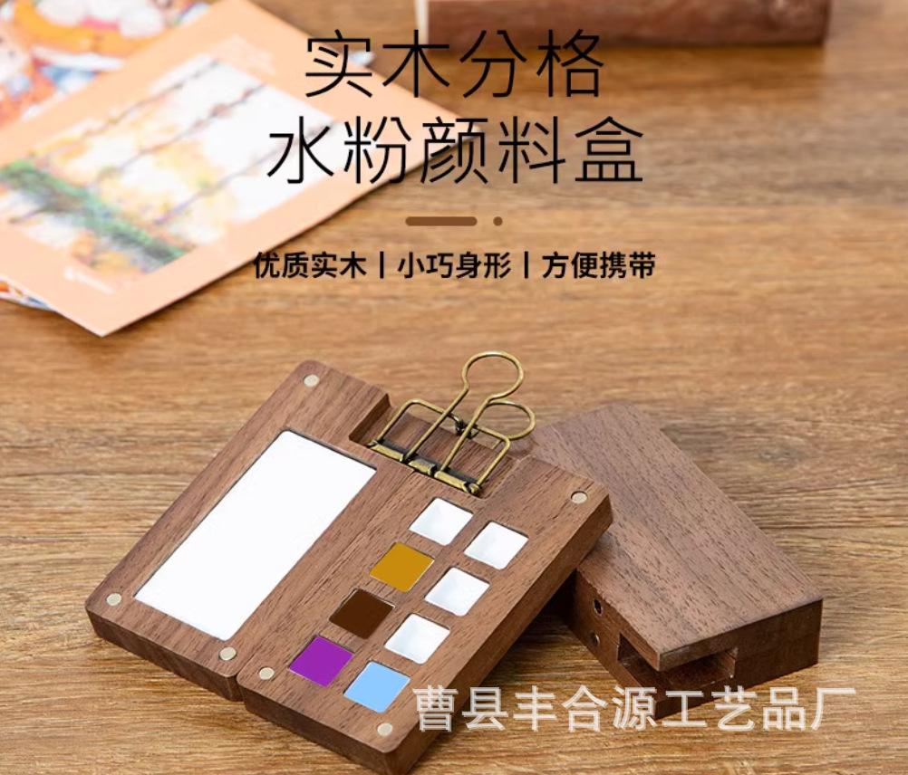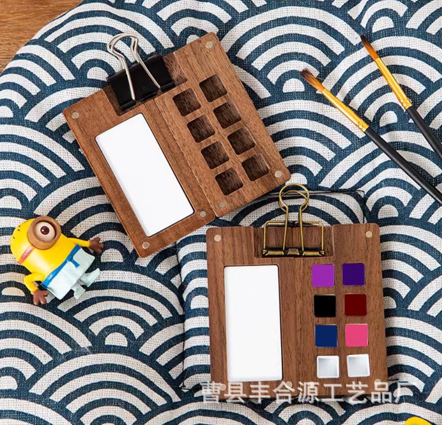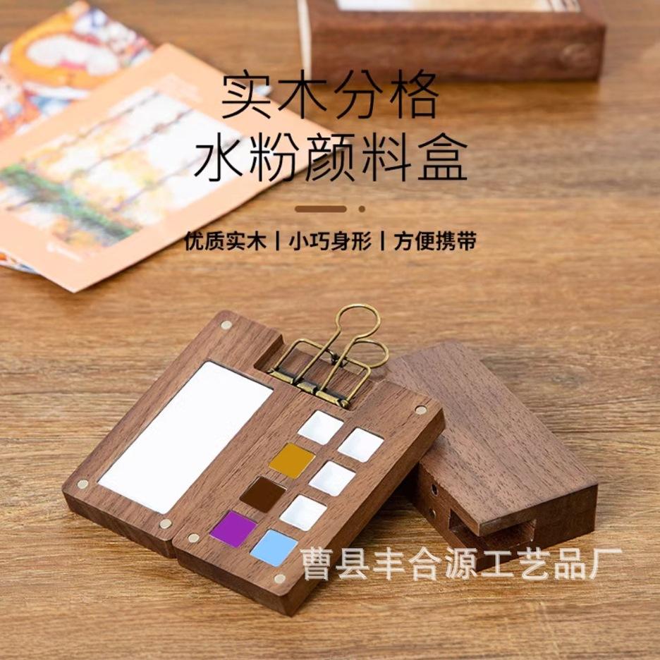 Nogal Negro Caja de Madera de 15 Compartimentos para Pigmentos de Acuarela Caja de Pintura Portátil Mini Pigmento de Acuarela Portátil Conveniente Color de Imagen