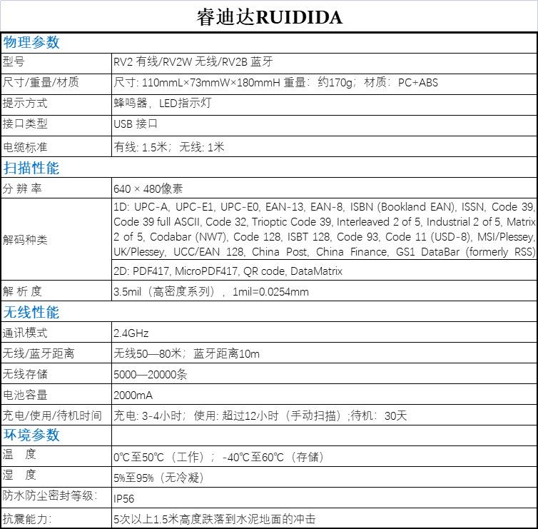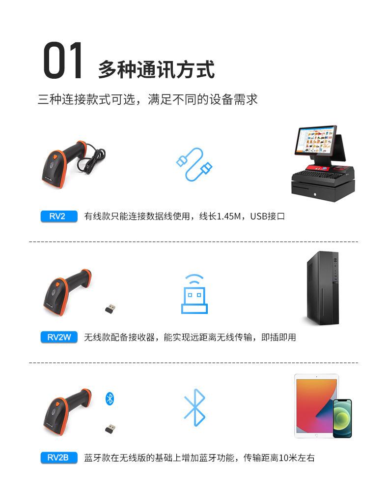 Rv2-oned 2d-wired, Rv2w one-dimensional 2d-wireless, Rv2b one-dimensional two-dimensional-wireless bluetooth
