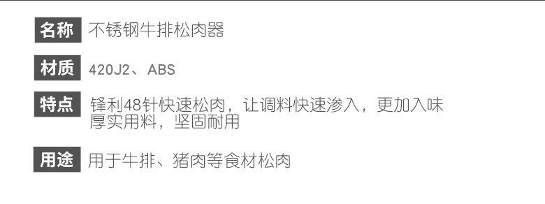 Picadora de carne de 48 pines, con orificio para tendones, aguja para sazonar, máquina para filetes de cerdo doméstica, martillo para carne, herramienta para carne de acero inoxidable