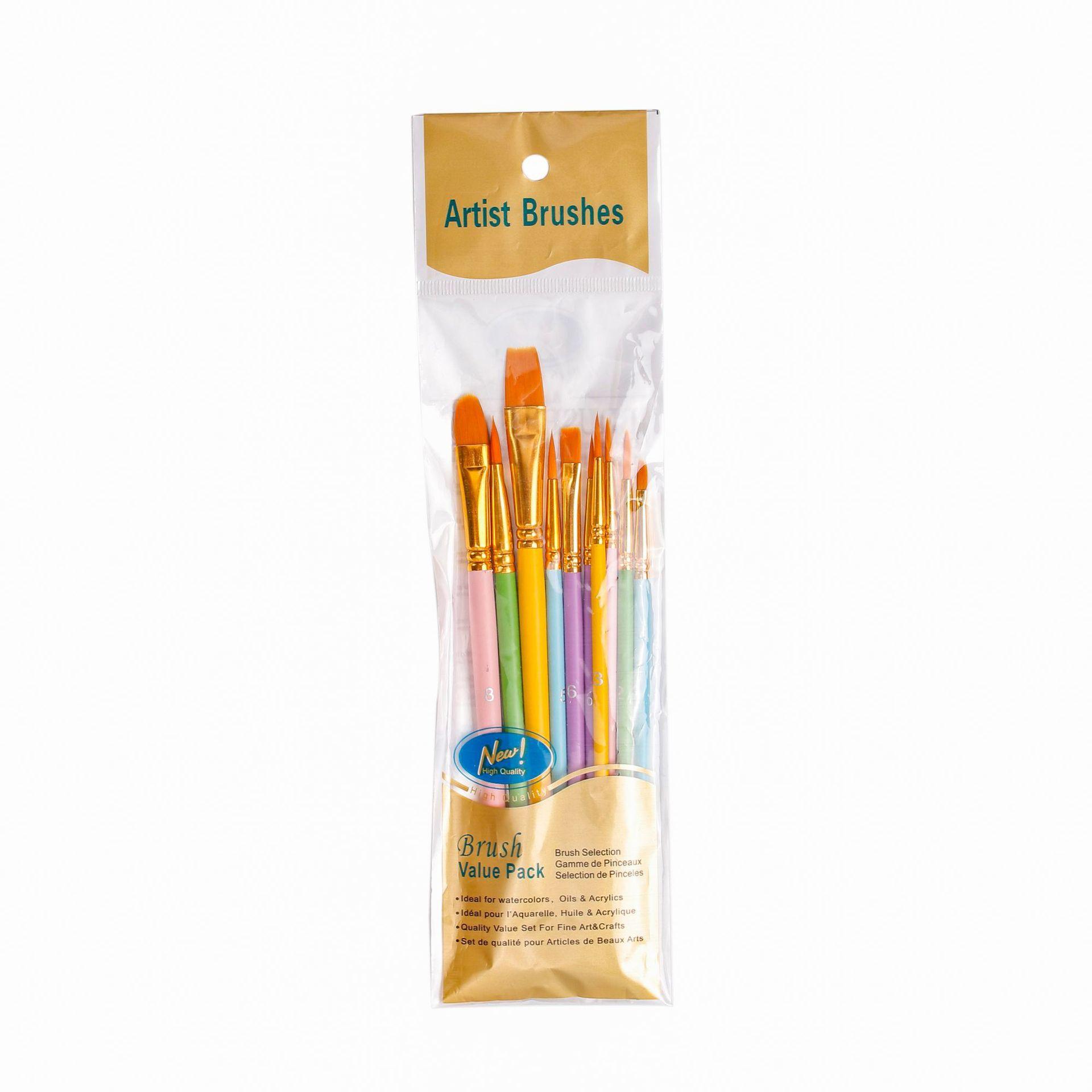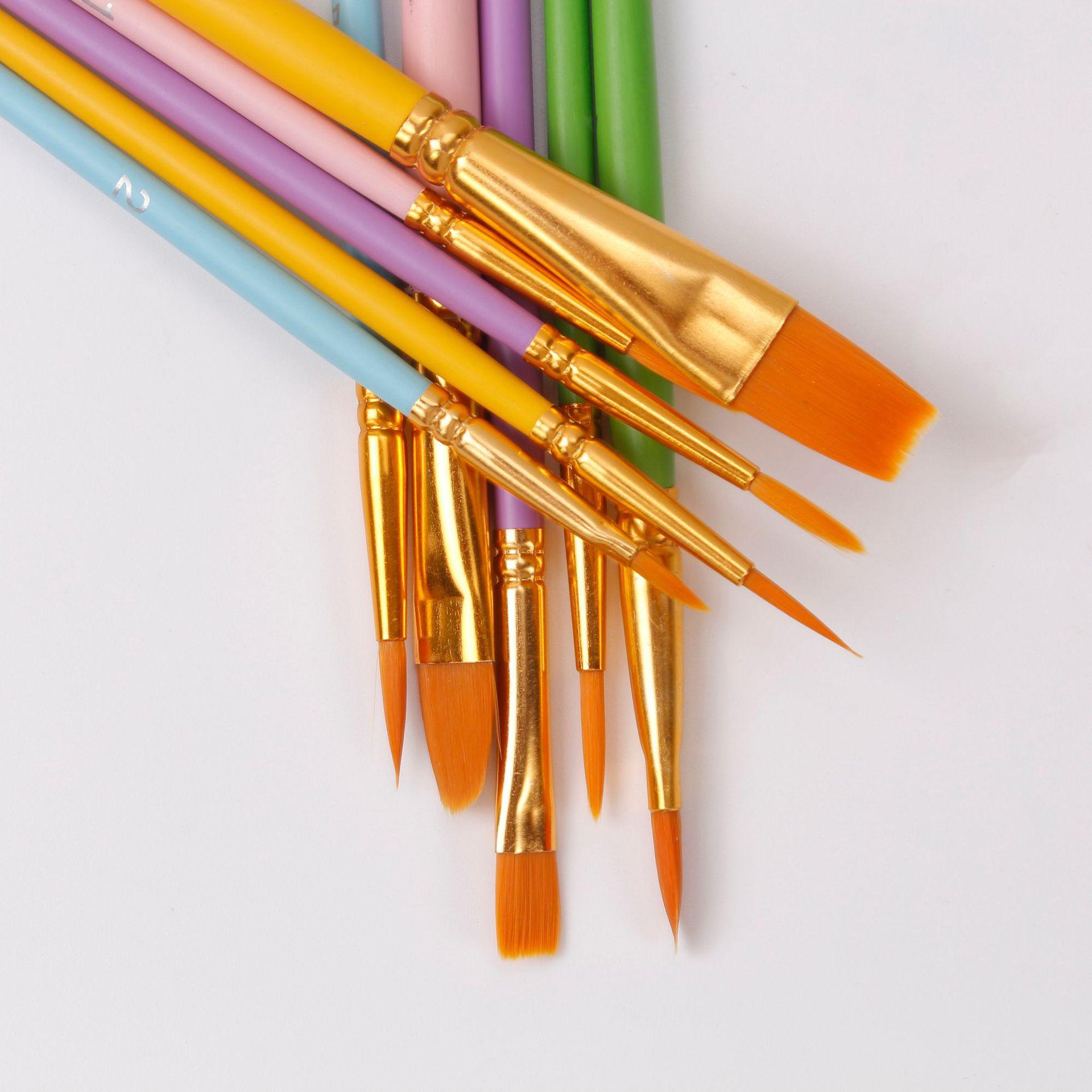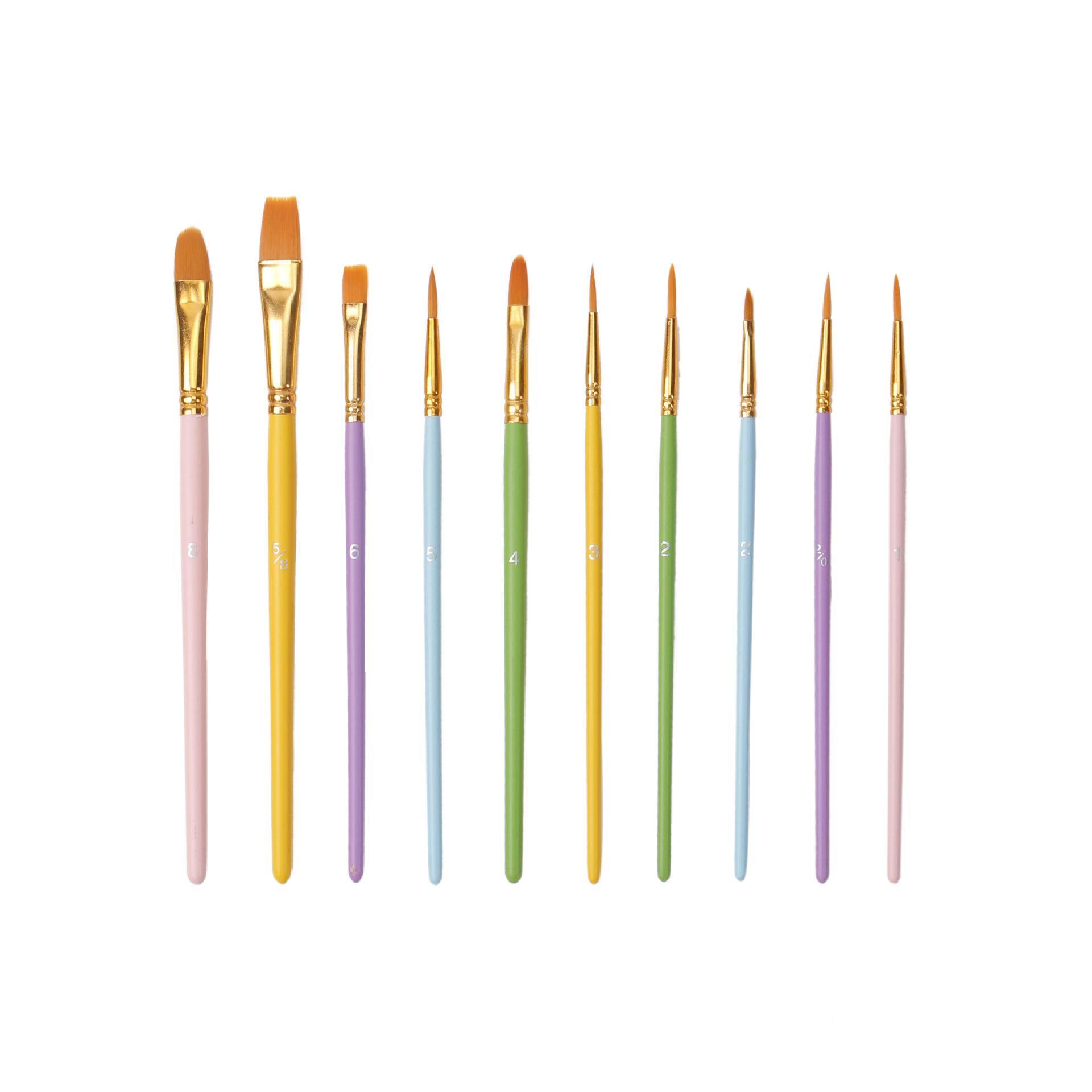 Pinceles de Pintura al Óleo Gouache DIY Transfronterizos Coloridos Set de 10 Pinceles de Pelo de Nailon Mango Azul Perlado