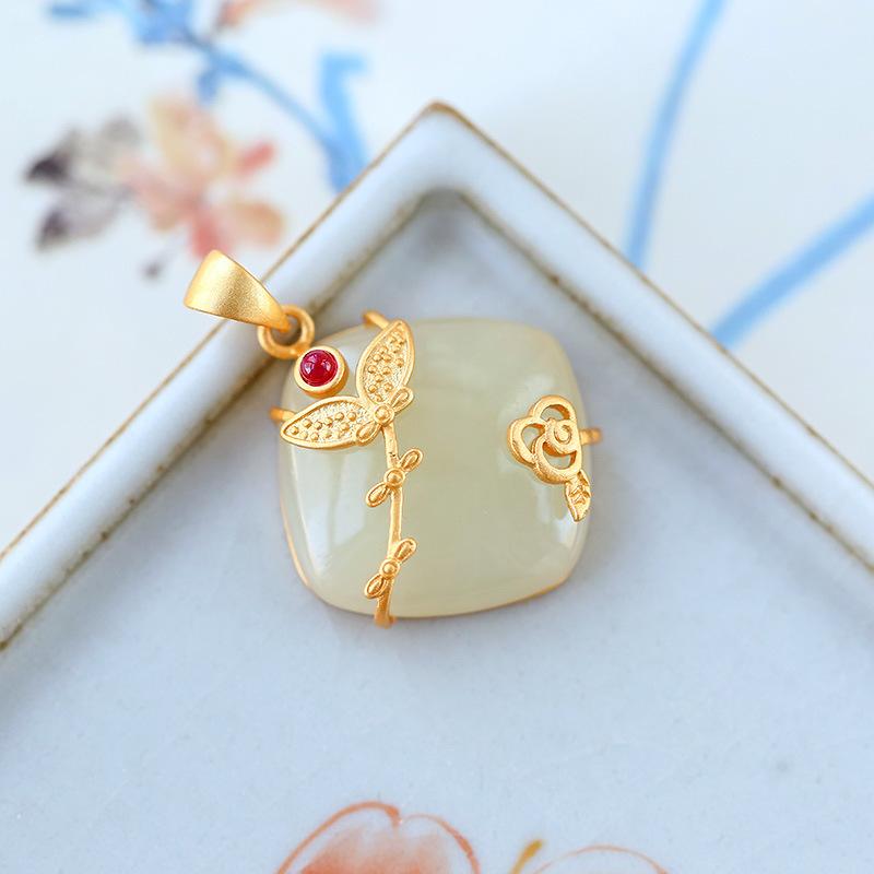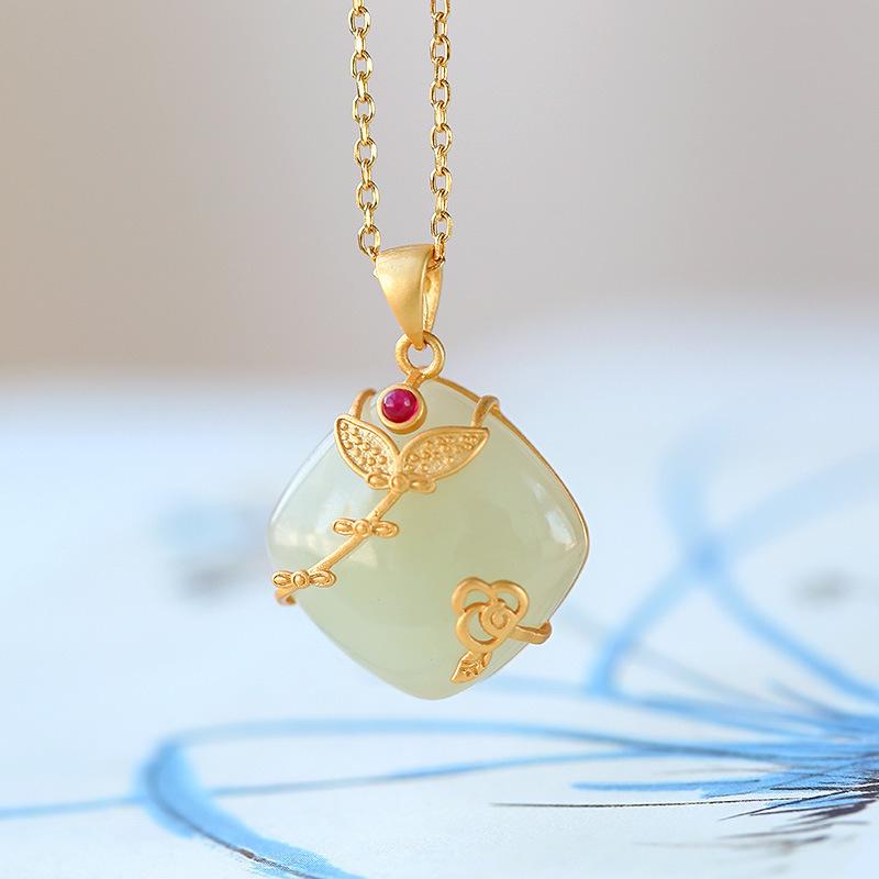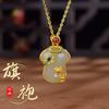 Ropa de brocado estilo palaciego Jade comida cheongsam colgante Plata S925 chapada en oro incrustada jade Hetian estilo antiguo diseño de estilo étnico collar