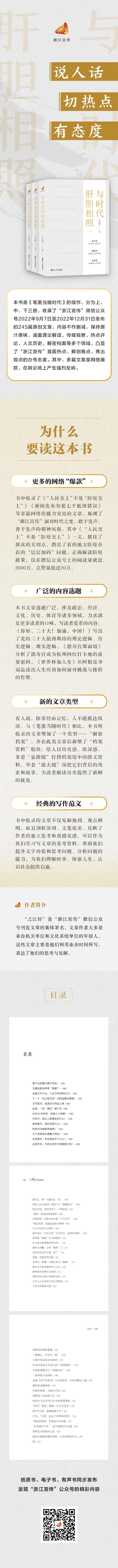 Este libro es la secuela de "El pincel y la tinta deben seguir los tiempos", dividido en tres volúmenes, incluyendo los volúmenes superior, medio e inferior, que incluyen 245 artículos originales publicados por la cuenta pública de WeChat "Zhejiang Propaganda" del 7 de septiembre de 2022 al 31 de diciembre de 2022. El contenido no se elimina y permanece original, cubriendo múltiples campos como interpretación teórica, observación de medios, comentarios candentes, humanidades e historia, y archivos descifrados, destacando la actitud de la cuenta "Zhejiang Propaganda" de abordar los puntos candentes, analizar las dificultades y expresar opiniones. Entre ellos, muchos artículos son populares en línea y han generado fuertes respuestas en el campo de la opinión pública.