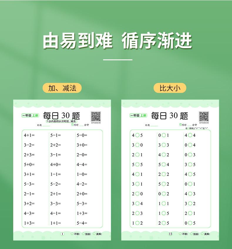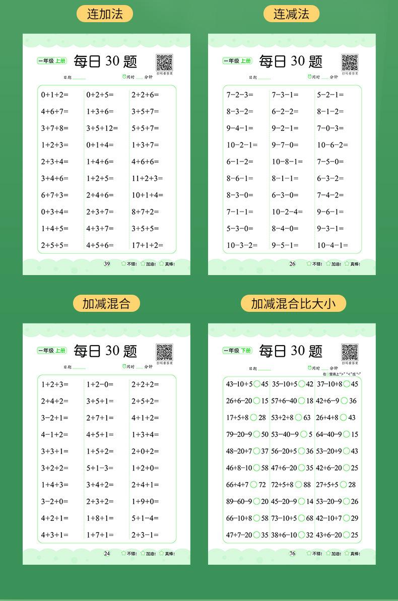 30 preguntas al día para grados 1~3, libros de ejercicios especiales de matemáticas superiores e inferiores, una práctica al día para mejorar rápidamente, cálculos de suma y resta