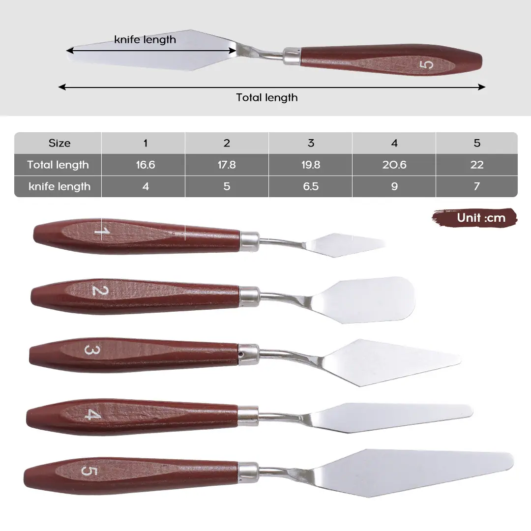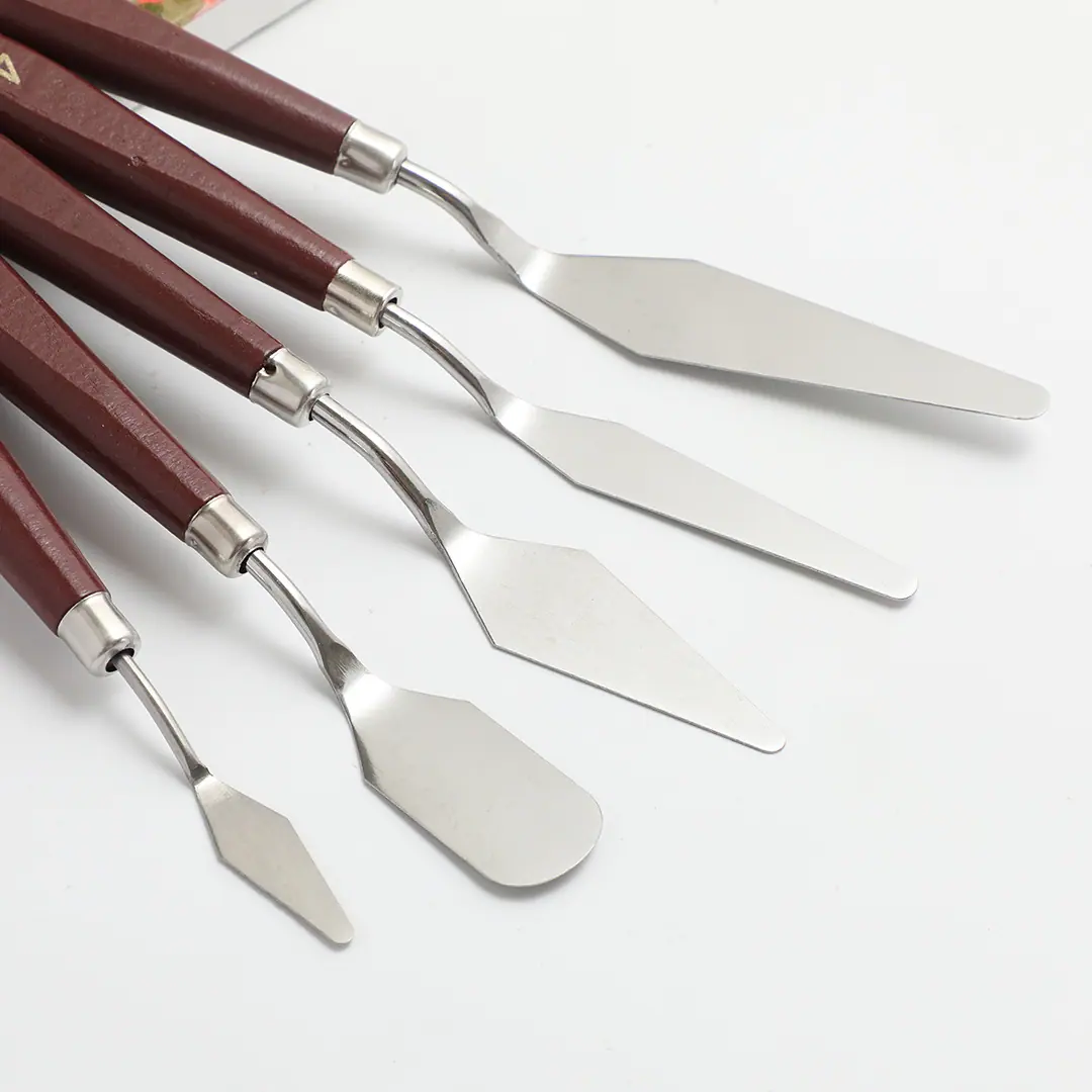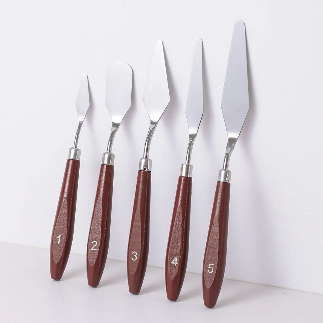 Herramientas Espátulas Pintura Artística Transfronteriza Pintura al Óleo Acero Inoxidable Cabeza Plana Mezcla de Color Juego de 5 Piezas Venta al por Mayor