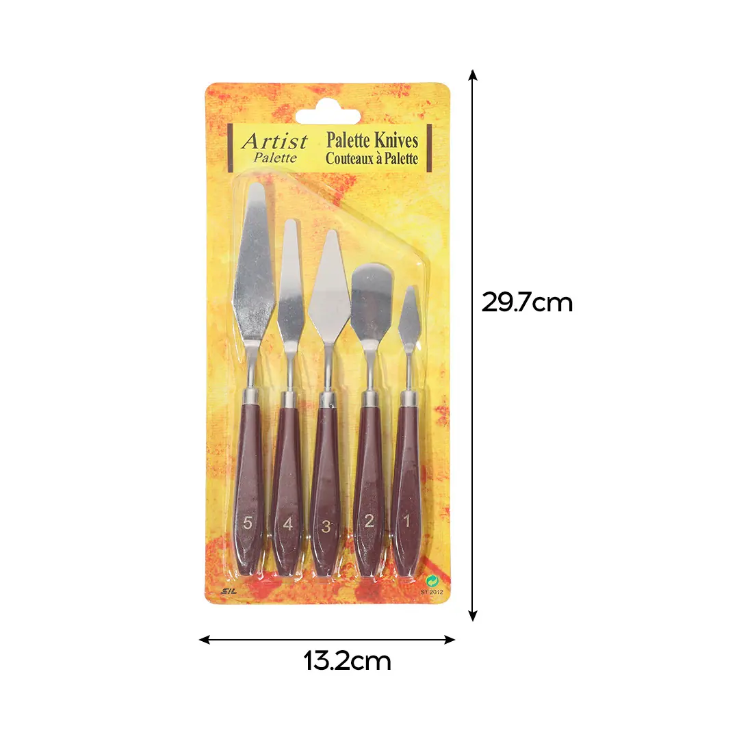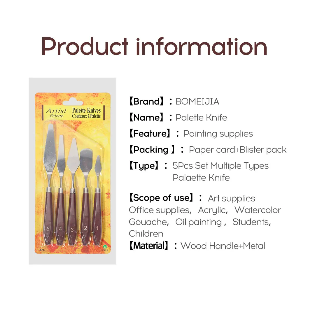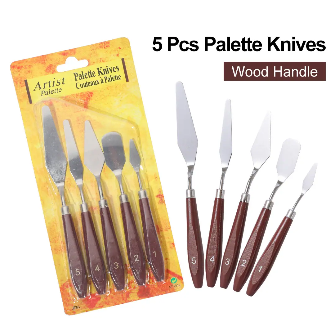 Herramientas Espátulas Pintura Artística Transfronteriza Pintura al Óleo Acero Inoxidable Cabeza Plana Mezcla de Color Juego de 5 Piezas Venta al por Mayor