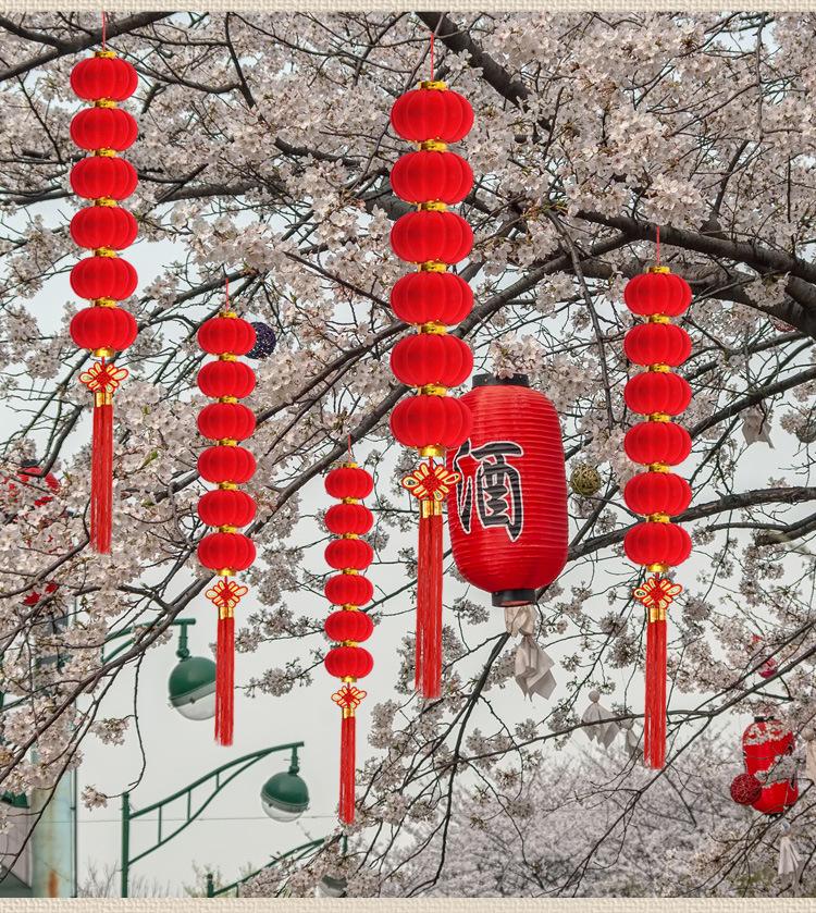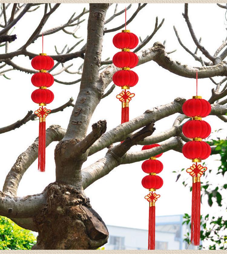 Bola Flocada Linterna Roja Linterna Flocada Boda Bonsái Colgante Linterna Festiva para Exterior Decoración de Año Nuevo