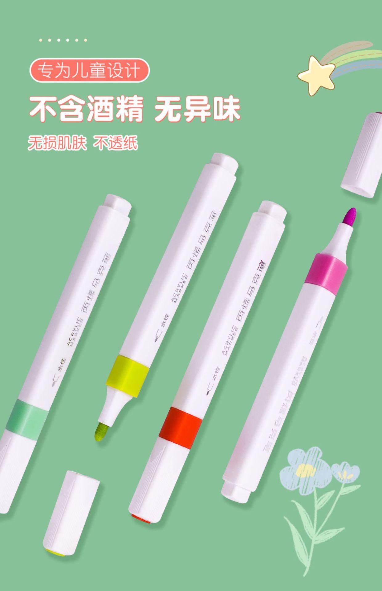 Rotulador acrílico de color verdadero, no transparente, apilable, para acuarela, para niños de escuela primaria, punta dura