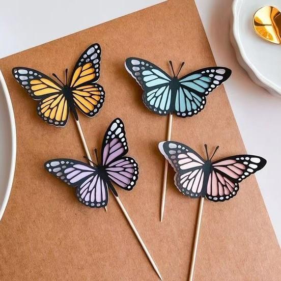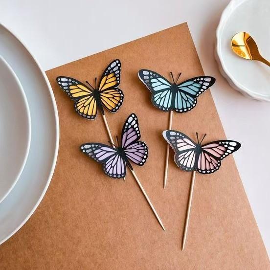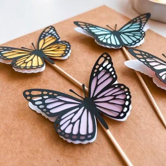 Tarjeta para Insertar en Pastel de Mariposa Decoración para Pastel de Cumpleaños Horneado Decorativo Tarjeta Plug-in para Pastel Arreglo Floral para Fiesta de Cumpleaños