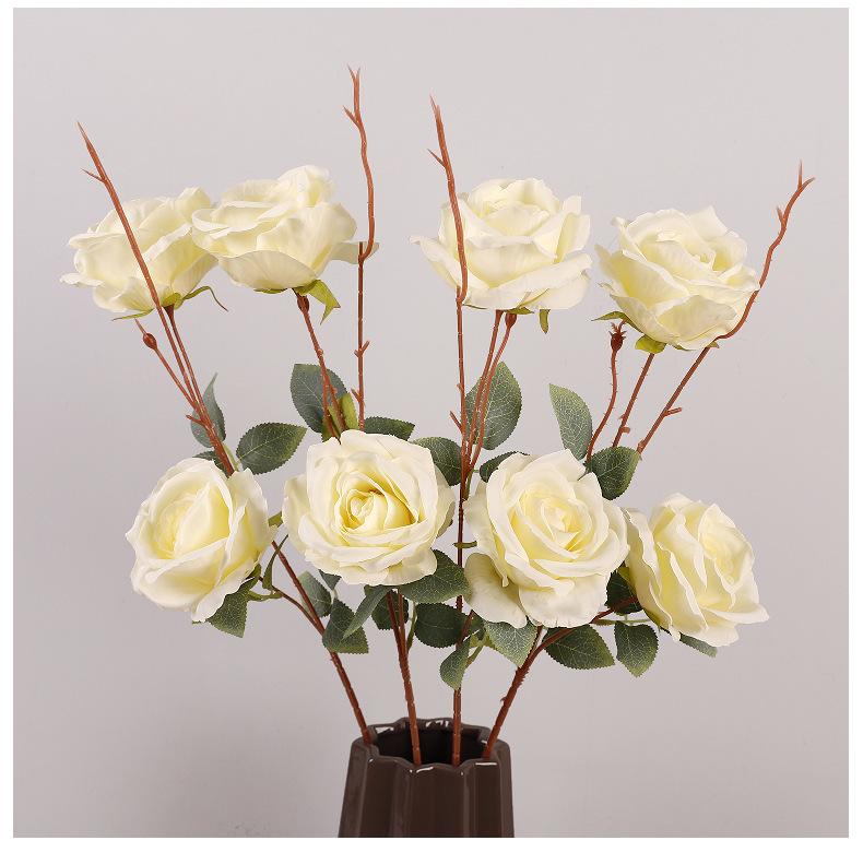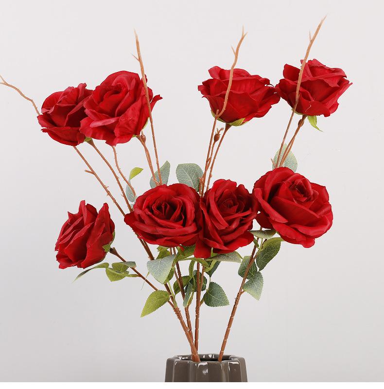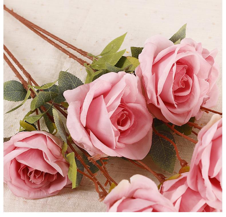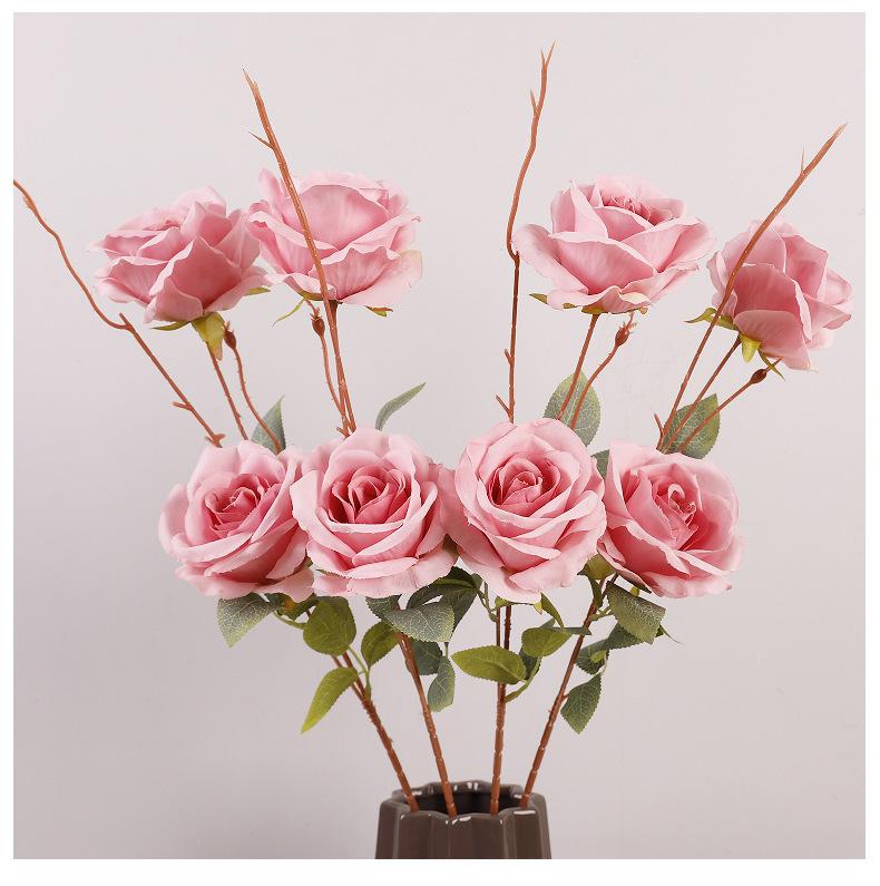 Simulación de una sola rosa de dos cabezas para auditorio, decoración de hotel, flor falsa de acacia, rosa, flor de simulación